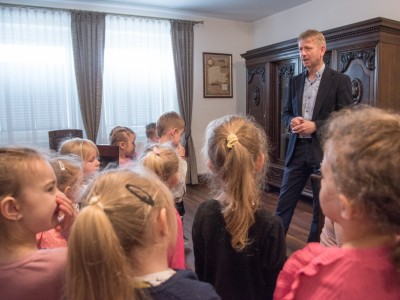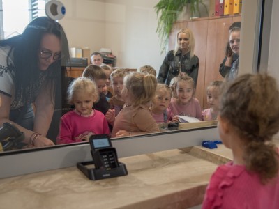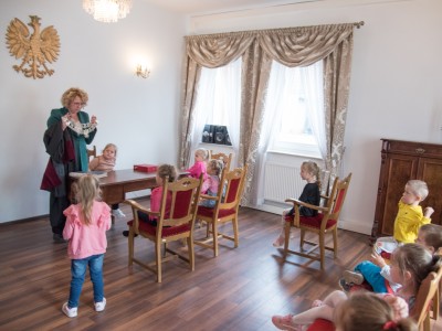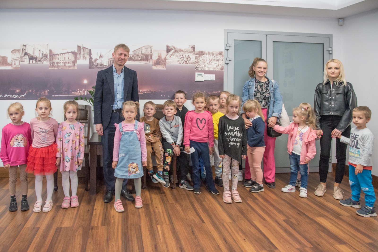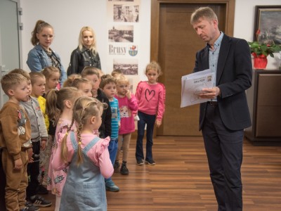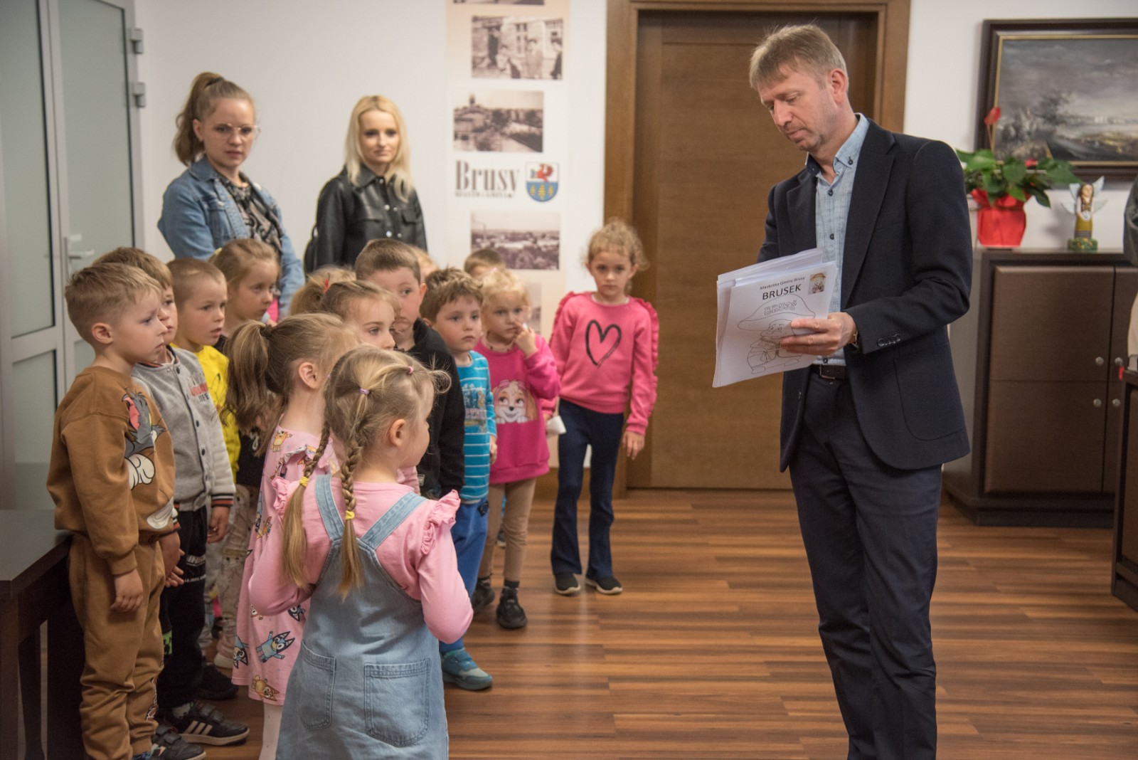 28 maja pracowników Urzędu Miejskiego w Brusach odwiedziły przedszkolaki z Kosobud. Dzieci miały okazję porozmawiać z burmistrzem Brus Witoldem Ossowskim i przyjrzeć się pracy urzędników w poszczególnych wydziałach. Dowiedziały się między innymi na czym polega praca kierownika Urzędu Stanu Cywilnego oraz jak wygląda praca w kasie urzędu. Serdeczne uściski wymieniły także z maskotką Gminy Brusy - grzybkiem Bruskiem.