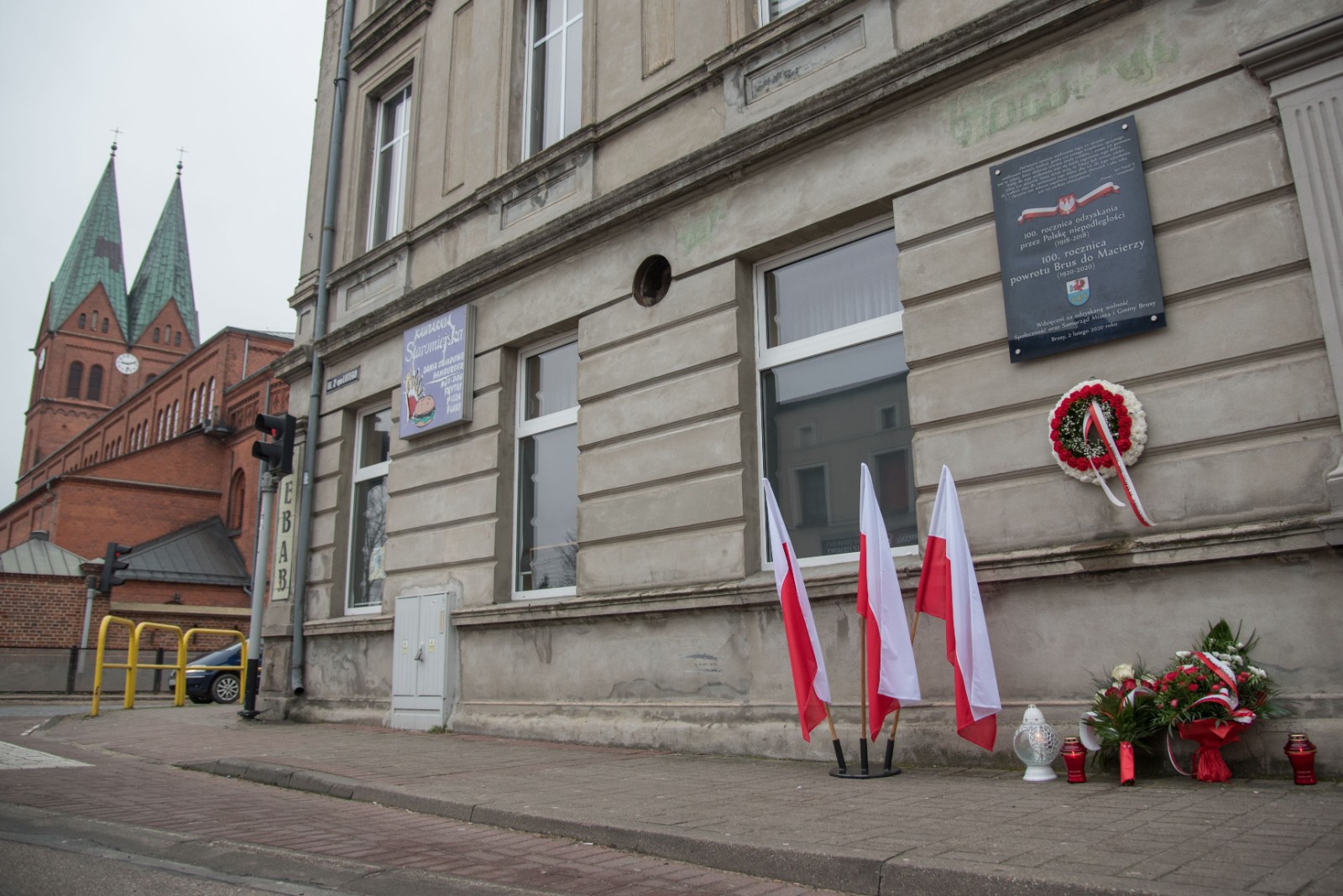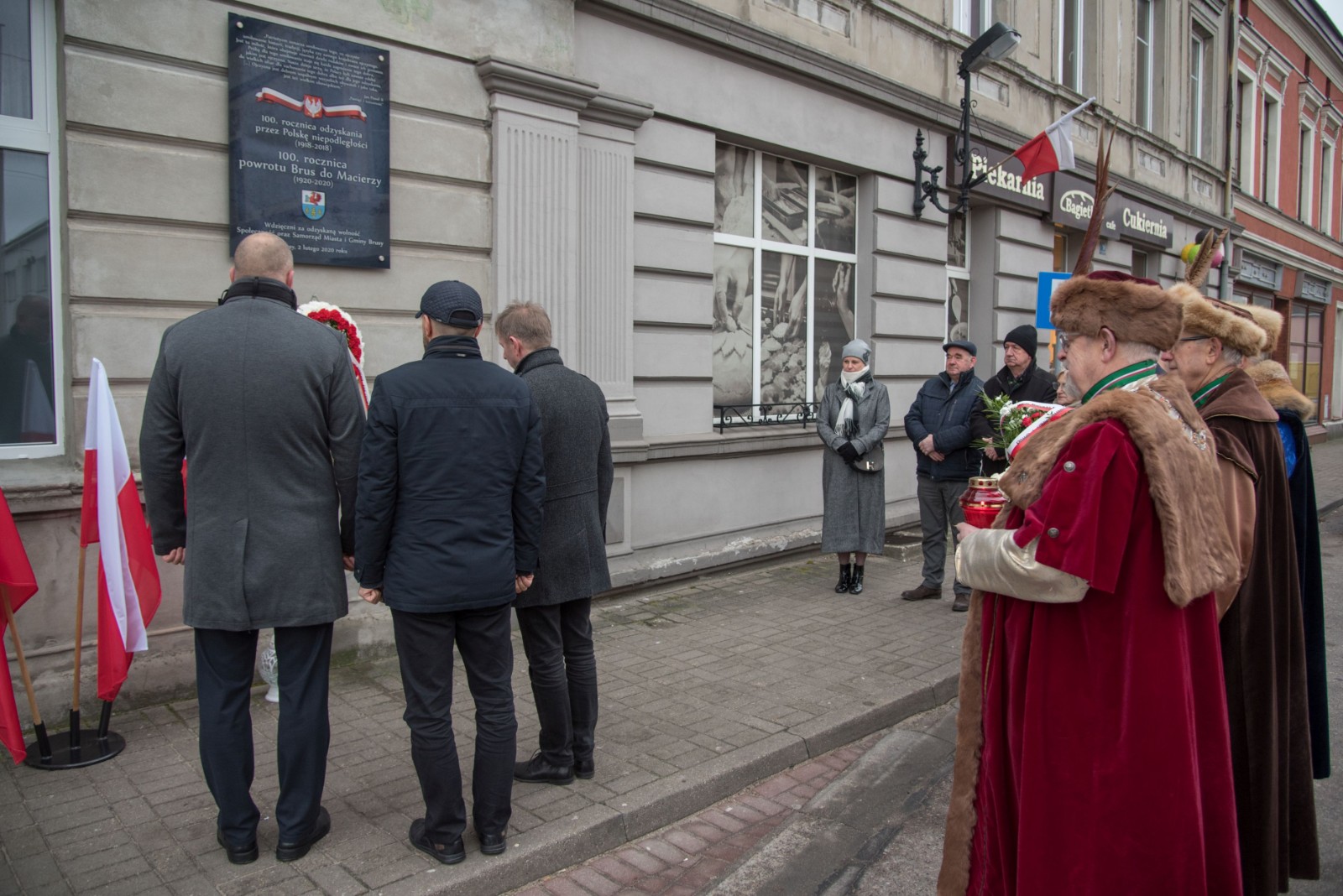Z tej okazji obecni przedstawiciele Samorządu i Społeczności Gminy Brusy złożyli kwiaty pod tablicą upamiętniającą dzień powrotu Brus do macierzy. Znajduje się ona na elewacji zabytkowej kamienicy przy ulicy 2-go Lutego.