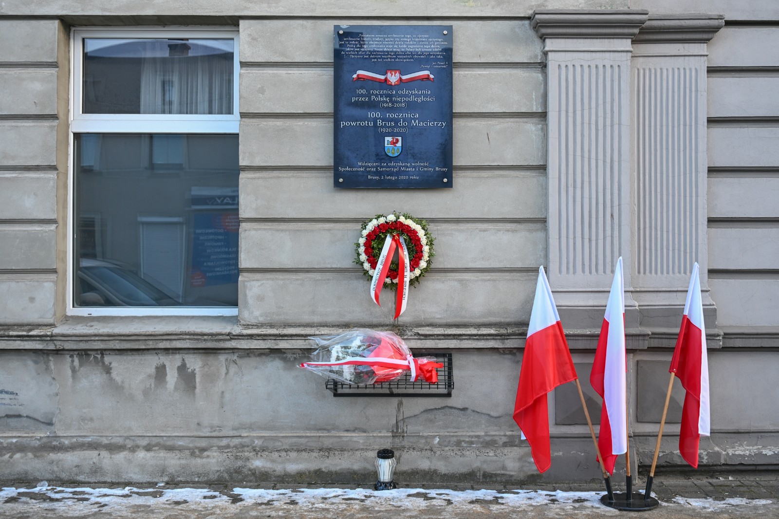 2 lutego 1920 roku, po latach zaborów, Brusy wróciły w granice niepodległej Polski. Dziś, w 106. rocznicę tego wydarzenia, przedstawiciele władz Gminy złożyli kwiaty pod upamiętniającą je tablicą.