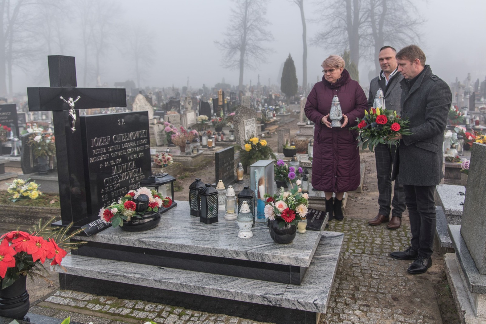 Wiązankę złożyli: Witold Ossowski, burmistrz Brus, Anna Orlikowska, dyrektor Centrum Kultury i Biblioteki im. Jana Karnowskiego oraz Krzysztof Czarnowski, prezes bruskiego oddziału Zrzeszenia Kaszubsko - Pomorskiego.