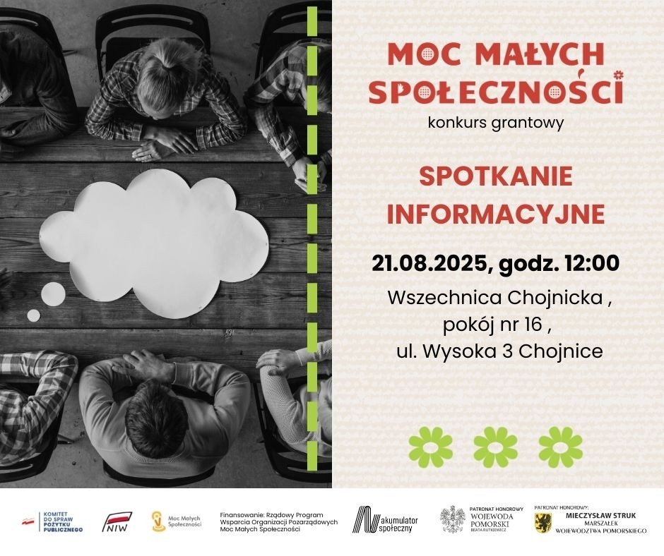 - 21.08.2025 (czwartek) o 12.00 Chojnice - Stowarzyszenie Wdzydzko - Charzykowska Lokalna Grupa Rybacka „Mòrénka”,