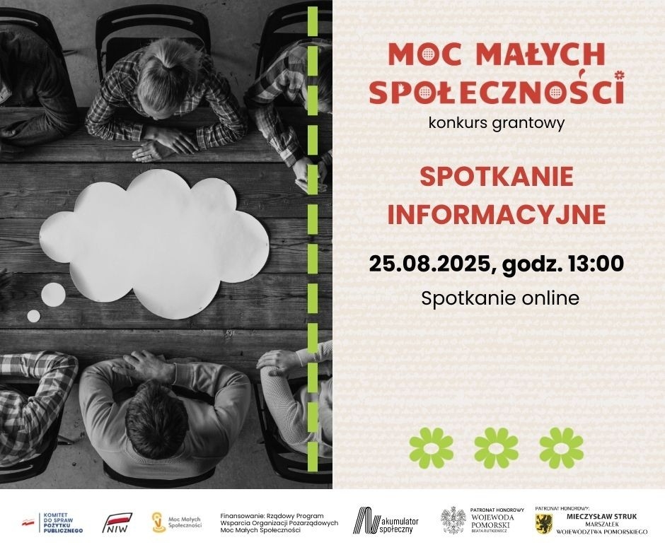 - 25.08.2025 (poniedziałek) o 13.00 ON-LINE na platformie Zoom ( link do spotkania wysyłamy po otrzymaniu zgłoszenia)