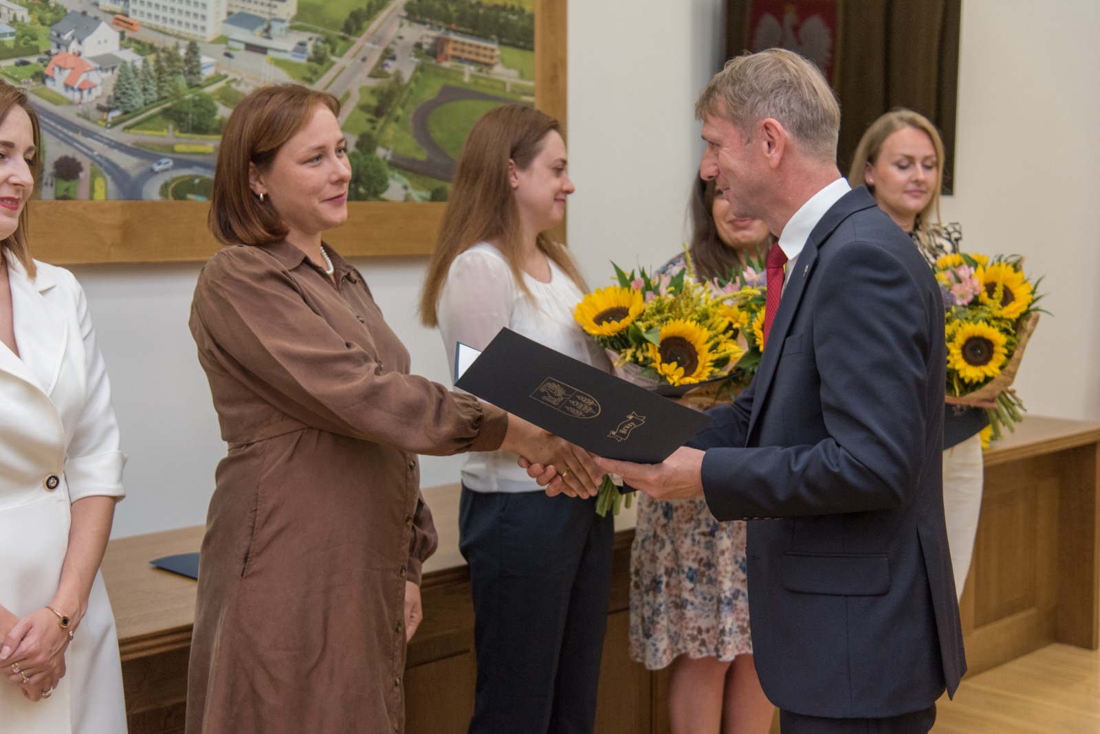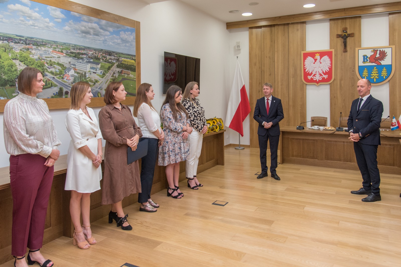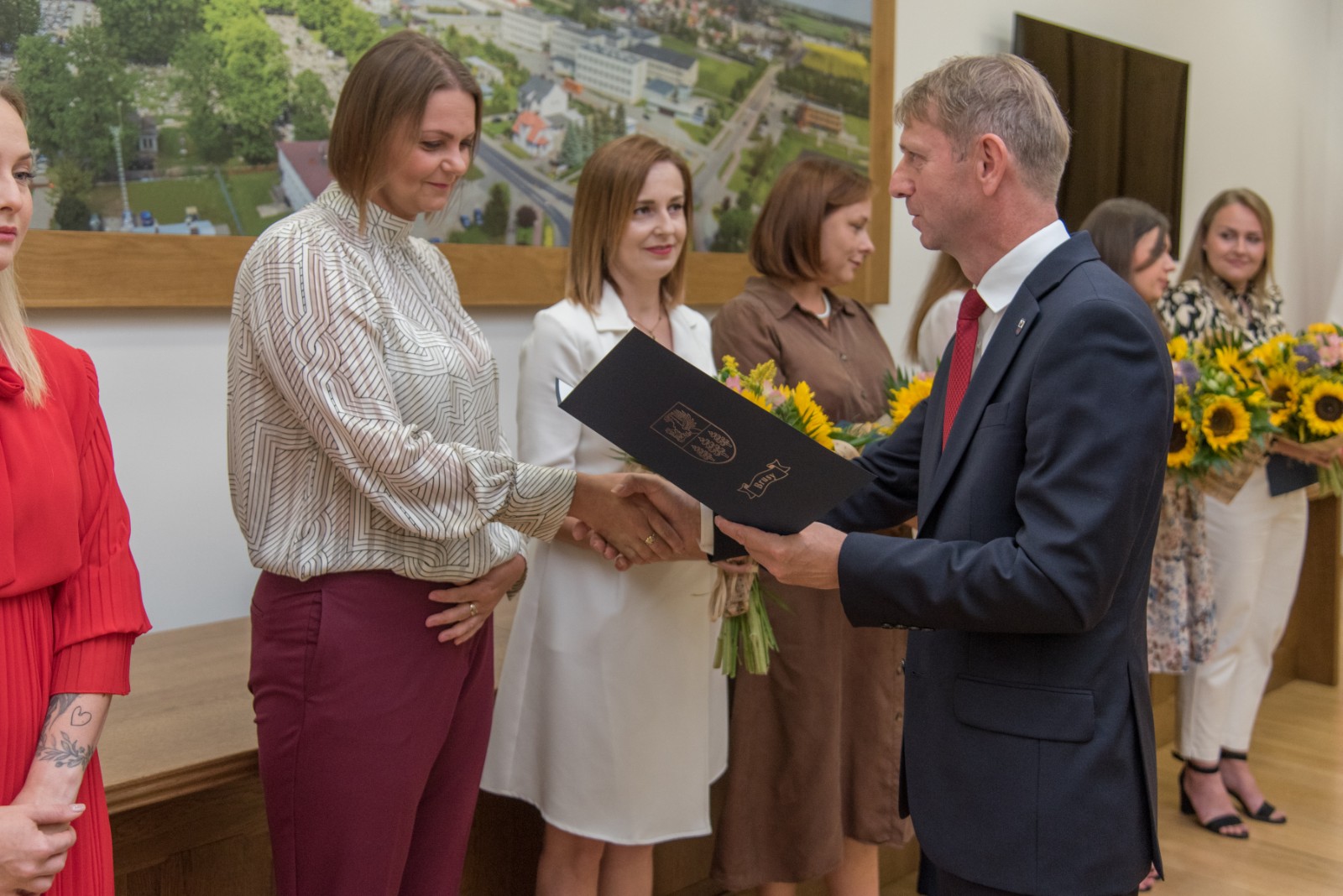 Burmistrz Brus Witold Ossowski pogratulował dziś (29.08) dziewięciu nauczycielkom przedszkolnym i szkolnym, które awansowały zawodowo na stopień nauczyciela mianowanego. Wręczenie aktów odbyło się w Urzędzie Miejskim w Brusach. Do gratulacji przyłączył się również dyrektor Gminnego Zarządu Oświaty w Brusach Jacek Bruski.