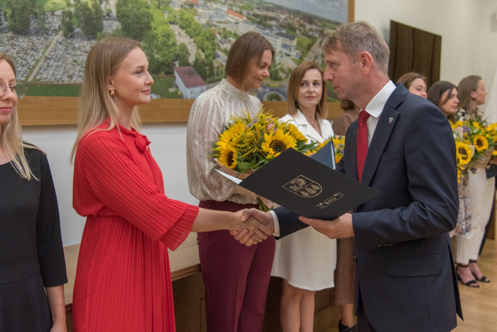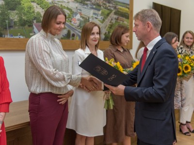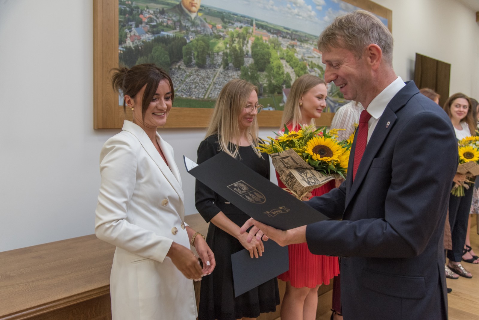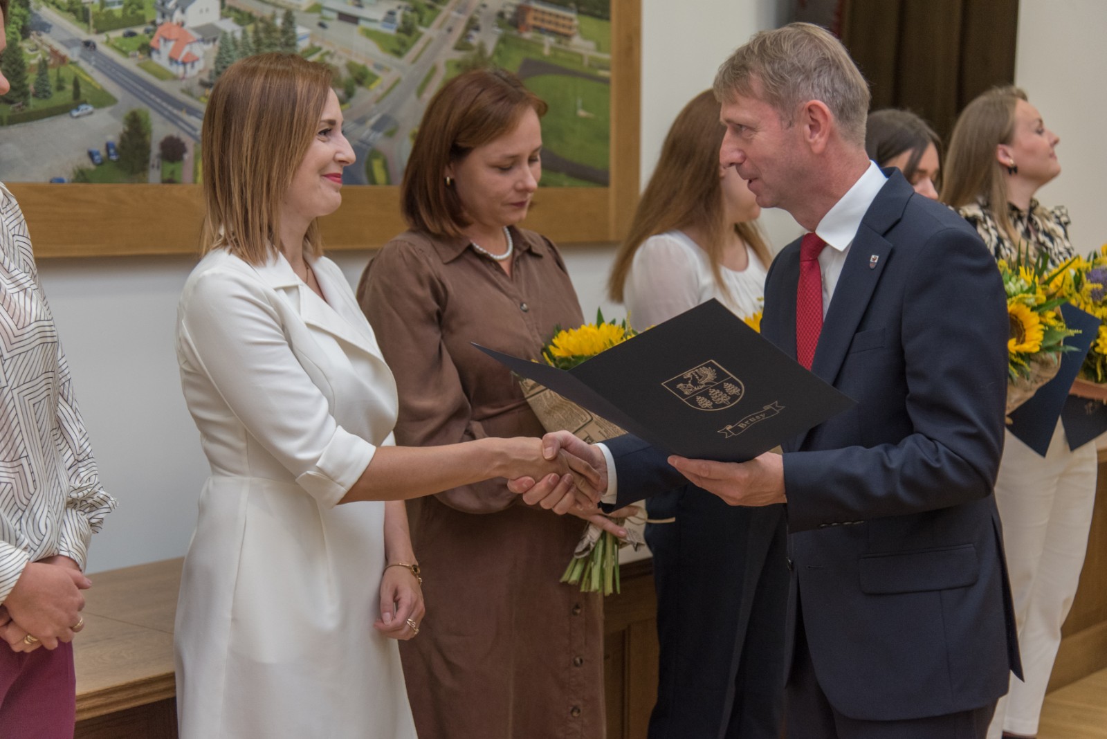 Burmistrz Brus Witold Ossowski pogratulował dziś (29.08) dziewięciu nauczycielkom przedszkolnym i szkolnym, które awansowały zawodowo na stopień nauczyciela mianowanego. Wręczenie aktów odbyło się w Urzędzie Miejskim w Brusach. Do gratulacji przyłączył się również dyrektor Gminnego Zarządu Oświaty w Brusach Jacek Bruski.