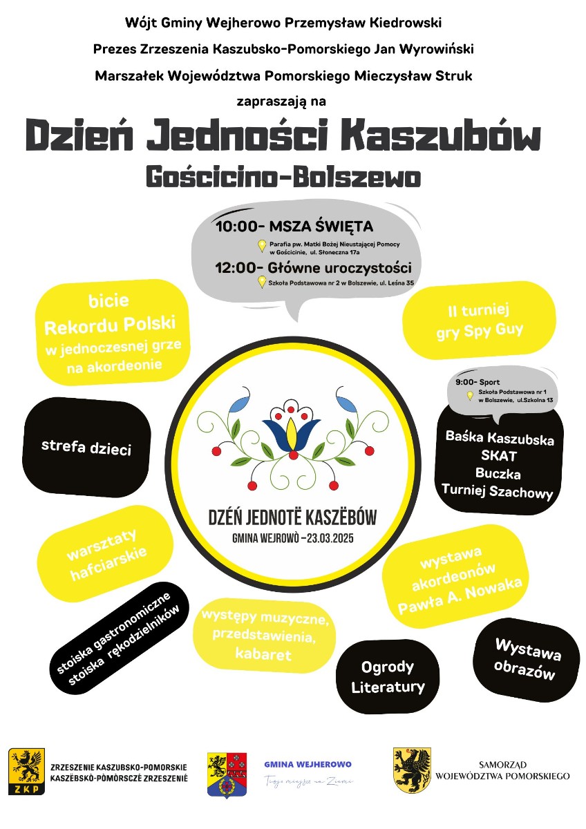 Burmistrz Brus podziękował wszystkim osobom, które z zaangażowaniem dbają o rozwój kultury i edukacji kaszubskiej w gminie Brusy. Jednocześnie podkreślił, że kaszubska tożsamość wymaga pielęgnowania i przekazywania kolejnym pokoleniom. Zachęcał także do licznego udziału w głównych obchodach Dnia Jedności Kaszubów, które już w najbliższą niedzielę, 23 marca, odbędą się w Gościcinie i Bolszewie w gminie Wejherowo.