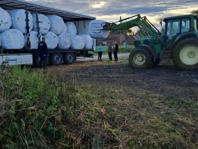 W pierwszy transport zaangażowały się firmy: Handel i Usługi Transportowe Wojciech Brelski, Transport Samochodowy Jerzy i Danuta Posieczek S.C. oraz Firma Usługowo-Transportowa Michał Szczepański. W sumie dostarczono blisko 100 balotów, które trafiły do Unikowic w gminie Paczków pod nadzorem państwa Wiesławy i Roberta Skórów.