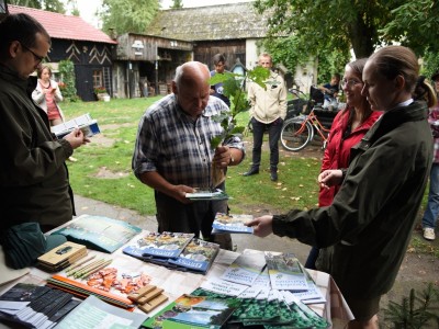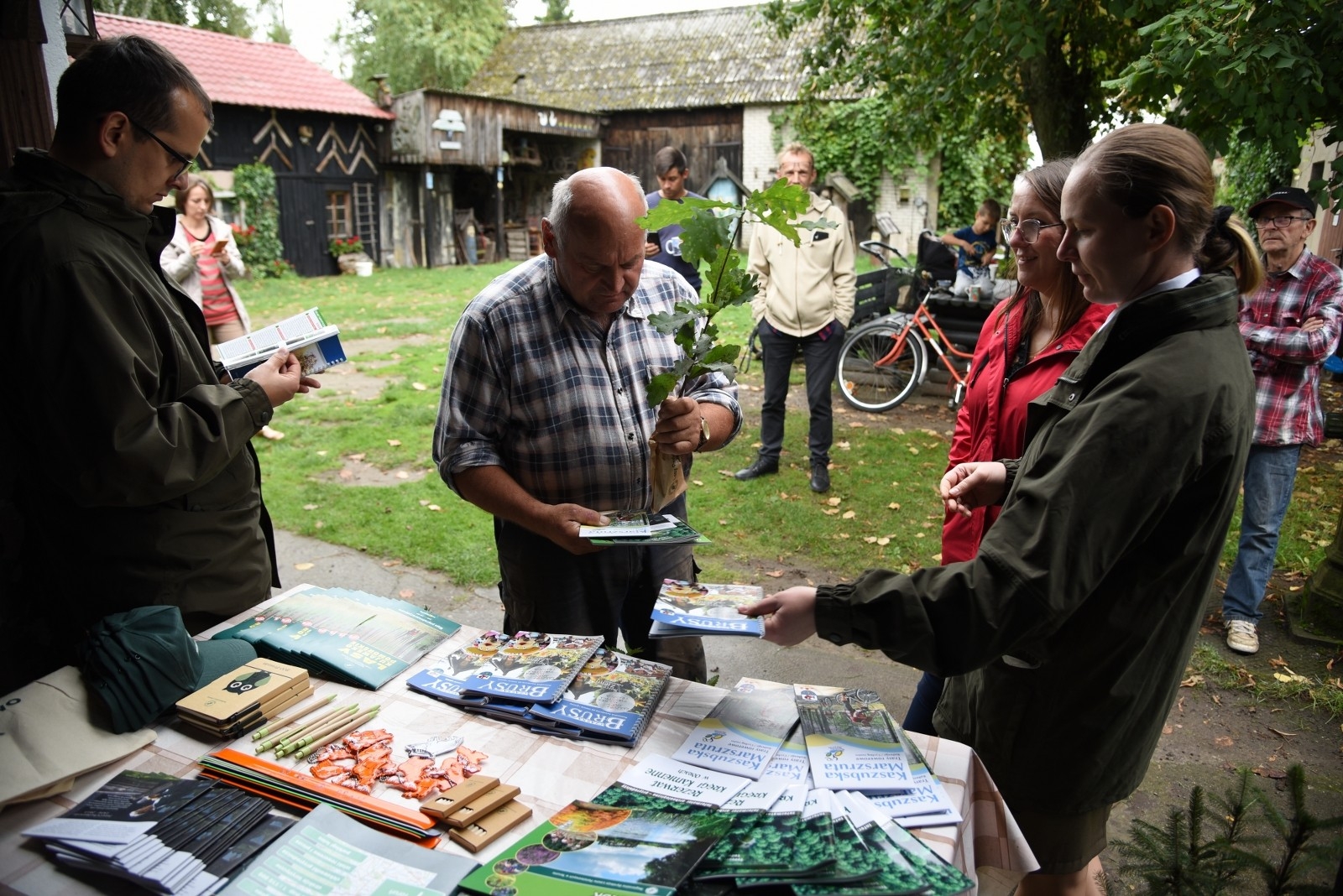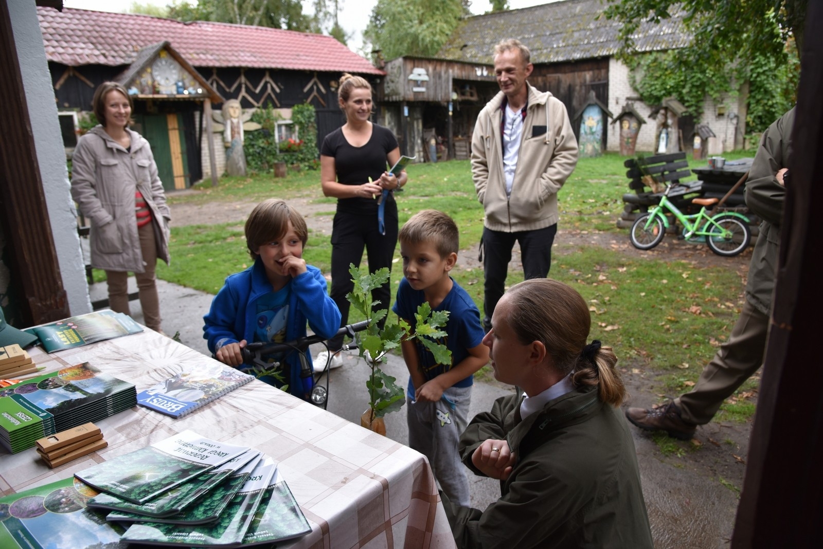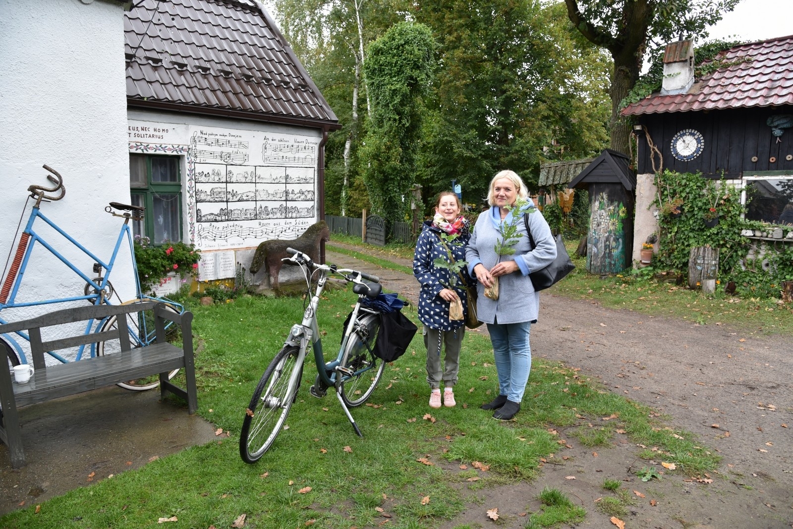 Zadanie było proste. Wystarczyło wsiąść na rower, przyjechać do Skansenu Jadwigi i Józefa Chełmowskich w Brusach - Jagliach i odpowiedzieć poprawnie na pytanie dotyczące m.in. tematyki rowerowej. Na miejscu czekali przedstawiciele Nadleśnictwa Czersk - Paulina Kobus oraz Kamil Żmuda Trzebiatowski, którzy nagradzali rowerzystów sadzonkami drzew. Łącznie rozdano kilkadziesiąt sztuk.