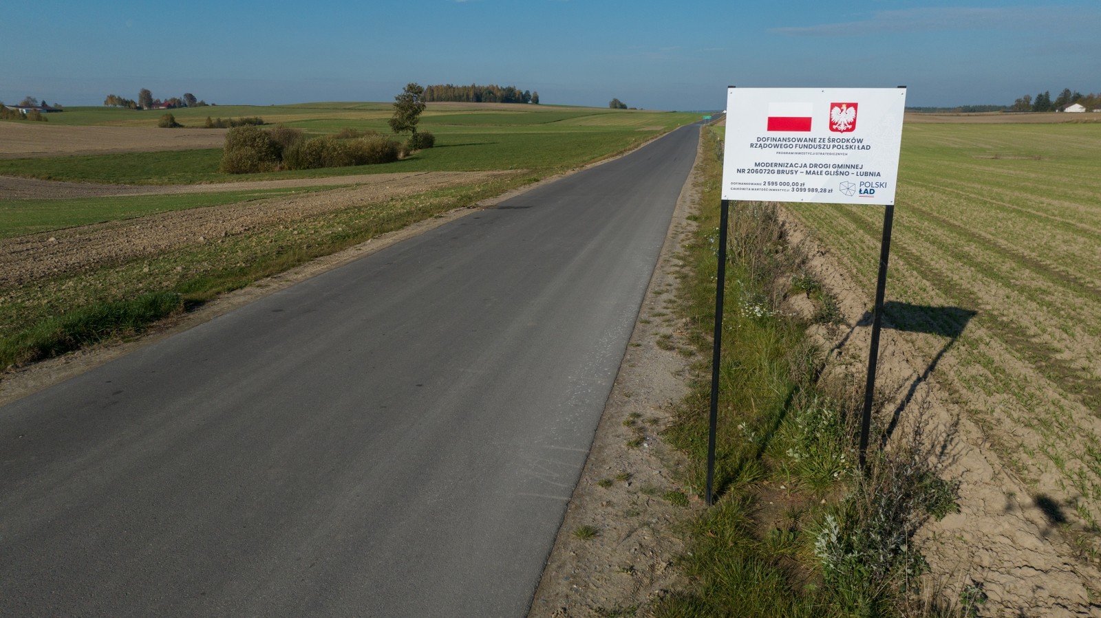 To dalsza część modernizacji ponad sześciokilometrowej trasy z Lubni przez Dąbrówkę i Małe Gliśno do Brus. Wcześniej w tym roku Gmina Brusy zakończyła budowę dwukilometrowego odcinka Lubnia – Dąbrówka. Szutrową nawierzchnię zastąpiła nawierzchnia asfaltowa, co znacząco poprawiło komfort jazdy. Koszt tego zadania wyniósł 3,1 mln zł, z czego aż 2,6 mln zł pokryło dofinansowanie z Rządowego Funduszu Polski Ład.