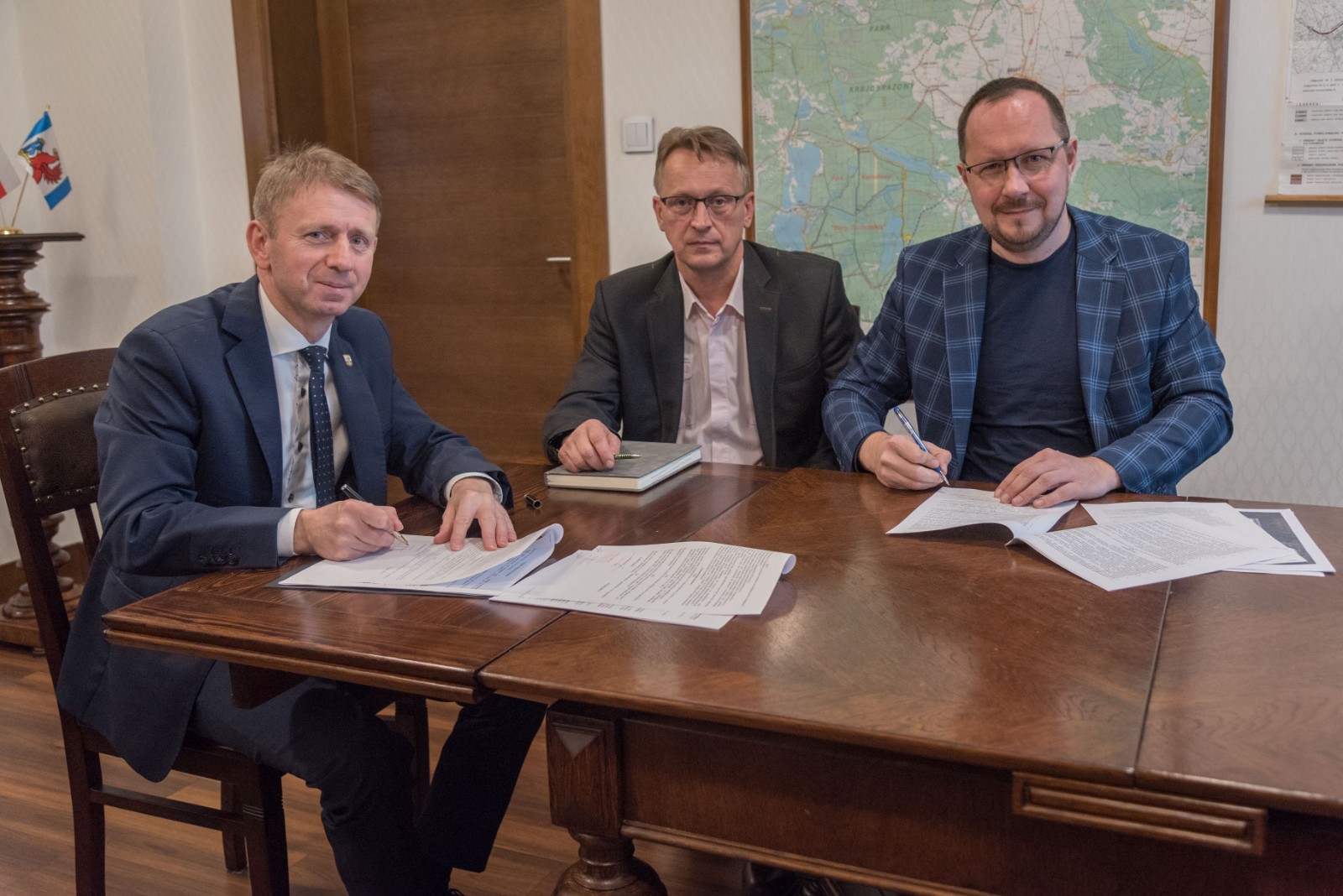 Burmistrz Brus Witold Ossowski podpisał umowy na wykonanie projektów - budowy nowej świetlicy wiejskiej z zapleczem dla jednostki OSP w Główczewicach i termomodernizacji wraz z przebudową świetlicy wiejskiej i remizy w Czarniżu.