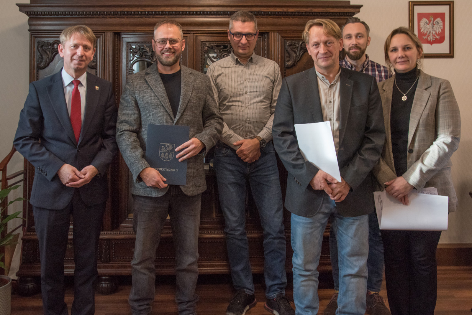 Dziś (13 listopada) Burmistrz Brus Witold Ossowski podpisał umowę z firmą PBHU OBIEKT Sp. z o.o. na budowę hali sportowej przy Szkole Podstawowej w Zalesiu.