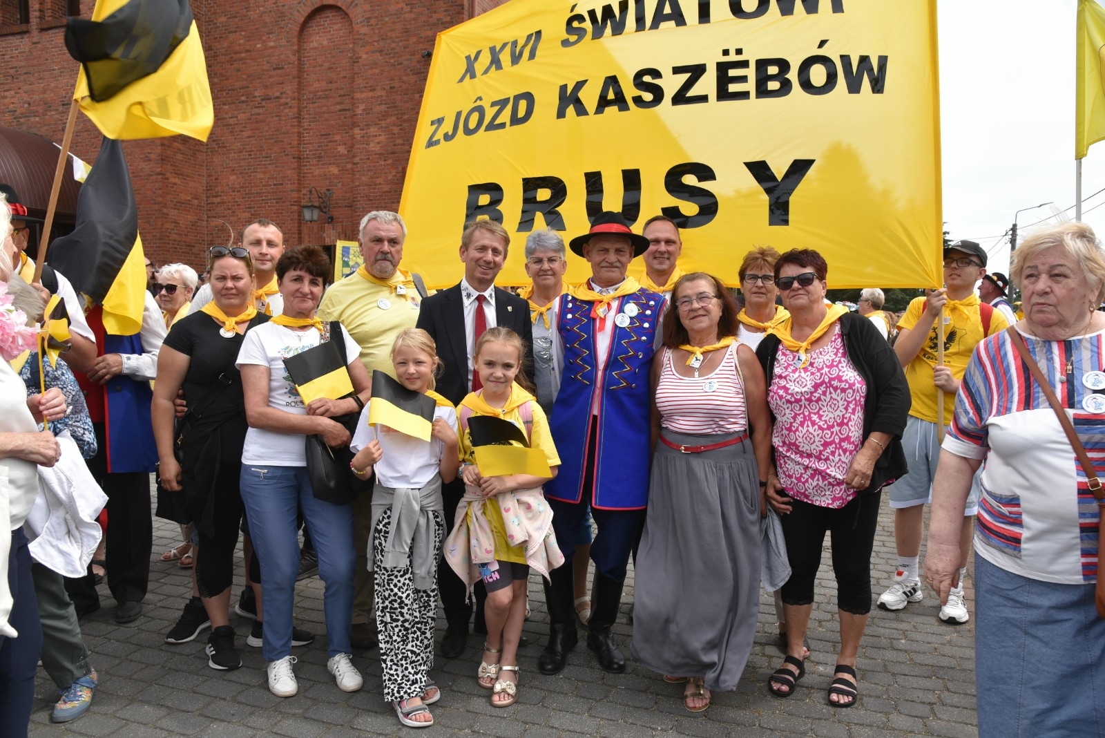 Gmina Brusy zadbała o szeroki udział mieszkańców – część dotarła własnym transportem, inni skorzystali z bezpłatnego przejazdu zorganizowanego przez Samorząd. W zjeździe uczestniczyli m.in. członkowie bruskiego oddziału ZKP z prezesem Krzysztofem Czarnowskim, regionaliści – Danuta Miszczyk, kierownik Teatru Obrzędu Ludowego Zaboracy i m.in. nauczyciel języka kaszubskiego Mikołaj Rydygier, delegacja Kaszubskiego Liceum Ogólnokształcącego, artyści ludowi, przedstawiciele lokalnych organizacji i instytucji oraz wielu sympatyków kaszubskiej kultury. Nie zabrakło także bruskich rękodzielników – Ireny Peplińskiej z haftem kaszubskim i Jarosława Świerczka z rzeźbami. Obecność pocztów sztandarowych Kaszubskiego LO i bruskiego oddziału ZKP dodała delegacji gminy Brusy uroczystego charakteru.