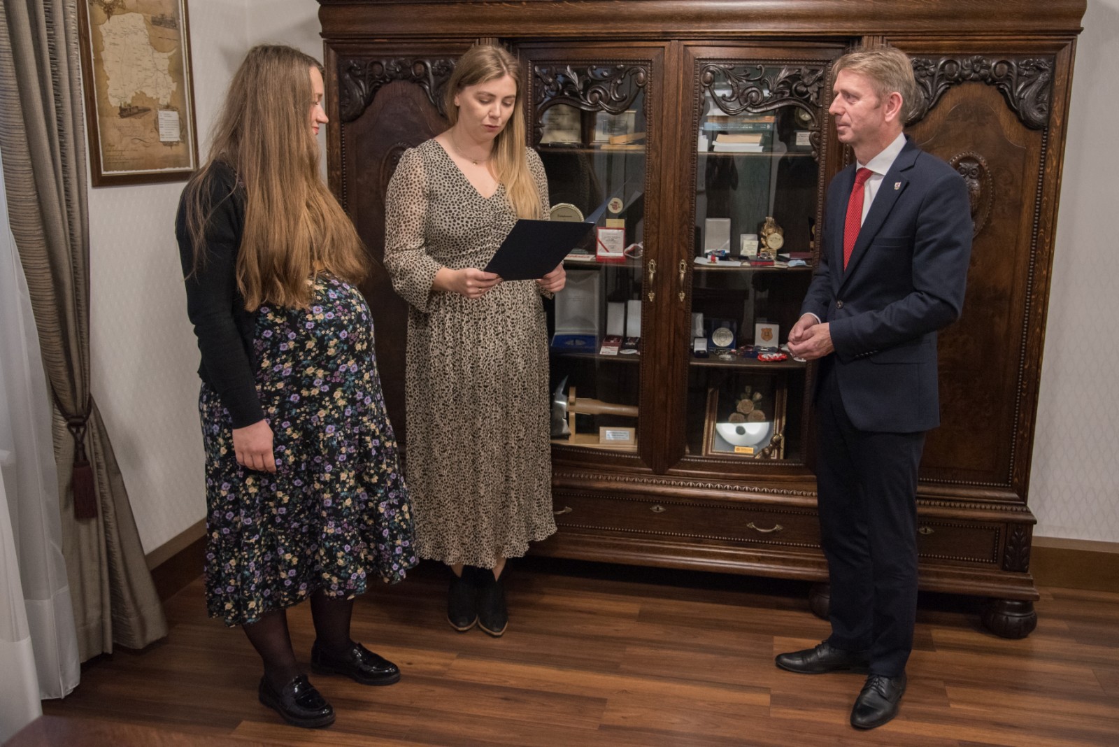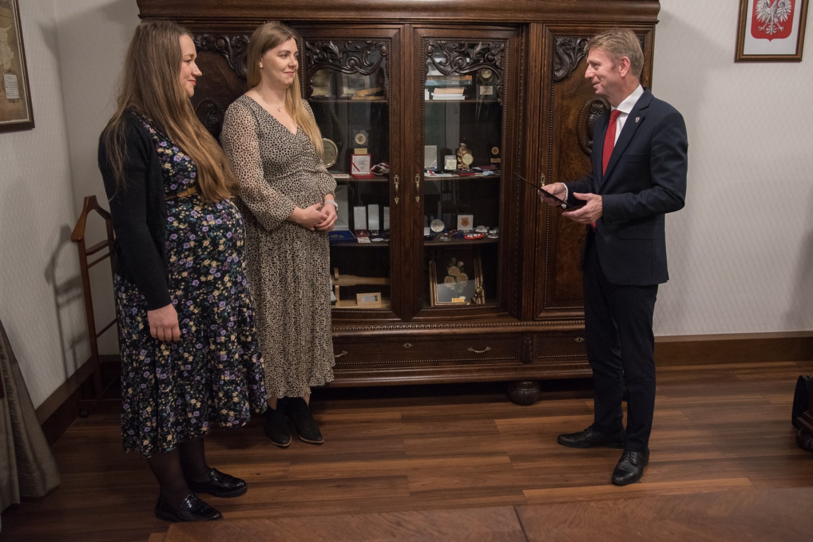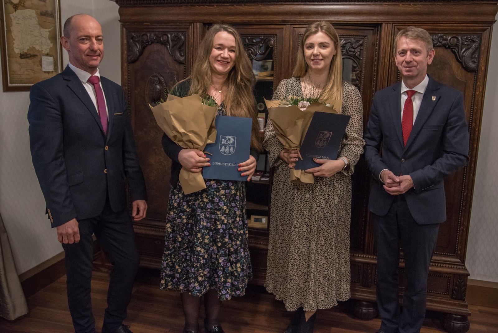 Pani Oliwia Teca ze Szkoły Podstawowej im. bł. ks. Józefa Jankowskiego w Czyczkowach oraz Pani Ewelina Mikołajczyk ze Szkoły Podstawowej im. Kardynała Stefana Wyszyńskiego w Leśnie odebrały z rąk Witolda Ossowskiego, burmistrza Brus akty nadania stopnia awansu zawodowego nauczyciela mianowanego. Przekazanie aktów odbyło się dzisiaj (27.11) w Urzędzie Miejskim w Brusach. Wspólnie z burmistrzem uzyskanego awansu zawodowego gratulował dyrektor Gminnego Zarządu Oświaty w Brusach Jacek Bruski.