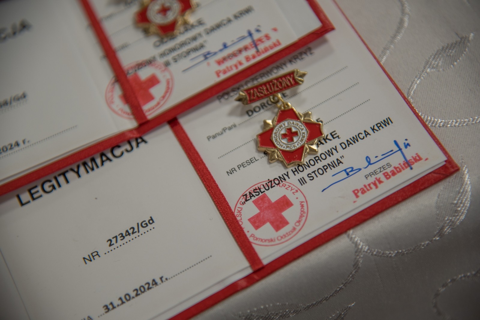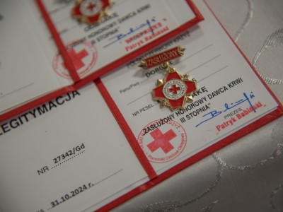 Piętnaścioro krwiodawcom przyznano odznaki „Zasłużony Honorowy Dawca Krwi” I, II i III stopnia, tj. złote, srebrne i brązowe. W przypadku kobiet, aby uzyskać to odznaczenie, należy oddać odpowiednio 15, 10 i 5 litrów krwi. Mężczyźni natomiast muszą uzyskać ilość 18, 12 i 6 litrów oddanej krwi.