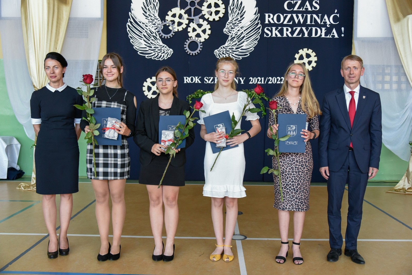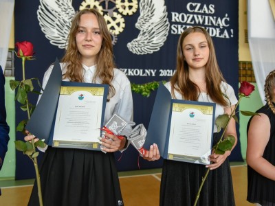 Dodatkowe upominki otrzymały cztery uczennice-stypendystki: Anna Wałdoch - za zdobycie tytułu finalisty w Wojewódzkim Konkursie Chemicznym i laureata w Wojewódzkim Konkursie z Języka Polskiego oraz uzyskanie maksymalnej średniej ocen końcowych w klasie VIII, Agnieszka Wałdoch za uzyskanie maksymalnej średniej ocen końcowych w klasie VIII, Agata Grela za zdobycie tytułu laureata w Wojewódzkim Konkursie Fizycznym i Julia Rogalla za zdobycie tytułu finalisty w Wojewódzkim Konkursie Geograficznym.
