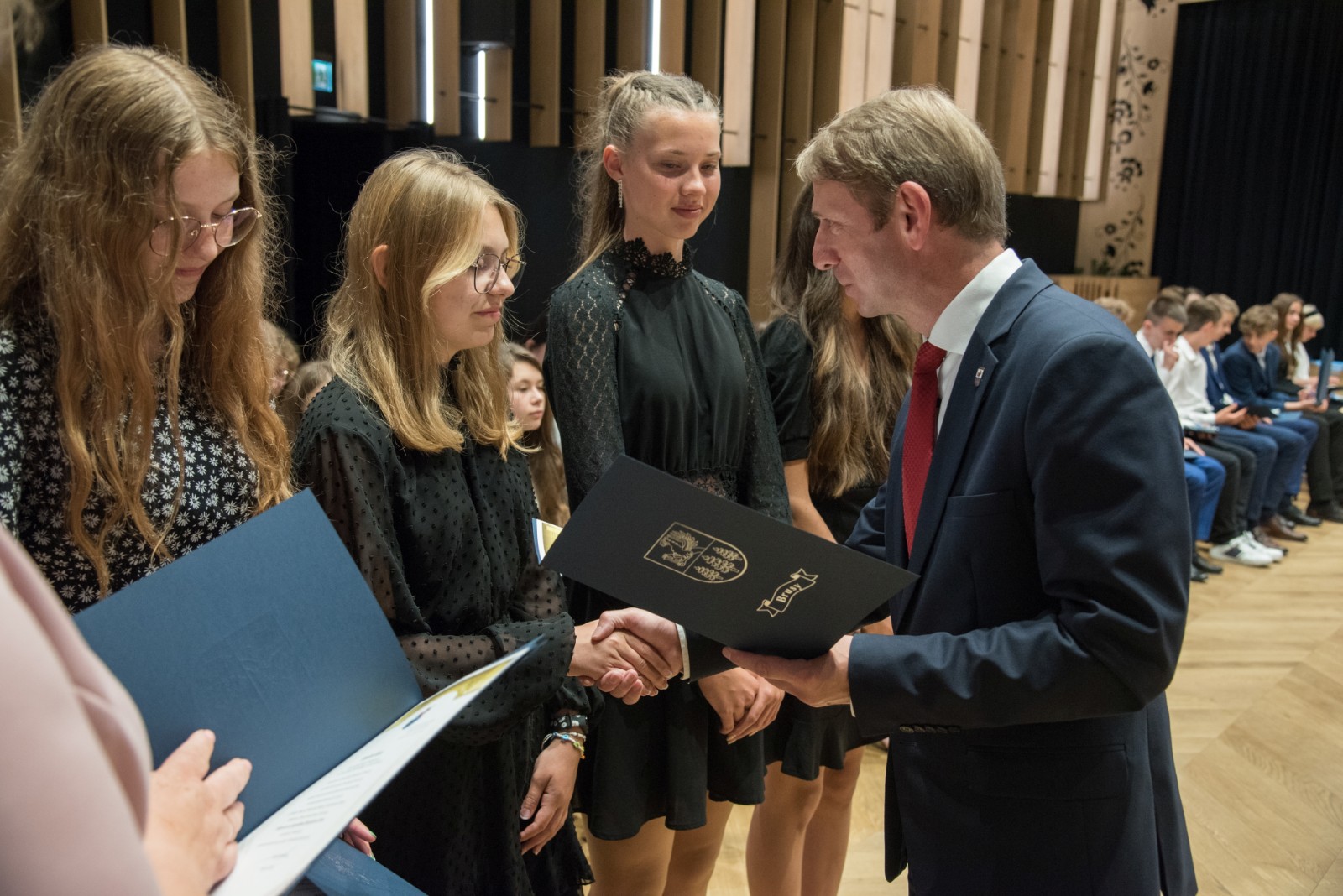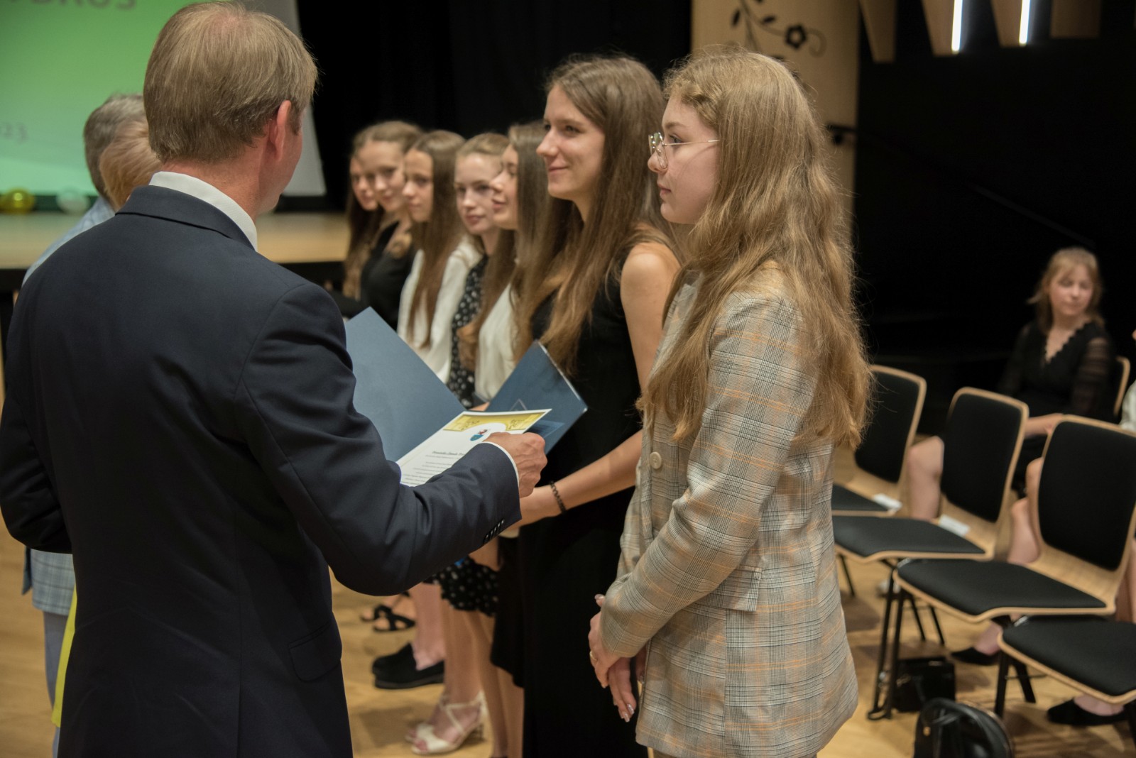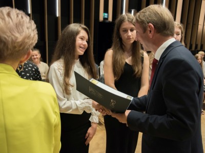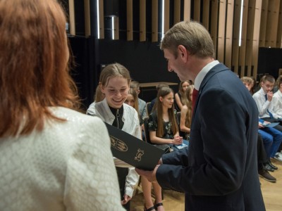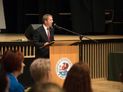 Uroczyste wręczenie stypendiów rozpoczął występ Emilii Czapiewskiej, uczennicy Szkoły Podstawowej nr 2 w Brusach. Podczas uroczystości obecni byli: Andrzej Wiecki, przewodniczący Komisji Oświaty Kultury i Sportu Rady Miejskiej, Jacek Bruski, dyrektor Gminnego Zarządu Oświaty, dyrektorzy i nauczyciele szkół podstawowych oraz rodzice i opiekunowie tegorocznych wyróżnionych absolwentów.