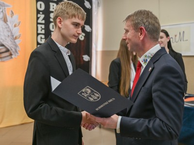 Burmistrz podkreślił osiągnięcia uczniów, dziękując im za zaangażowanie oraz aktywność w życiu szkoły. Życzył także wiary we własne możliwości i jak najlepszych wyników na maturze. Szczególne wyróżnienia oraz okolicznościowe upominki z rąk burmistrza odebrali absolwenci z najwyższymi wynikami w nauce: Maja Maciejewska, Weronika Synak oraz Dorian Meller.