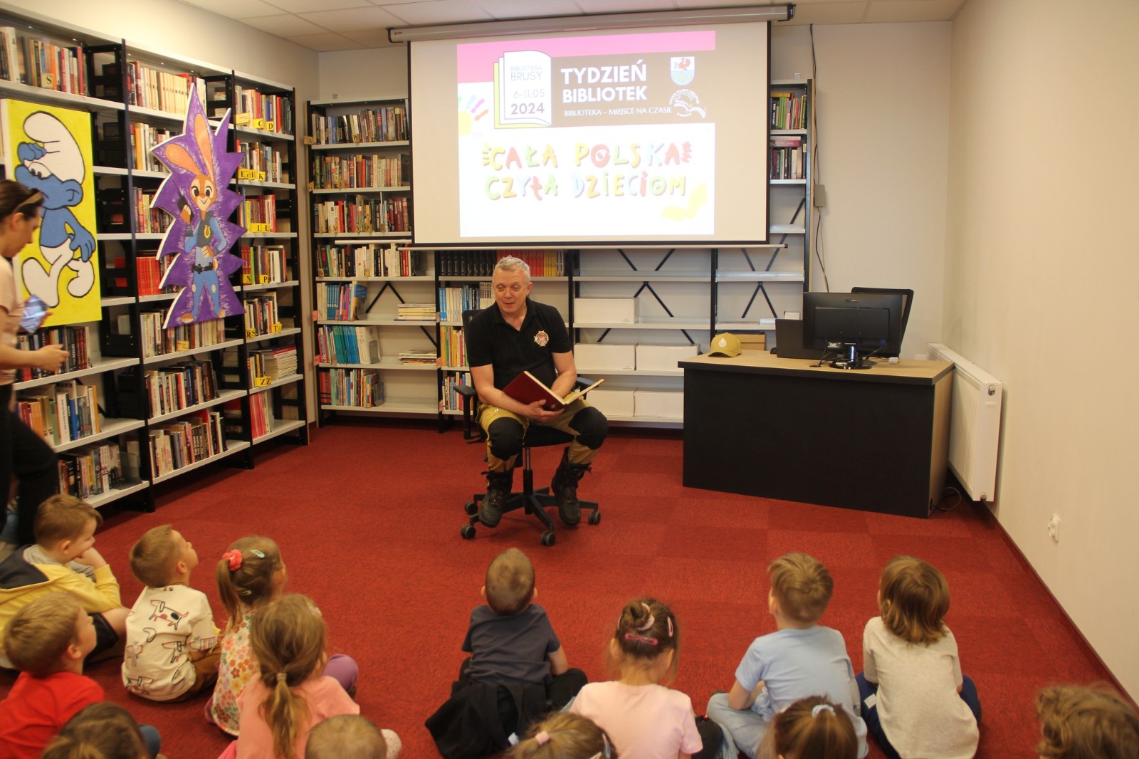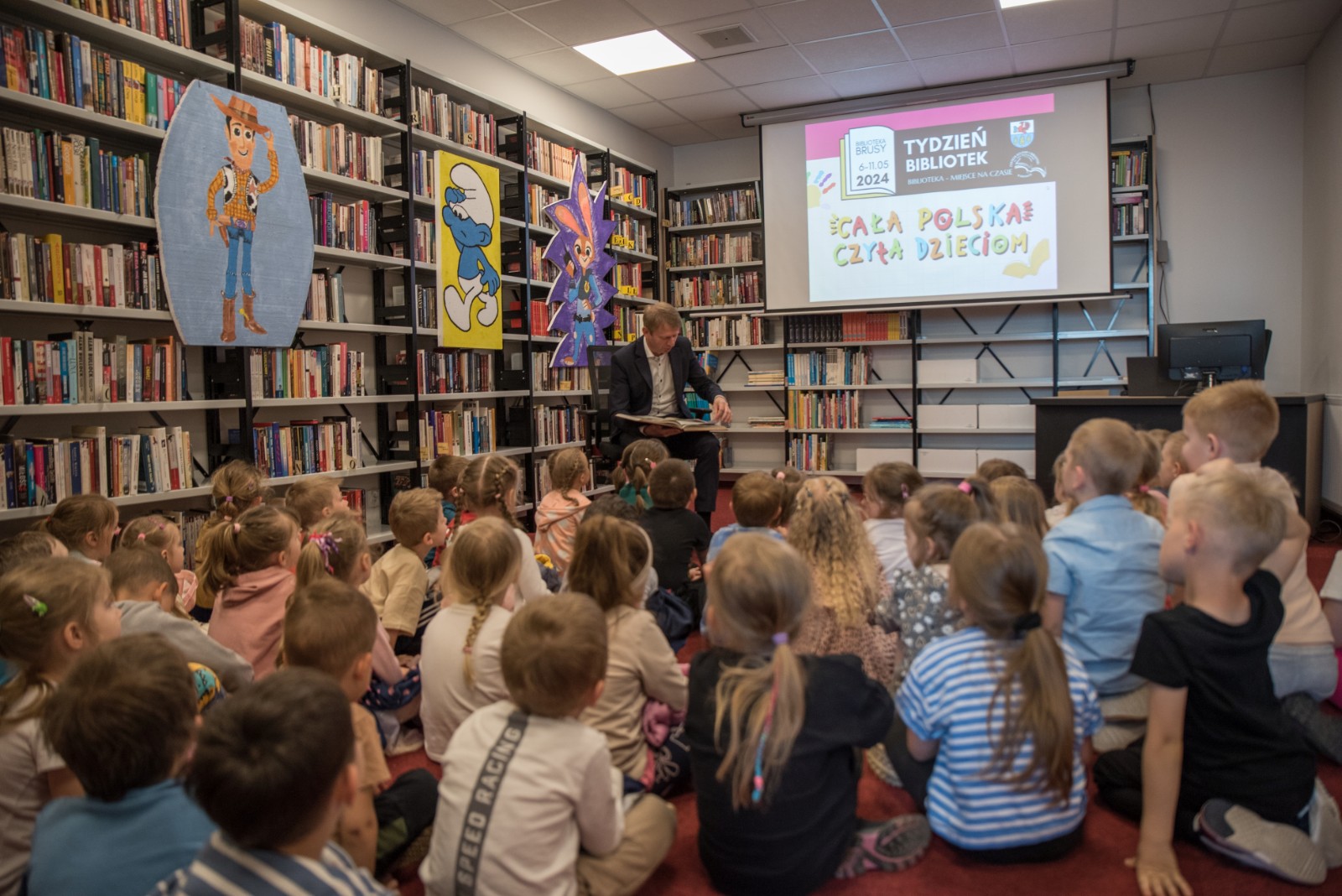 Znane, lubiane i pouczające bajki czytali dzieciom goście zaproszeni przez Centrum Kultury i Biblioteki w Brusach, które jest organizatorem Tygodnia Bibliotek. W czytanie zaangażowali się burmistrz Witold Ossowski, Hanna Grabska, radna Rady Miejskiej, Janusz Szmaglik, komendant gminny ochrony przeciwpożarowej, sierż. szt. Izabela Pozorska, dzielnicowa z Posterunku Policji w Brusach, siostra Barbara Dzienisz, dyrektor Przedszkola Sióstr Zmartwychwstanek oraz instruktorka Marta Kloskowska i uczestniczka zajęć Bożena Kisiel z Warsztatu Terapii Zajęciowej. Bajek słuchało w sumie 270 dzieci wraz z opiekunami z przedszkoli i szkół z gminy Brusy.