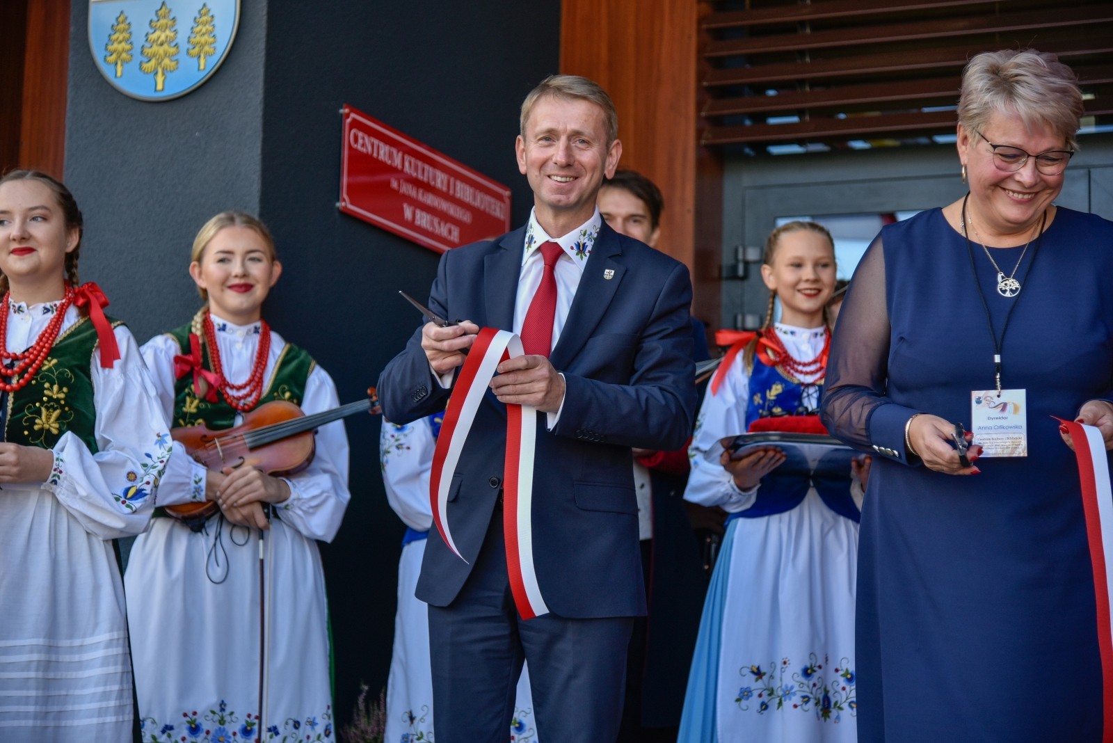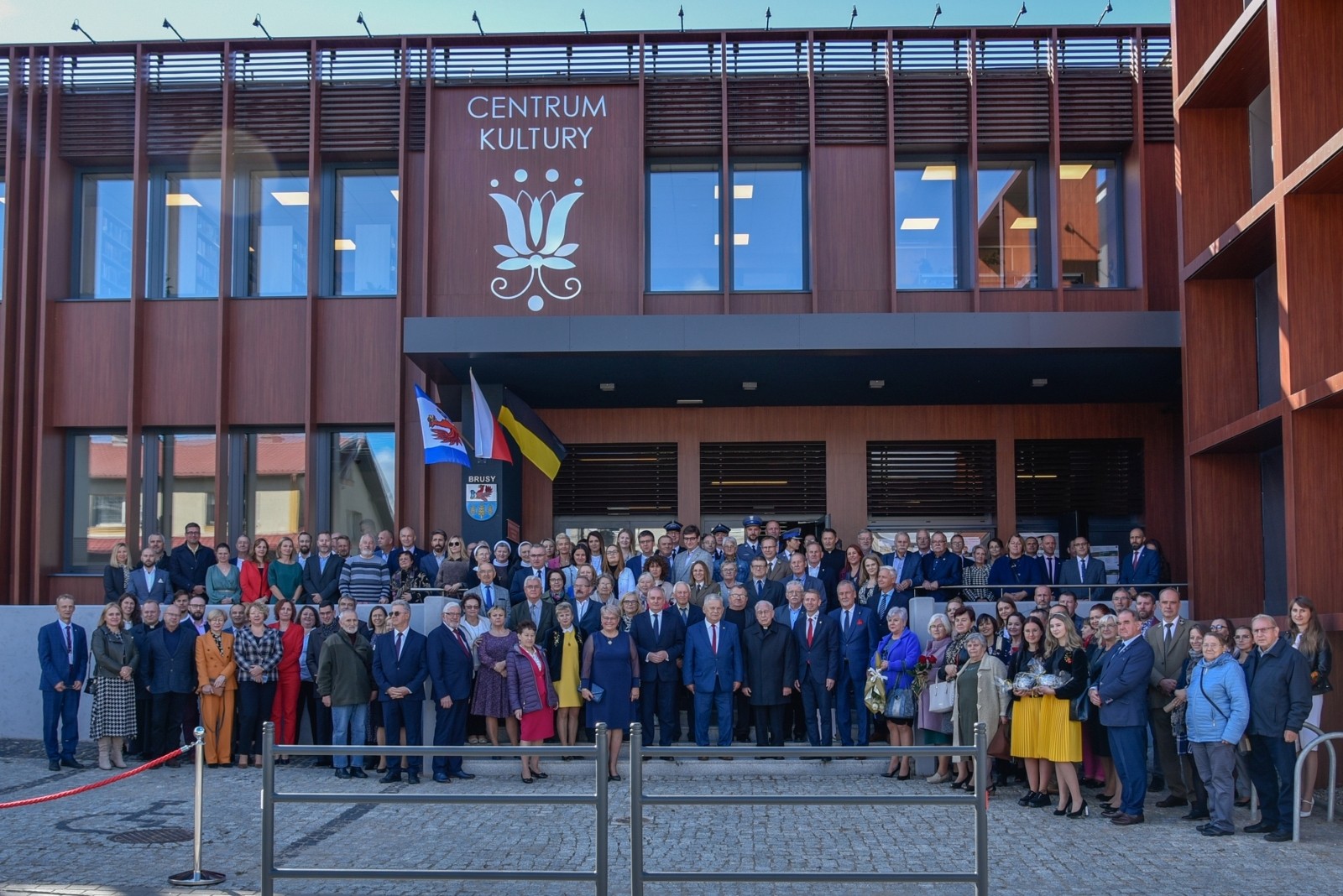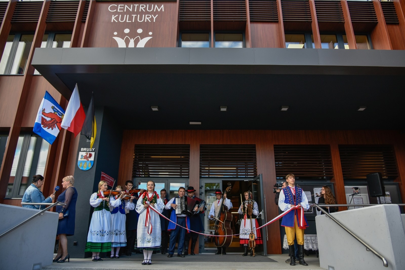 Symboliczną wstęgę przecięli: burmistrz Witold Ossowski, dyrektor Centrum Kultury i Biblioteki Anna Orlikowska, poseł Aleksander Mikołaj Mrówczyński, Wojewoda Pomorski Dariusz Drelich oraz dyrektor ośrodka kultury w Brusach w latach 1978-1998 i założyciel Kaszubskiego Zespołu Folklorystycznego Krëbane Władysław Czarnowski. Obiekt poświęcił ks. Jan Flaczyński, proboszcz Parafii Wszystkich Świętych w Brusach.