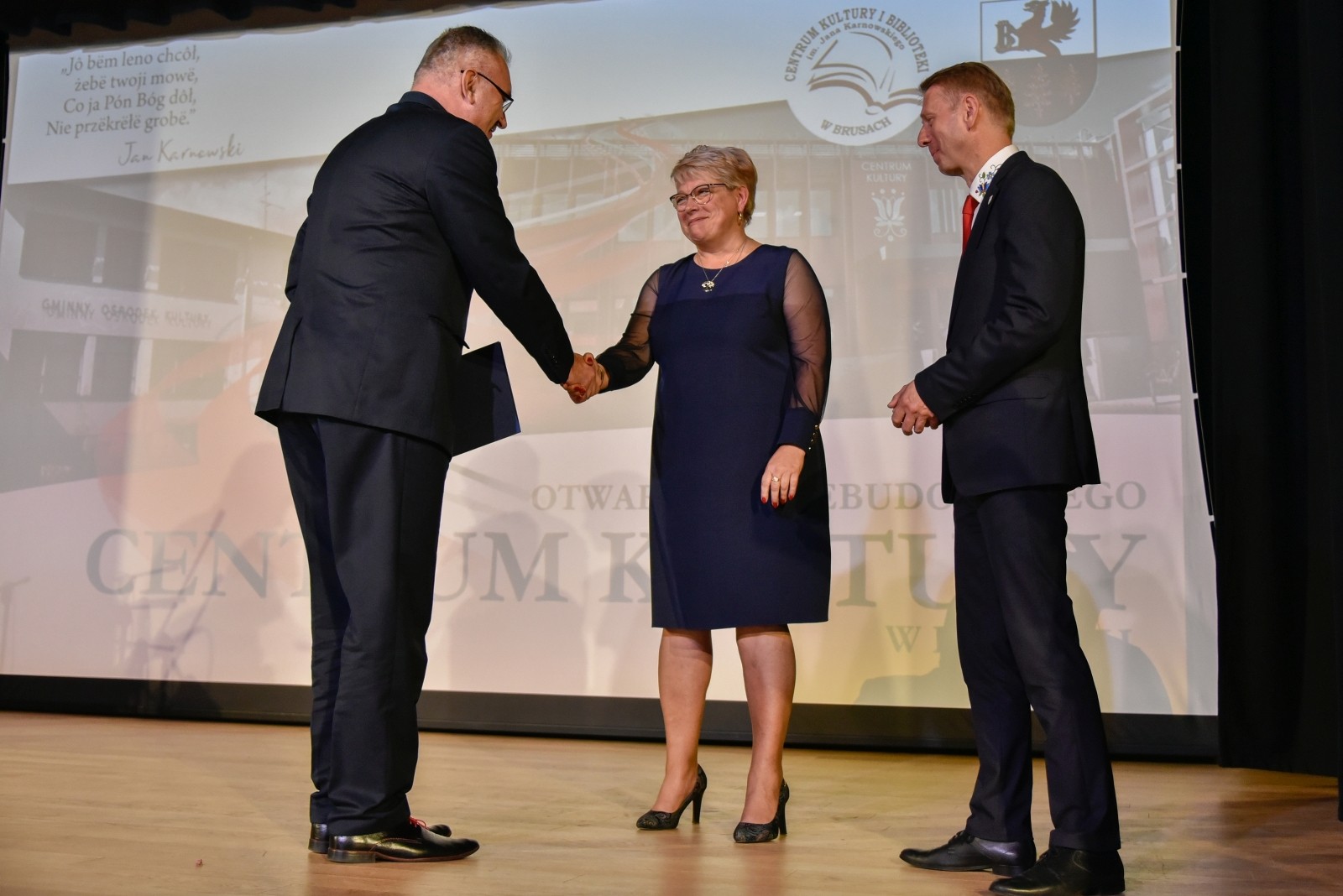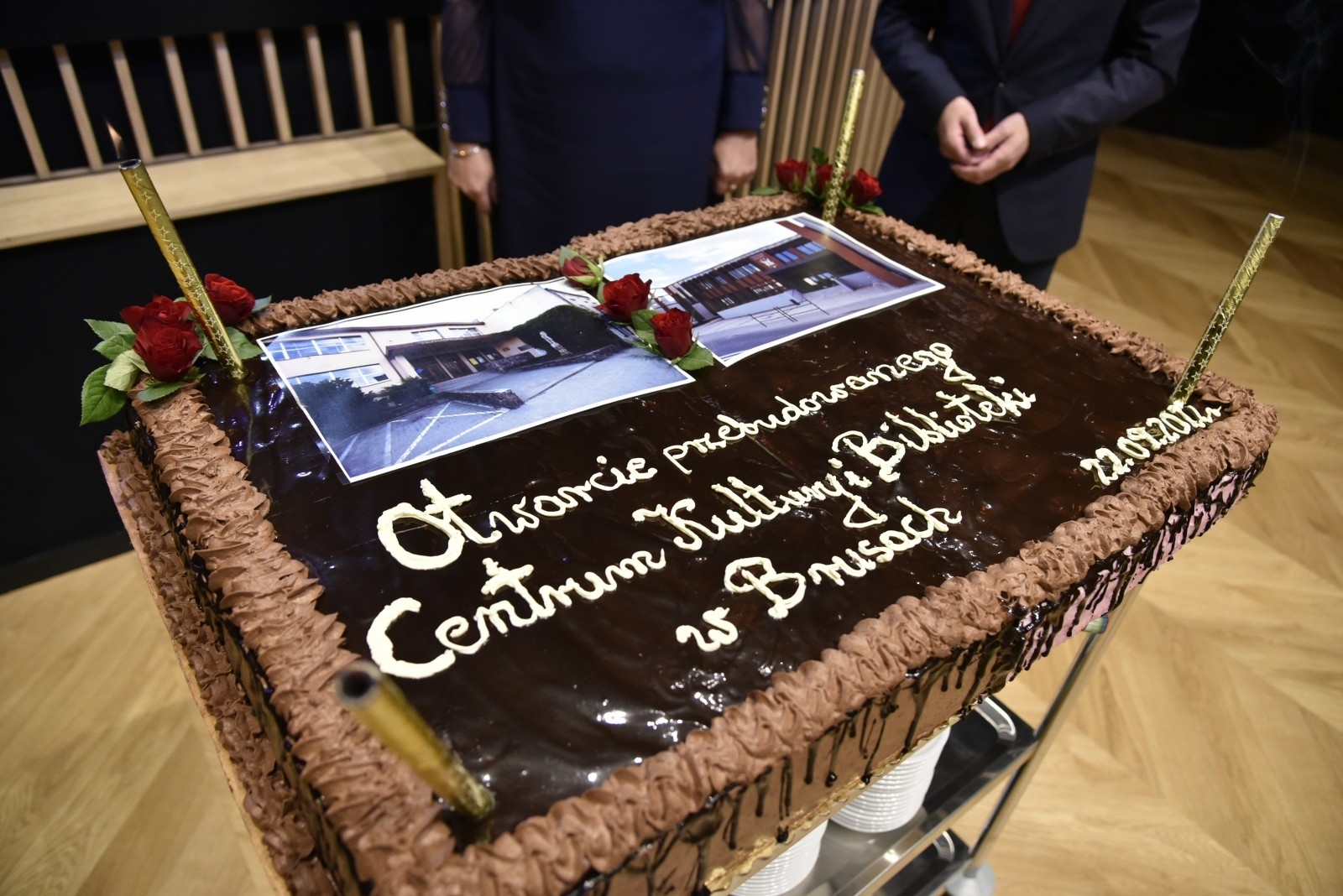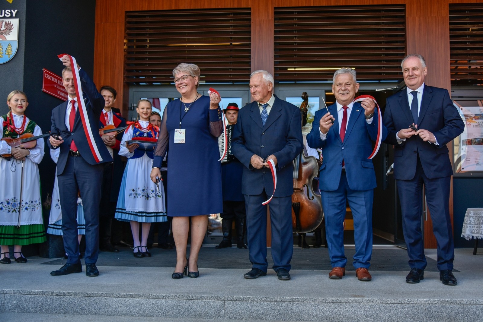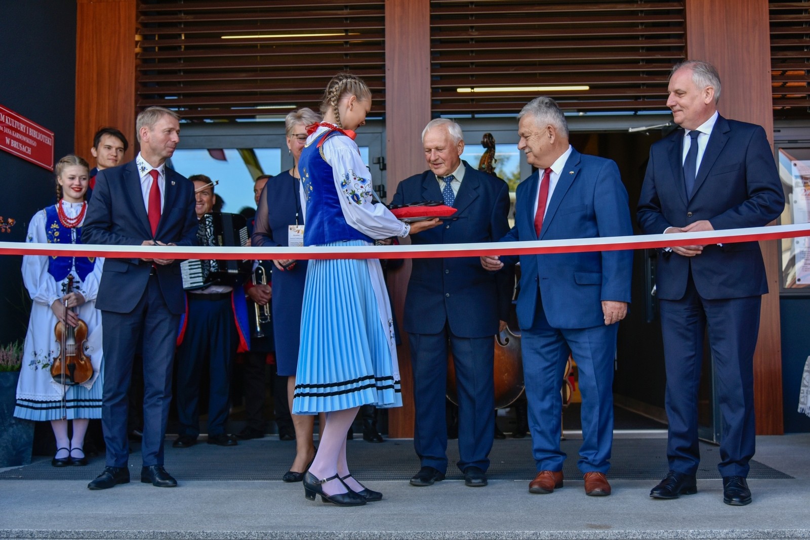 Symboliczną wstęgę przecięli: burmistrz Witold Ossowski, dyrektor Centrum Kultury i Biblioteki Anna Orlikowska, poseł Aleksander Mikołaj Mrówczyński, Wojewoda Pomorski Dariusz Drelich oraz dyrektor ośrodka kultury w Brusach w latach 1978-1998 i założyciel Kaszubskiego Zespołu Folklorystycznego Krëbane Władysław Czarnowski. Obiekt poświęcił ks. Jan Flaczyński, proboszcz Parafii Wszystkich Świętych w Brusach.