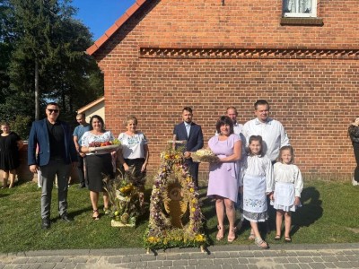 W tym roku, w imieniu całej wspólnoty rolników z Parafii w Leśnie, dary ofiarne składali mieszkańcy sołectwa Rolbik. Delegacja przygotowała wspaniały barwny wieniec dożynkowy, mieniący się kłosami zbóż i kolorowymi kwiatami. Członkinie Koła Gospodyń Wiejskich wraz z sołtys Alicją Połczyńską zadbały także o kosz kwiatów, owoce i tradycyjny dożynkowy chleb - symbol ciężkiej pracy rolników. Mszę świętą odprawił ks. proboszcz Damian Drozdowski.
