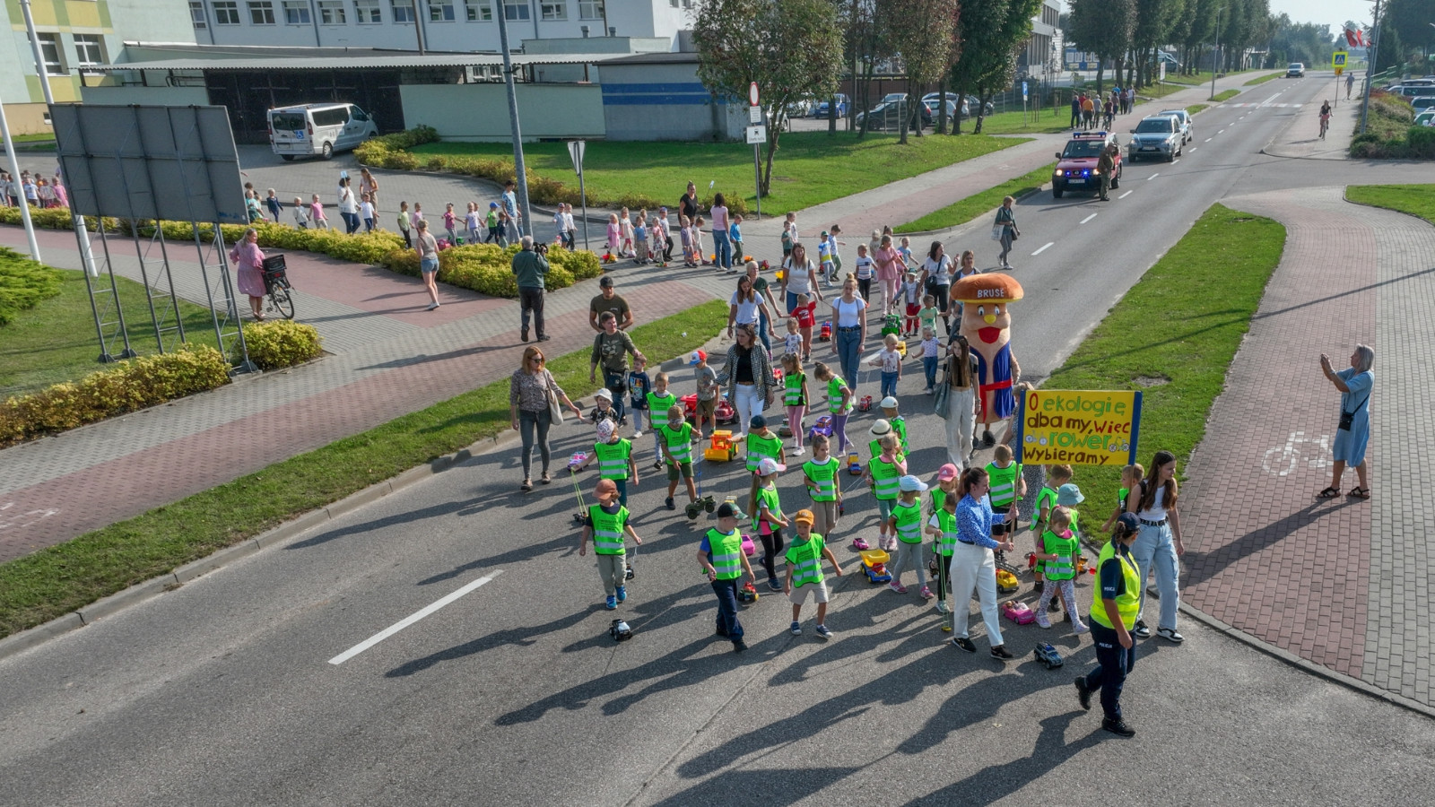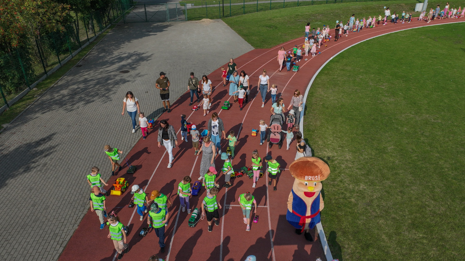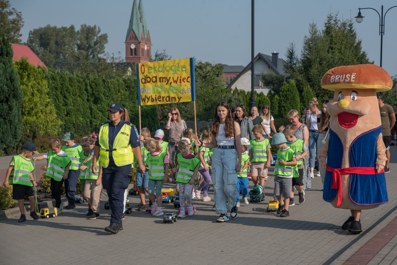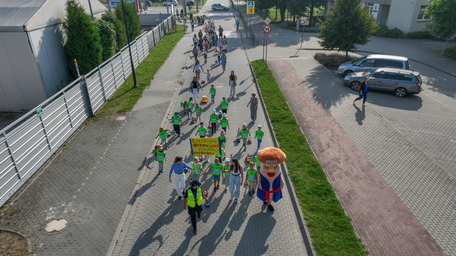 Przemarsz wystartował z ulicy Józefa Chełmowskiego i dotarł do stadionu miejskiego, gdzie w imieniu Burmistrza Brus z uczestnikami parady spotkał się zastępca Krzysztof Gierszewski. Mamy nadzieję, że poprzez organizację powyższej akcji zwrócimy uwagę jak wiele aut porusza się po naszych drogach, bo każda rodzina to min. jeden pojazd. Chcemy zmotywować w ten sposób kierowców, aby rezygnowali z przejazdów autem na rzecz rodzinnych spacerów.