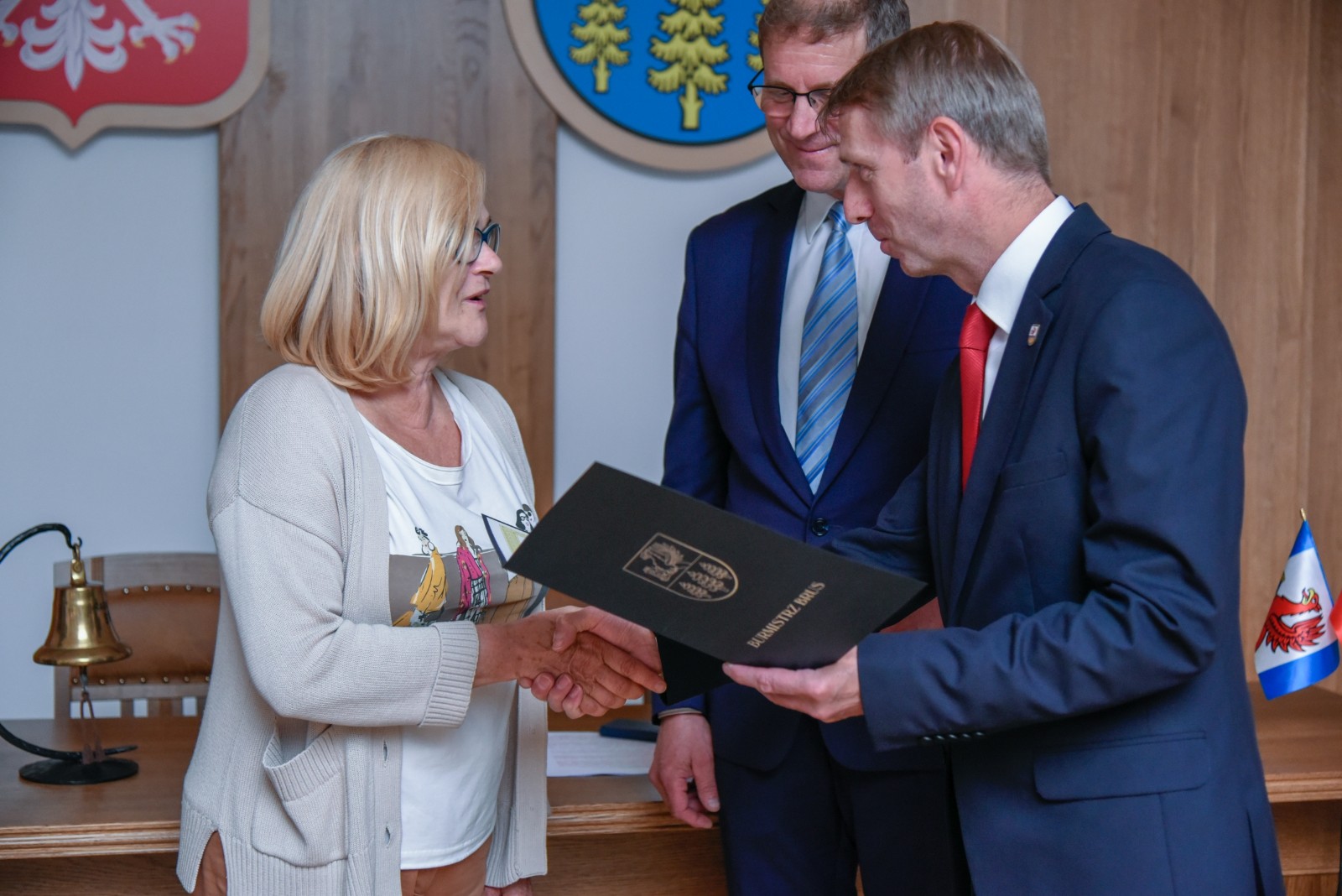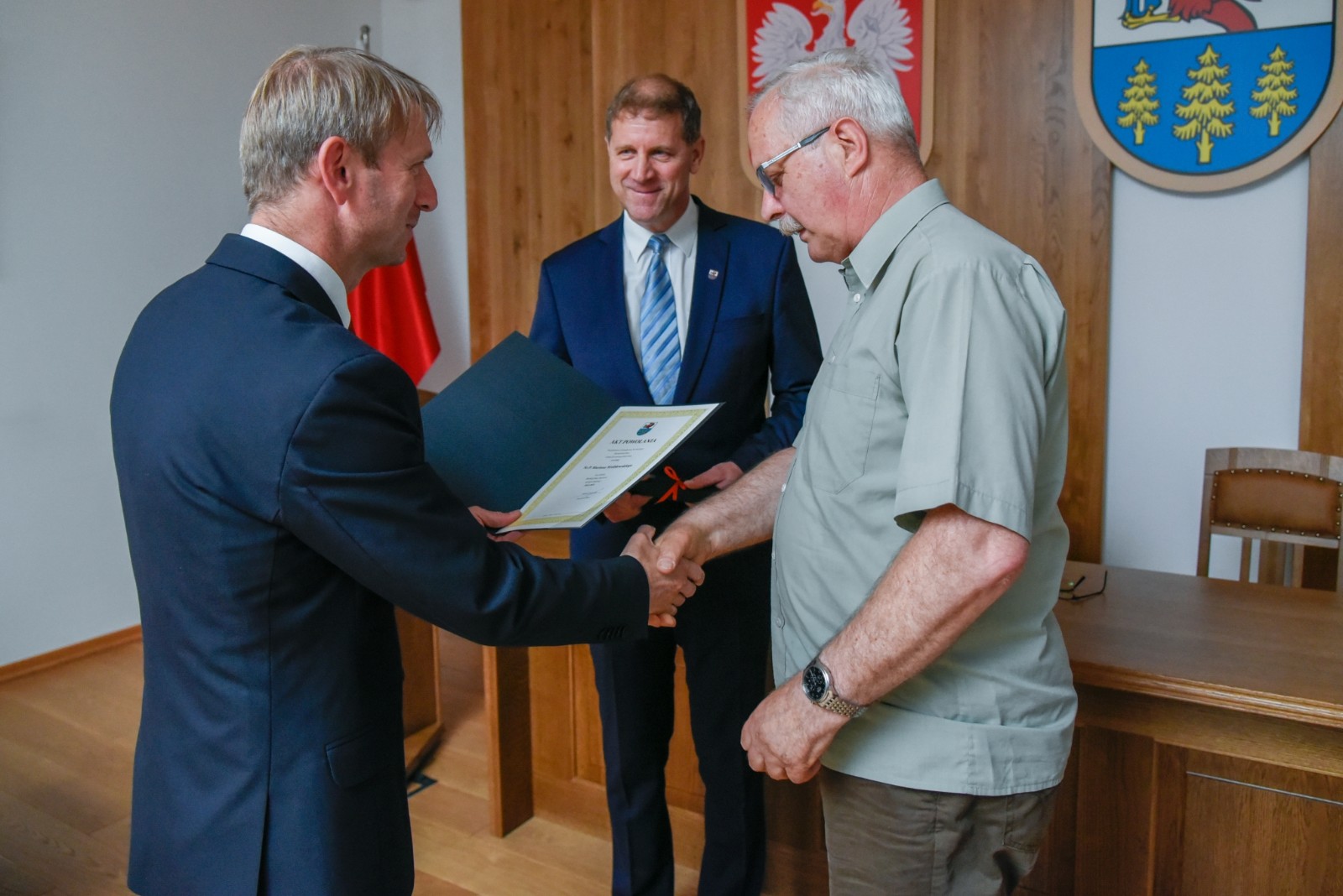 Burmistrz Witold Ossowski i Przewodniczący Rady Miejskiej Zbigniew Łącki wręczyli wczoraj (14.07) akty powołania członkom nowo powstałej Rady Seniorów.