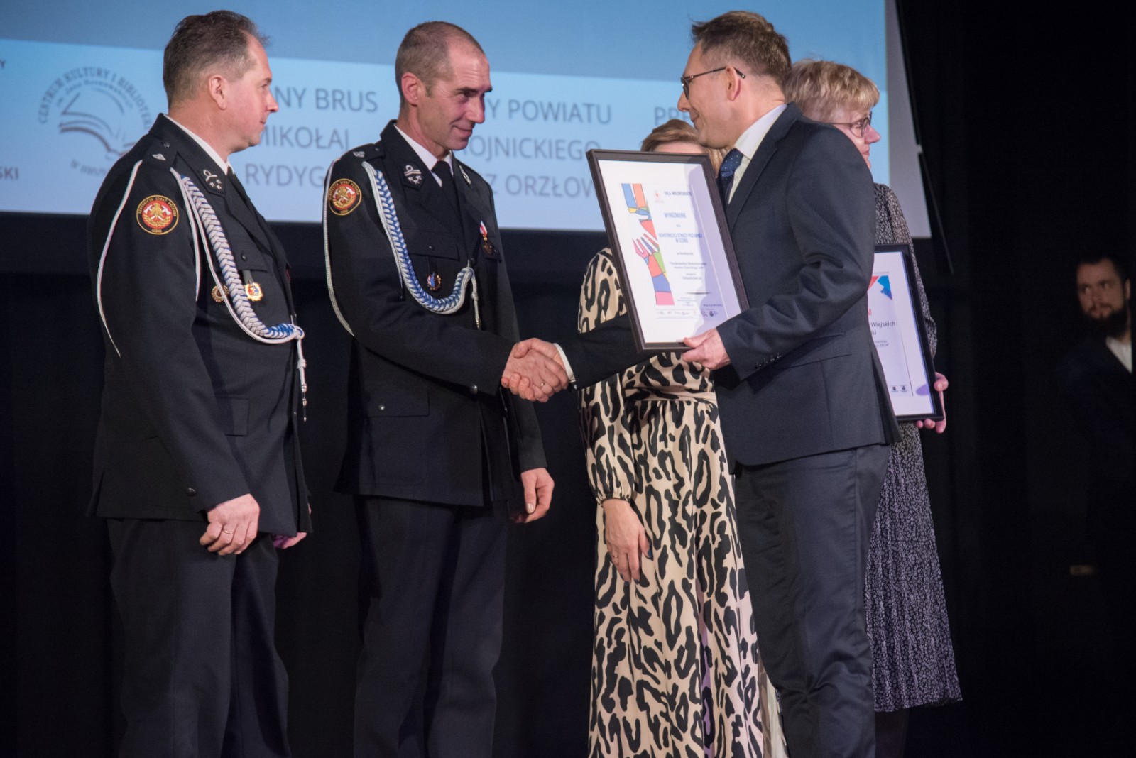 Gratulacje wyróżnionym działaczom wolontariatu złożyli: w imieniu burmistrza Brus Witolda Ossowskiego zastępca burmistrza Krzysztof Gierszewski, w imieniu starosty chojnickiego radny Powiatu Chojnickiego Tomasz Orzłowski, Ewa Kosiedowska, prezes Regionalnego Centrum Wolontariatu w Słupsku oddziału w Leśnie.