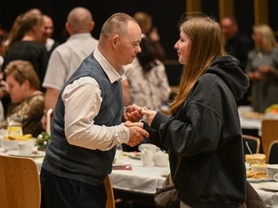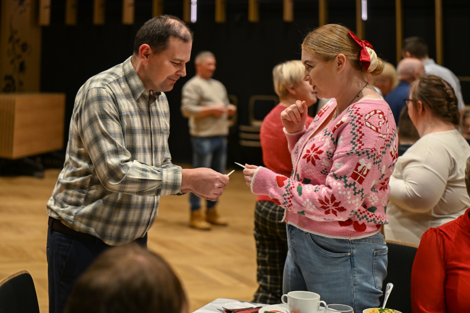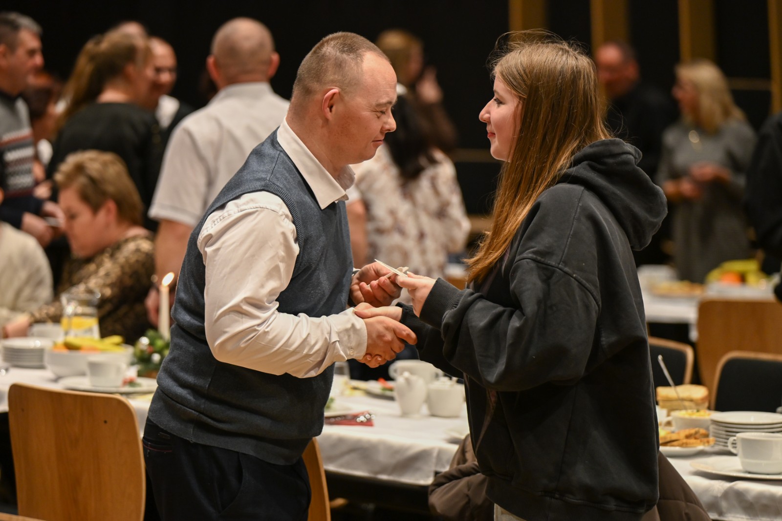 Podczas przedświątecznego spotkania uczestnicy Warsztatu Terapii Zajęciowej zaprezentowali wzruszający bożonarodzeniowy spektakl, który został nagrodzony gromkimi brawami. Nie zabrakło tradycyjnego dzielenia się opłatkiem, składania serdecznych życzeń oraz rozmów przy wspólnym stole. Burmistrz Brus Witold Ossowski złożył uczestnikom, ich rodzinom oraz kadrze WTZ życzenia zdrowia, spokoju i radości na nadchodzące Święta Bożego Narodzenia, podkreślając jednocześnie znaczenie wspólnoty, wzajemnego wsparcia oraz codziennej pracy na rzecz osób z niepełnosprawnościami. Spotkanie przebiegało w ciepłej, rodzinnej atmosferze.
