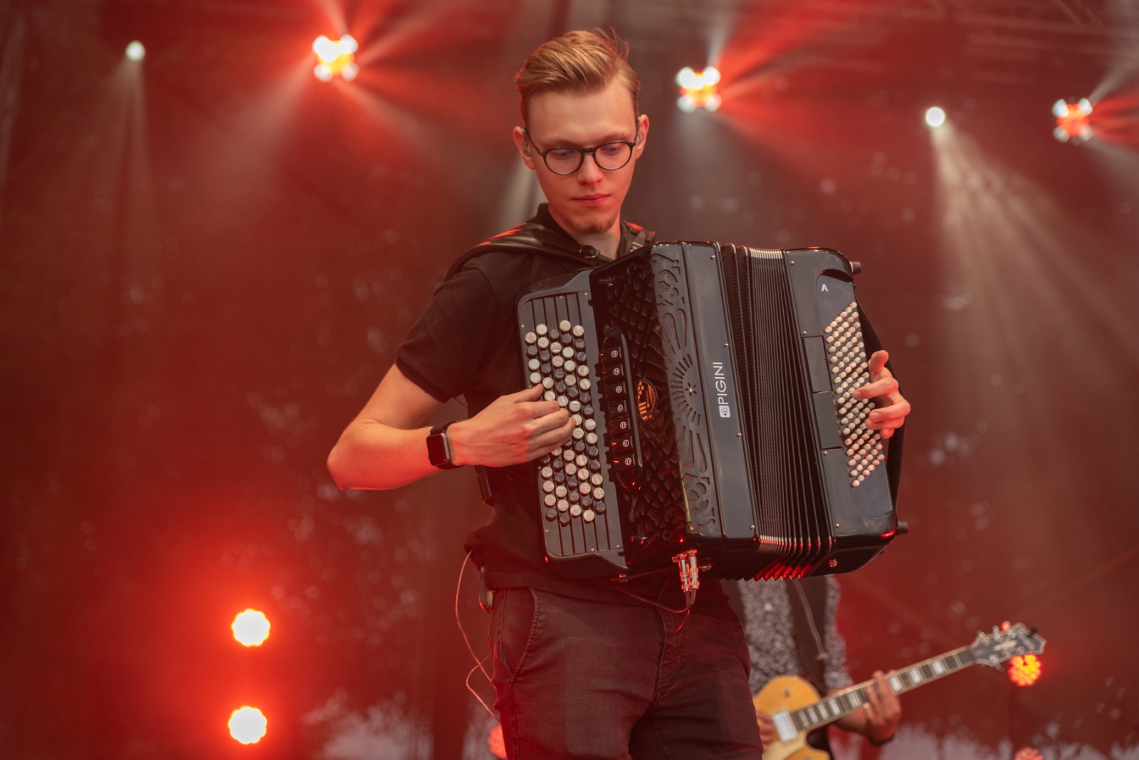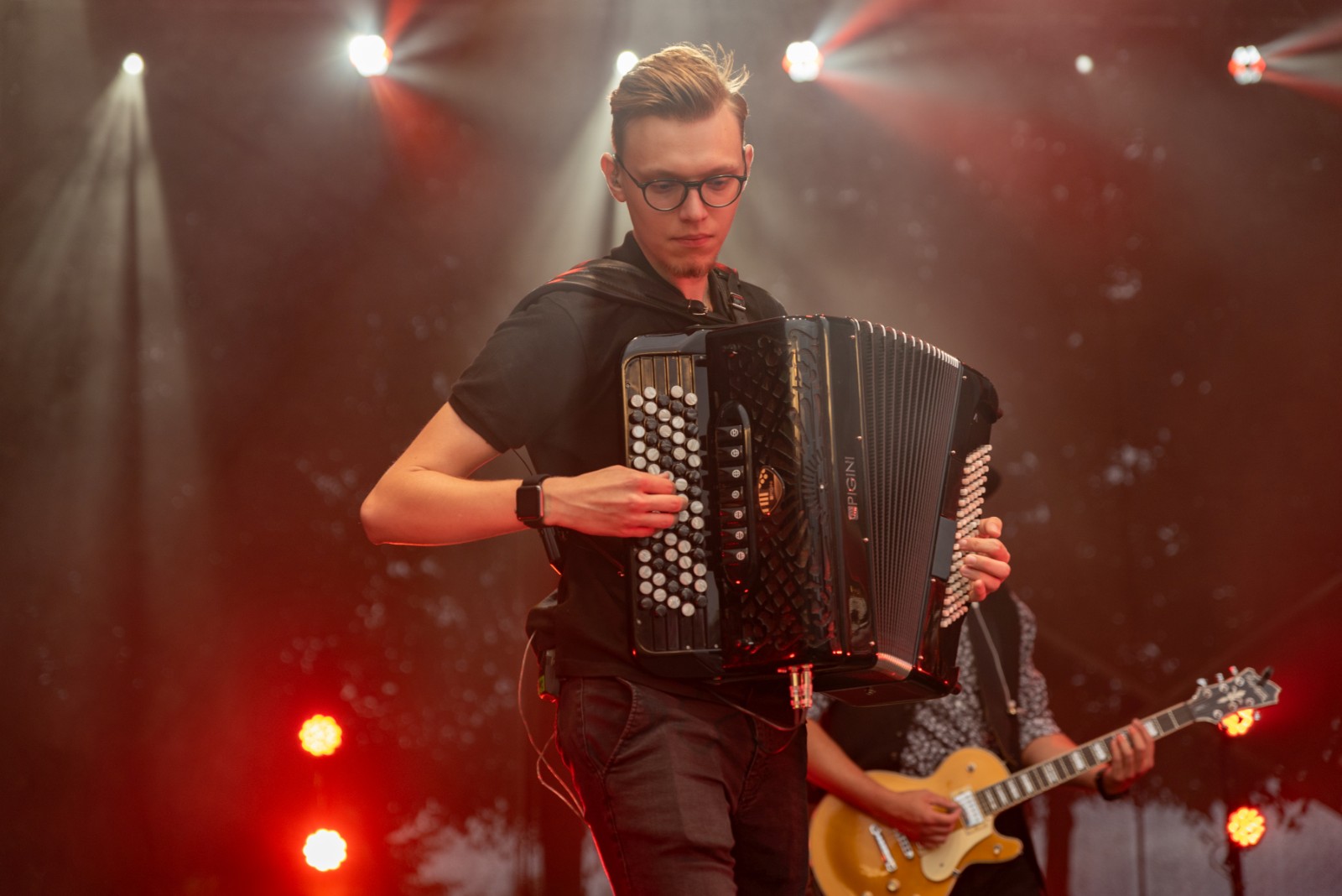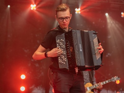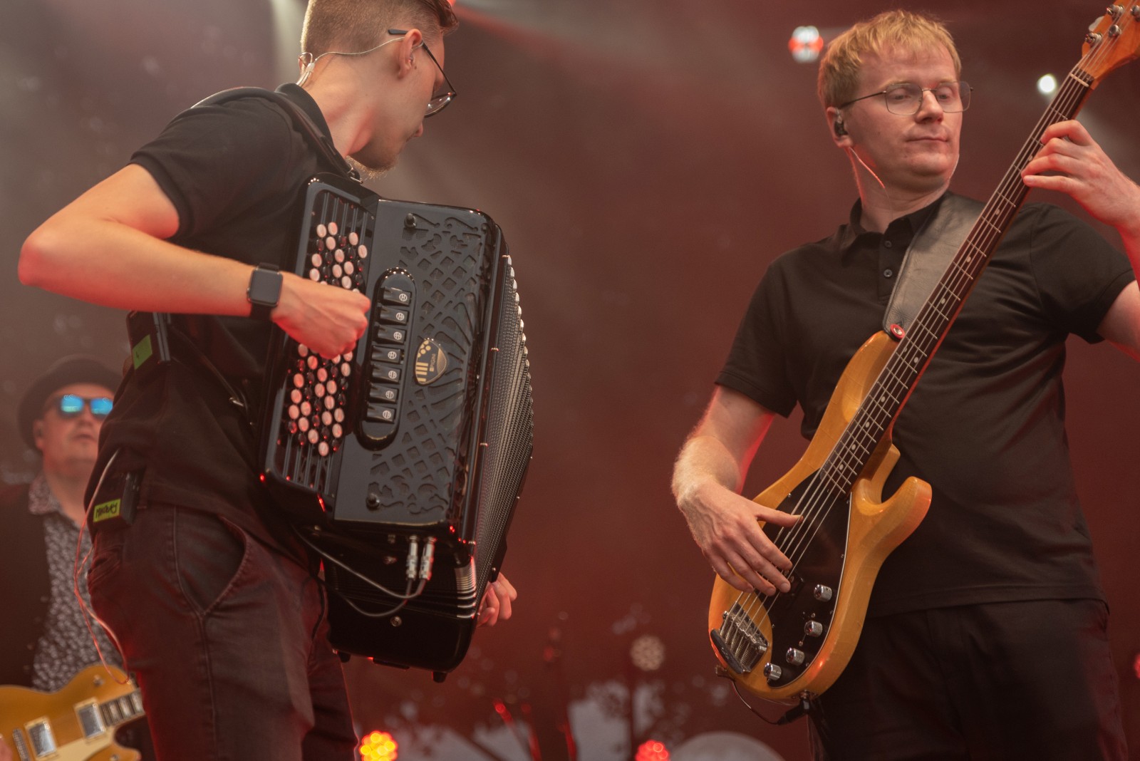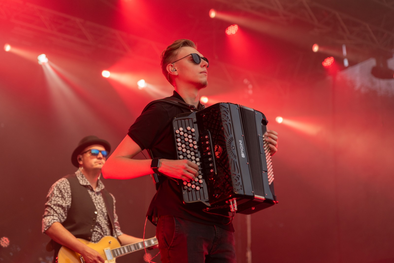 Na scenie pojawił się również Zespół Mitra – formacja znana z energetycznych występów, łączących rockowe brzmienie z folkową dzikością i wyjątkową sceniczną ekspresją.