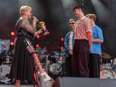 Na zakończenie koncertów artyści otrzymali pamiątkowe maskotki Gminy Brusy – Grzybki Bruski, które wręczyli dyrektor Centrum Kultury i Biblioteki im. Jana Karnowskiego - Anna Orlikowska, oraz burmistrz Brus - Witold Ossowski.