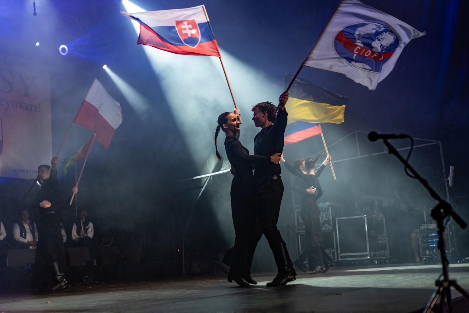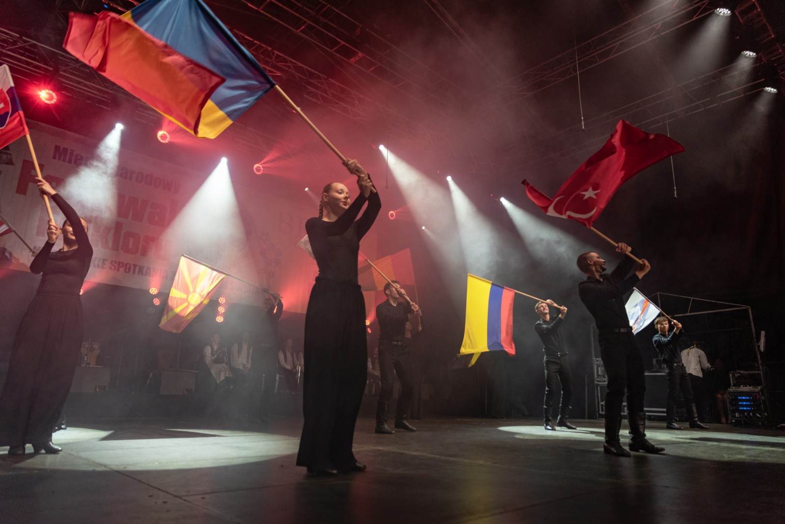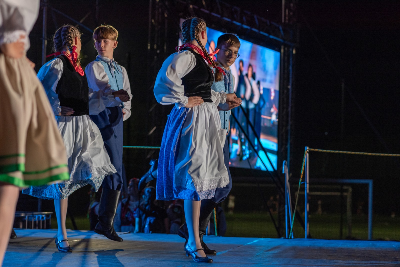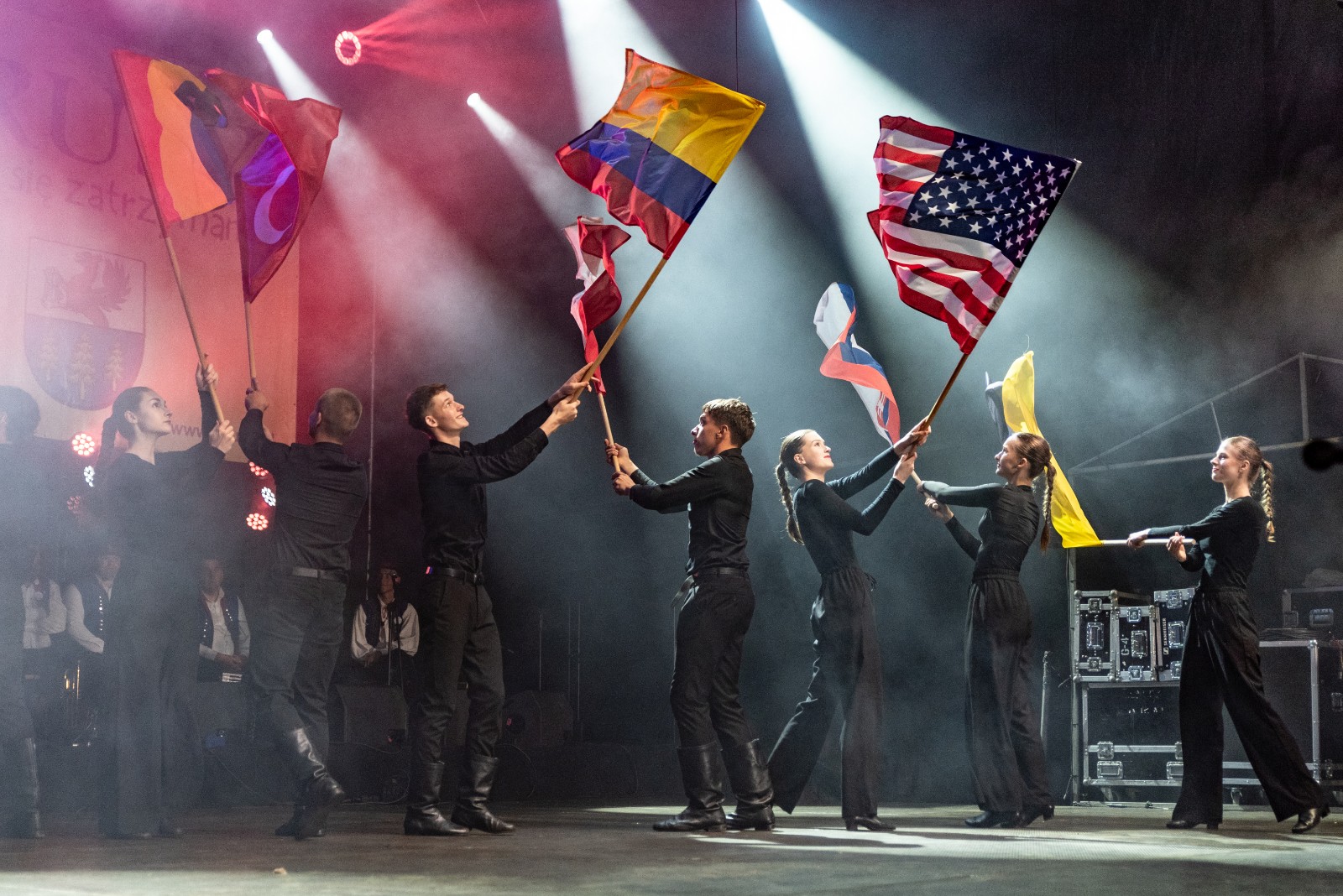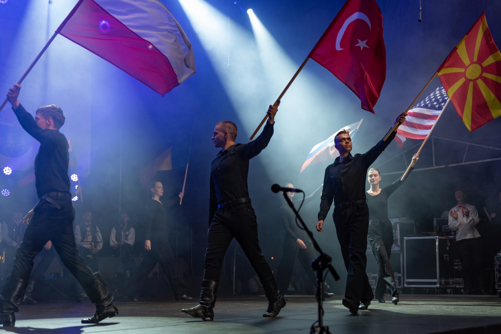 Nie zabrakło również tradycyjnego już tańca flagowego, przygotowanego przez Martę Dolną i Dawida Kiedrowicza, z udziałem tancerzy zespołu „Krëbane”. Barwne flagi, unoszące się nad sceną stały się pięknym symbolem przyjaźni i szacunku między narodami.