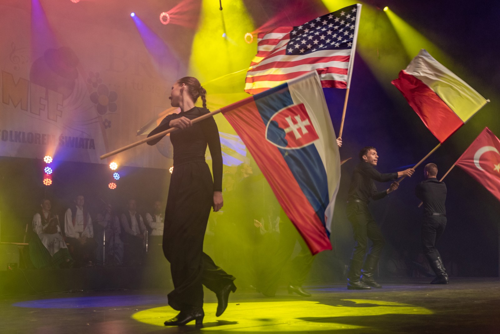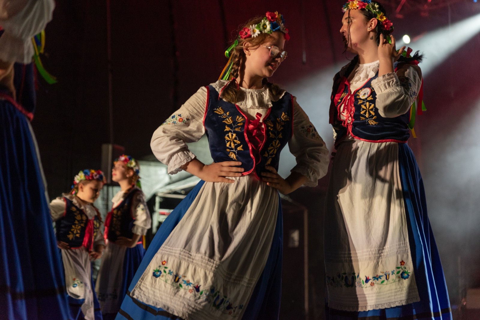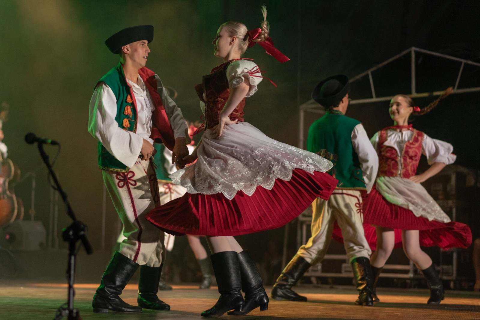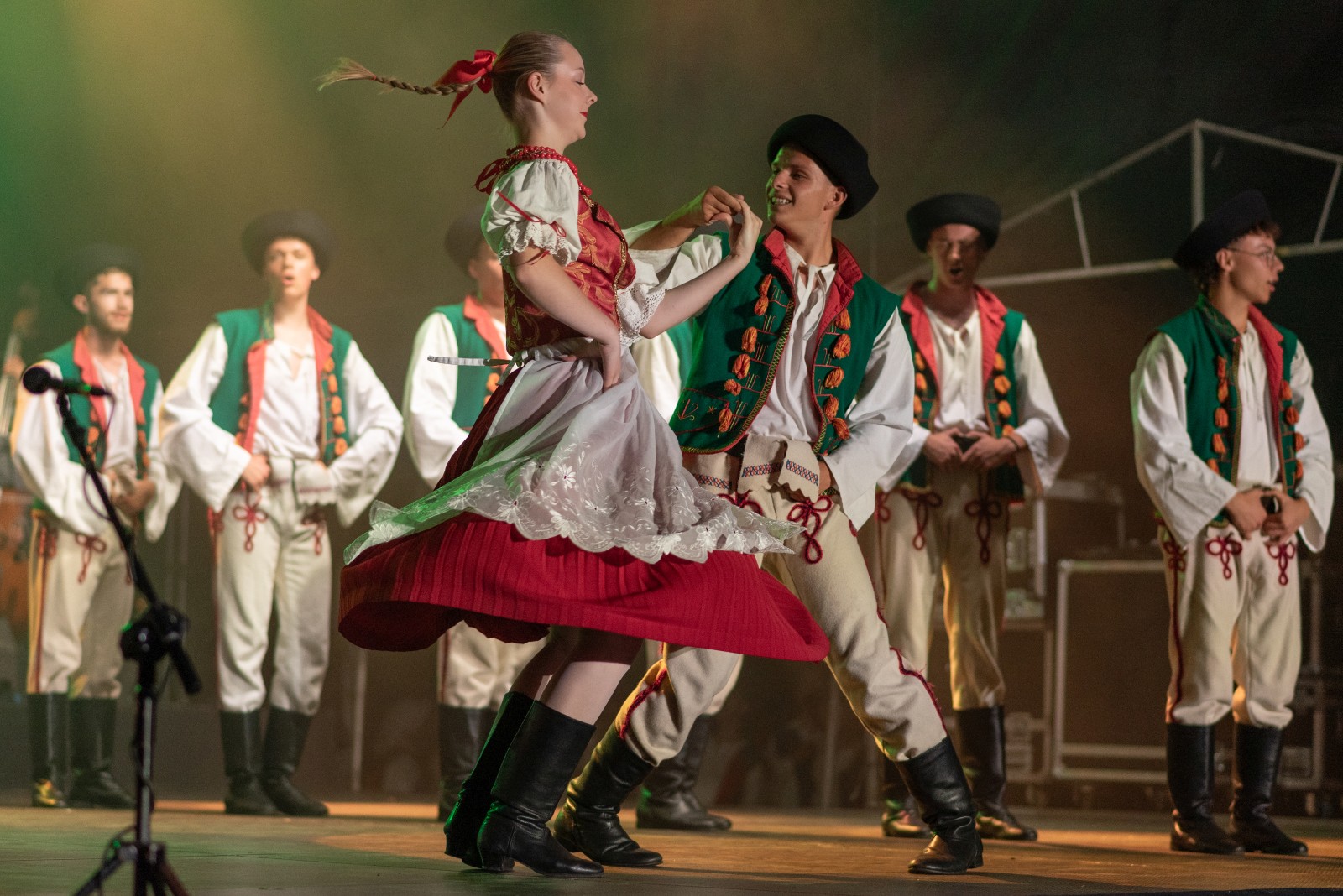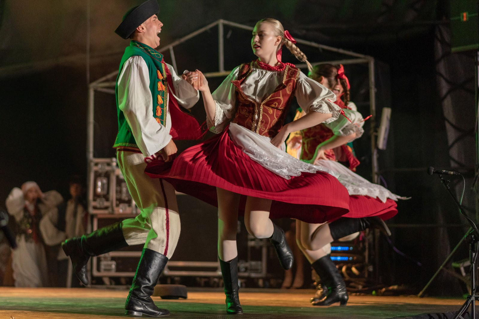 Nie zabrakło również tradycyjnego już tańca flagowego, przygotowanego przez Martę Dolną i Dawida Kiedrowicza, z udziałem tancerzy zespołu „Krëbane”. Barwne flagi, unoszące się nad sceną stały się pięknym symbolem przyjaźni i szacunku między narodami.