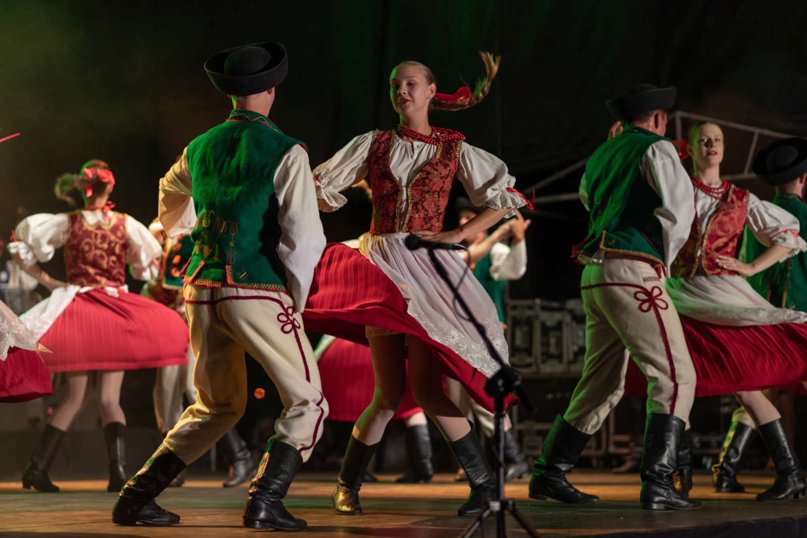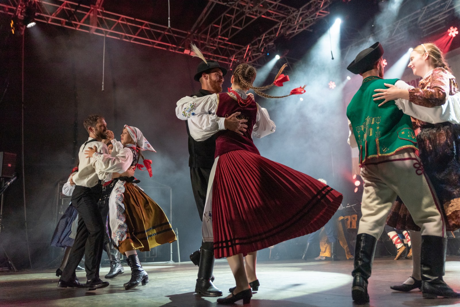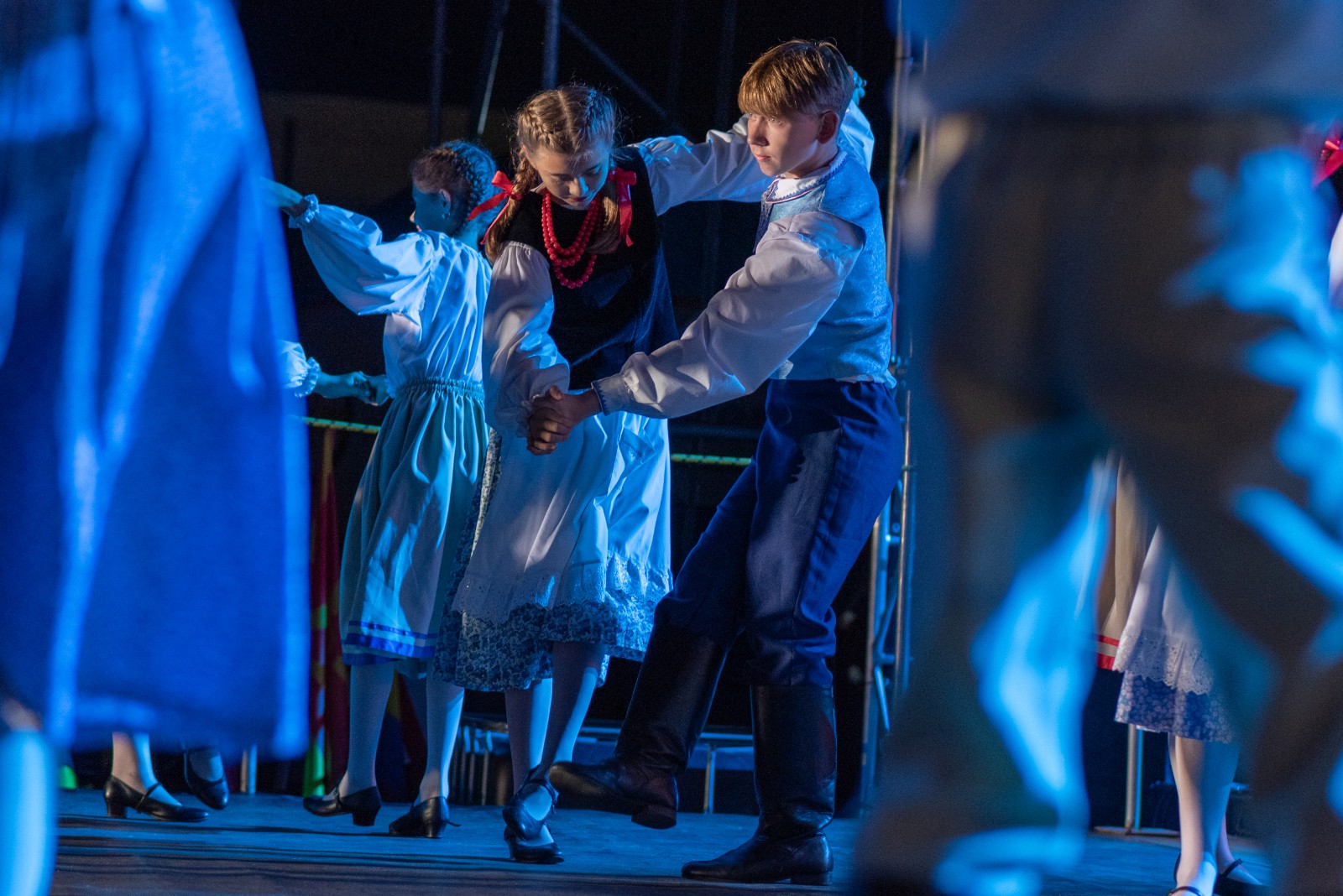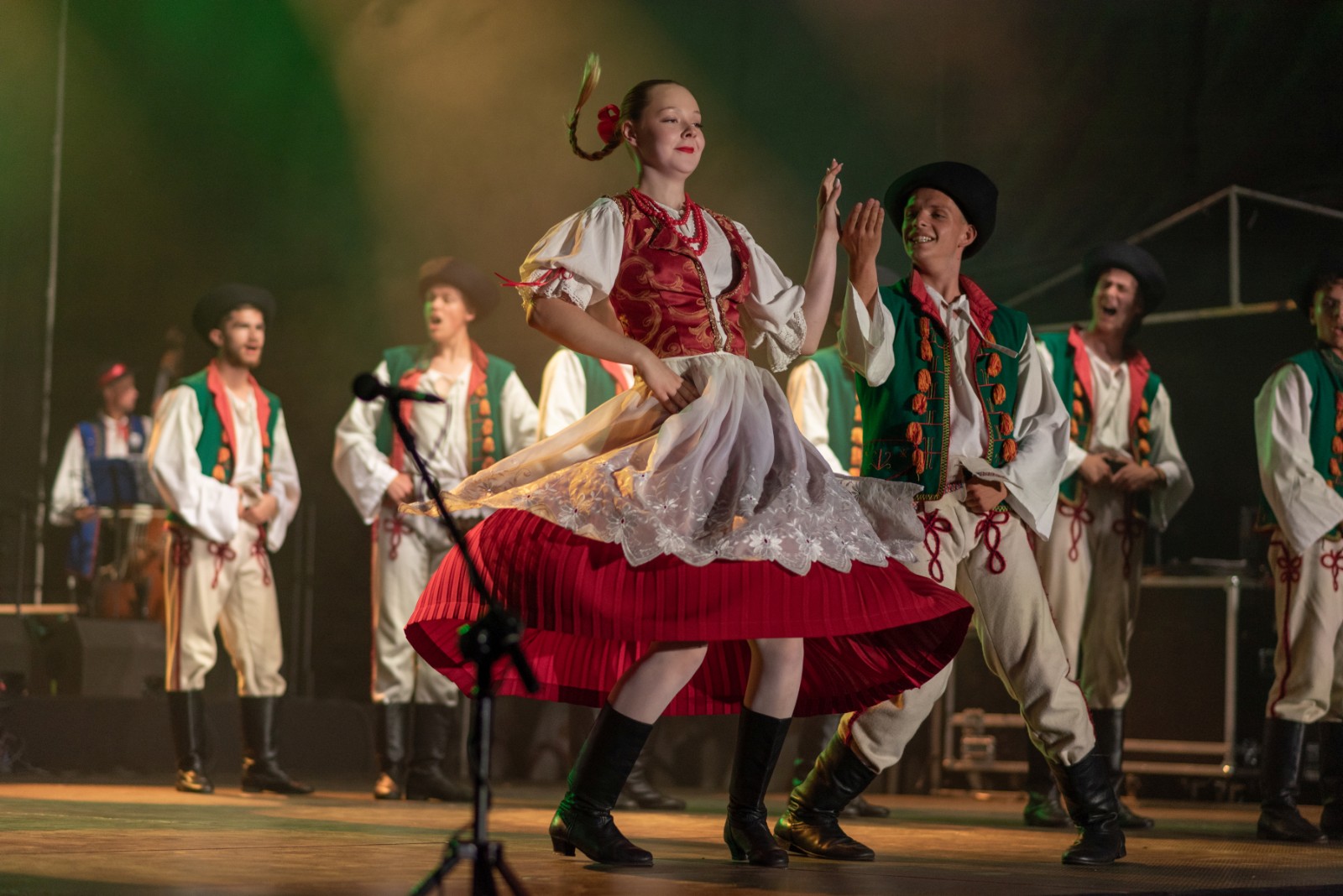 Nie zabrakło również tradycyjnego już tańca flagowego, przygotowanego przez Martę Dolną i Dawida Kiedrowicza, z udziałem tancerzy zespołu „Krëbane”. Barwne flagi, unoszące się nad sceną stały się pięknym symbolem przyjaźni i szacunku między narodami.
