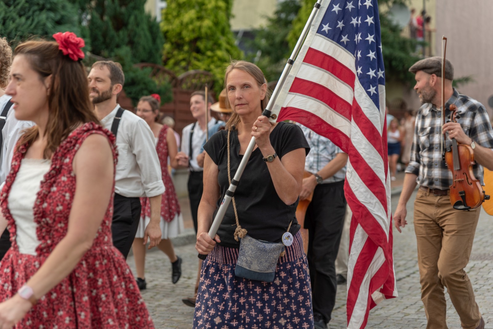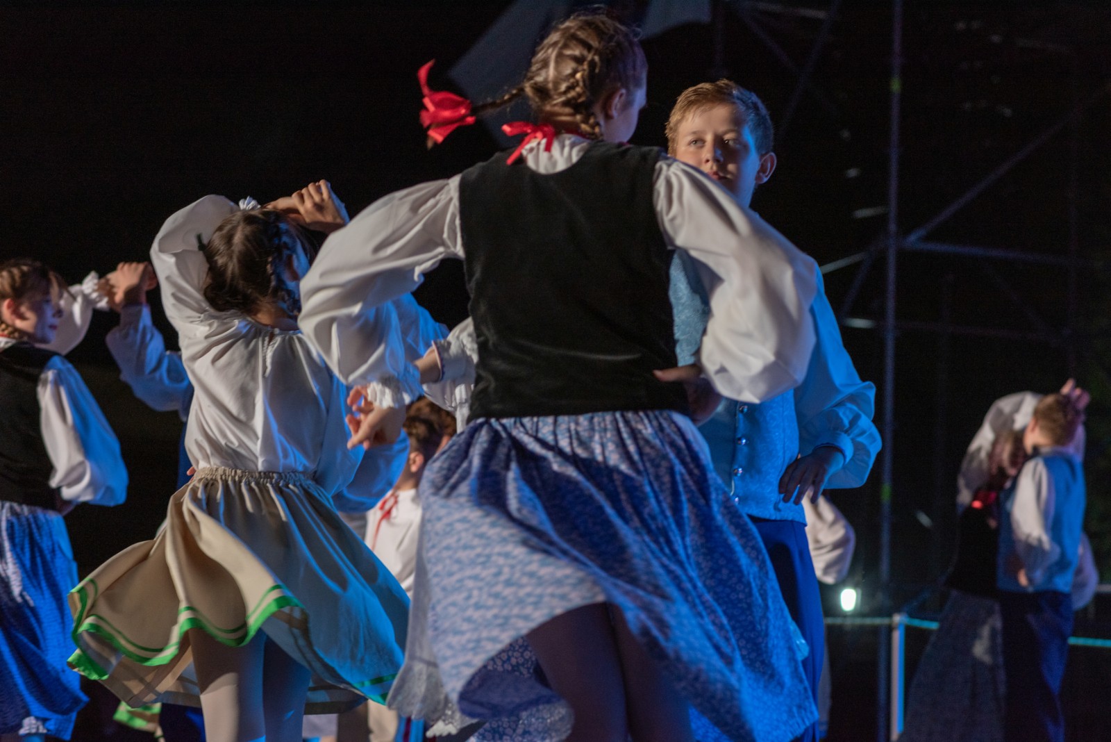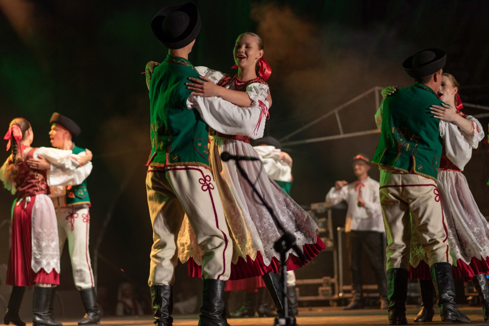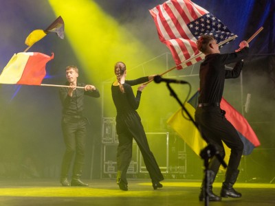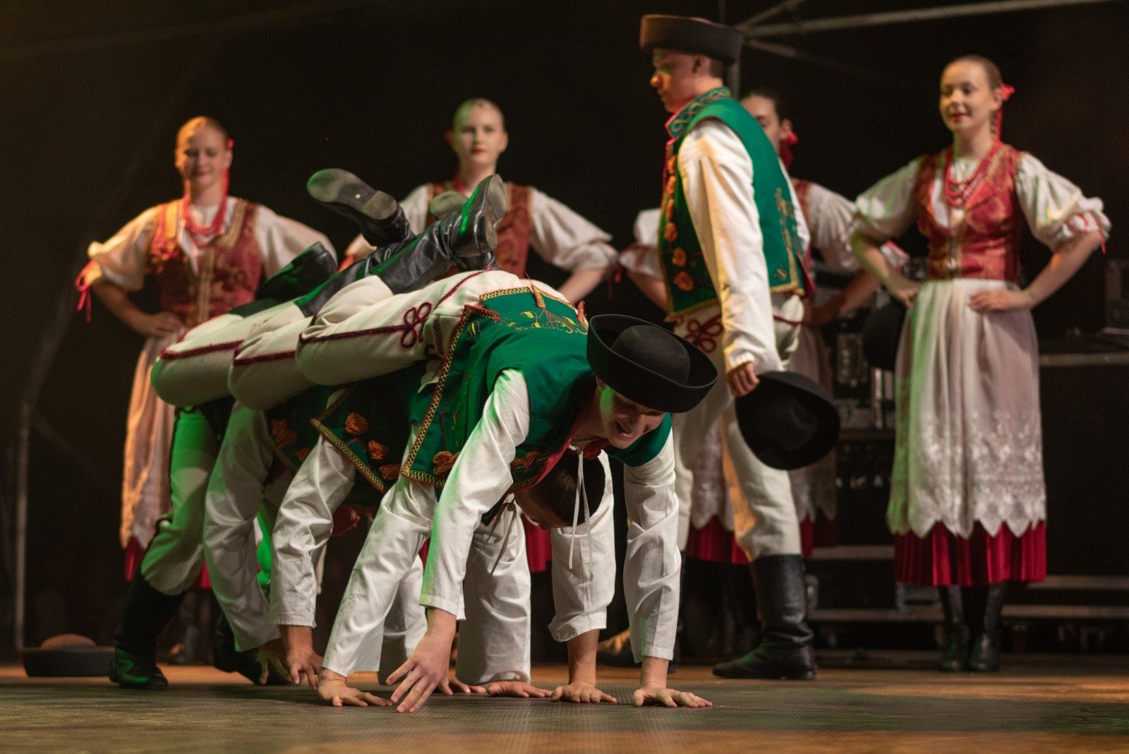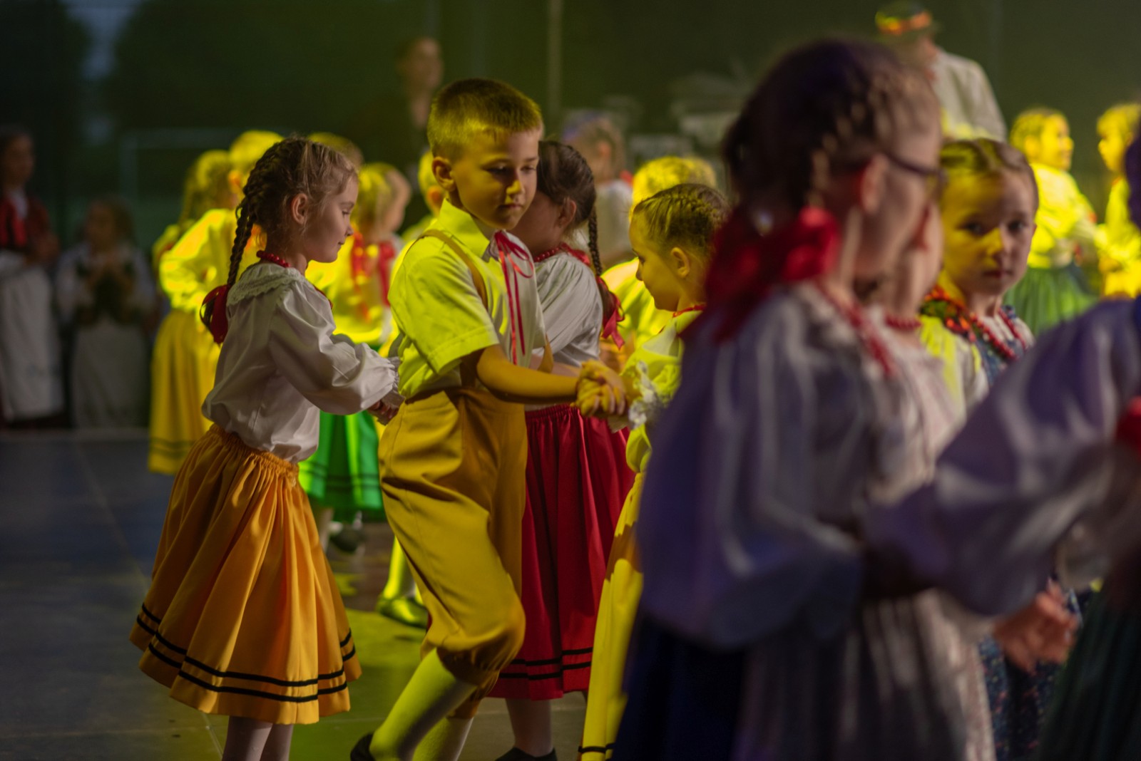 Nie zabrakło również tradycyjnego już tańca flagowego, przygotowanego przez Martę Dolną i Dawida Kiedrowicza, z udziałem tancerzy zespołu „Krëbane”. Barwne flagi, unoszące się nad sceną stały się pięknym symbolem przyjaźni i szacunku między narodami.