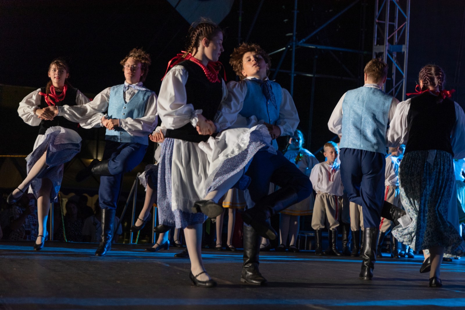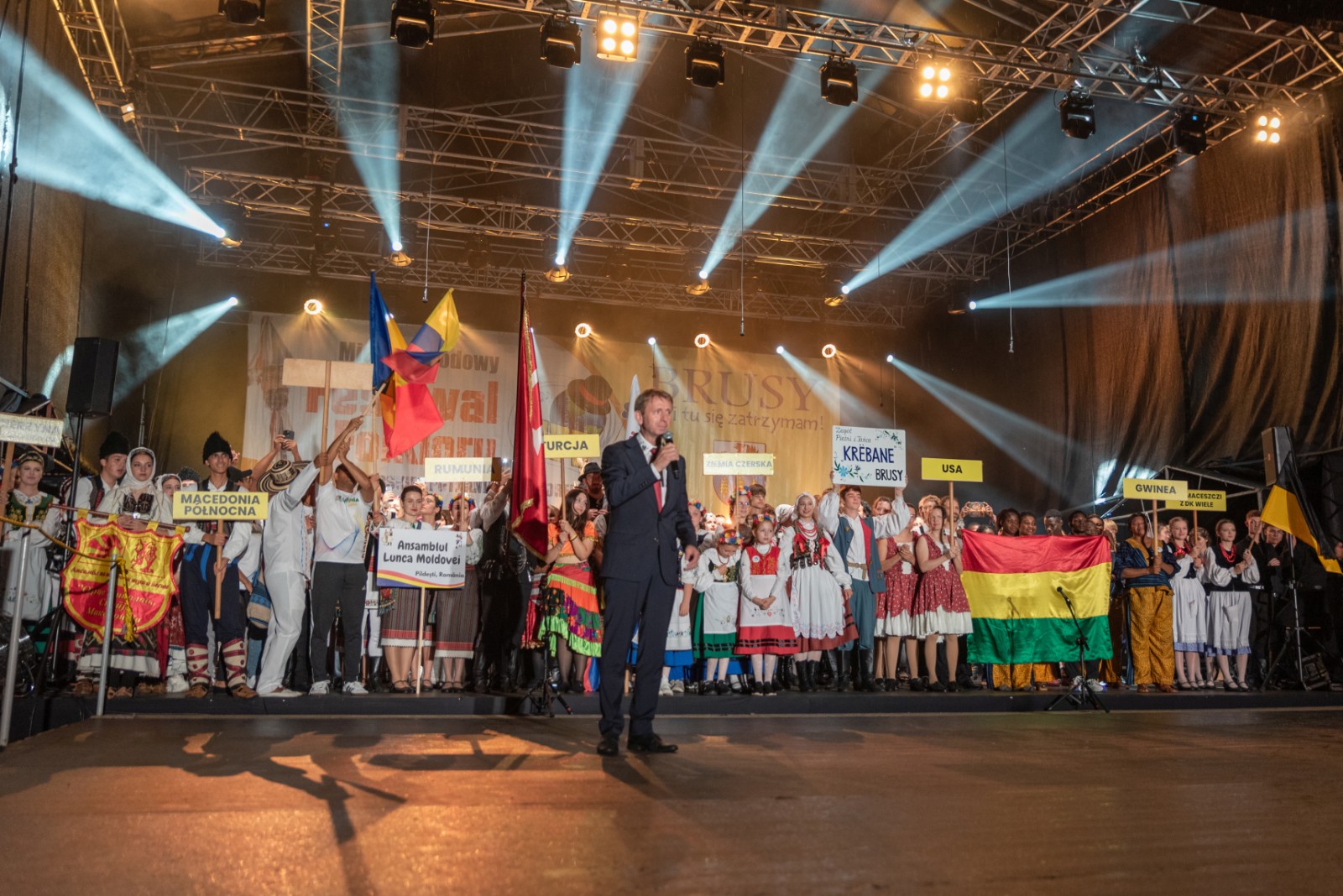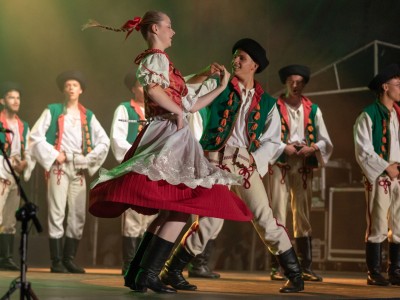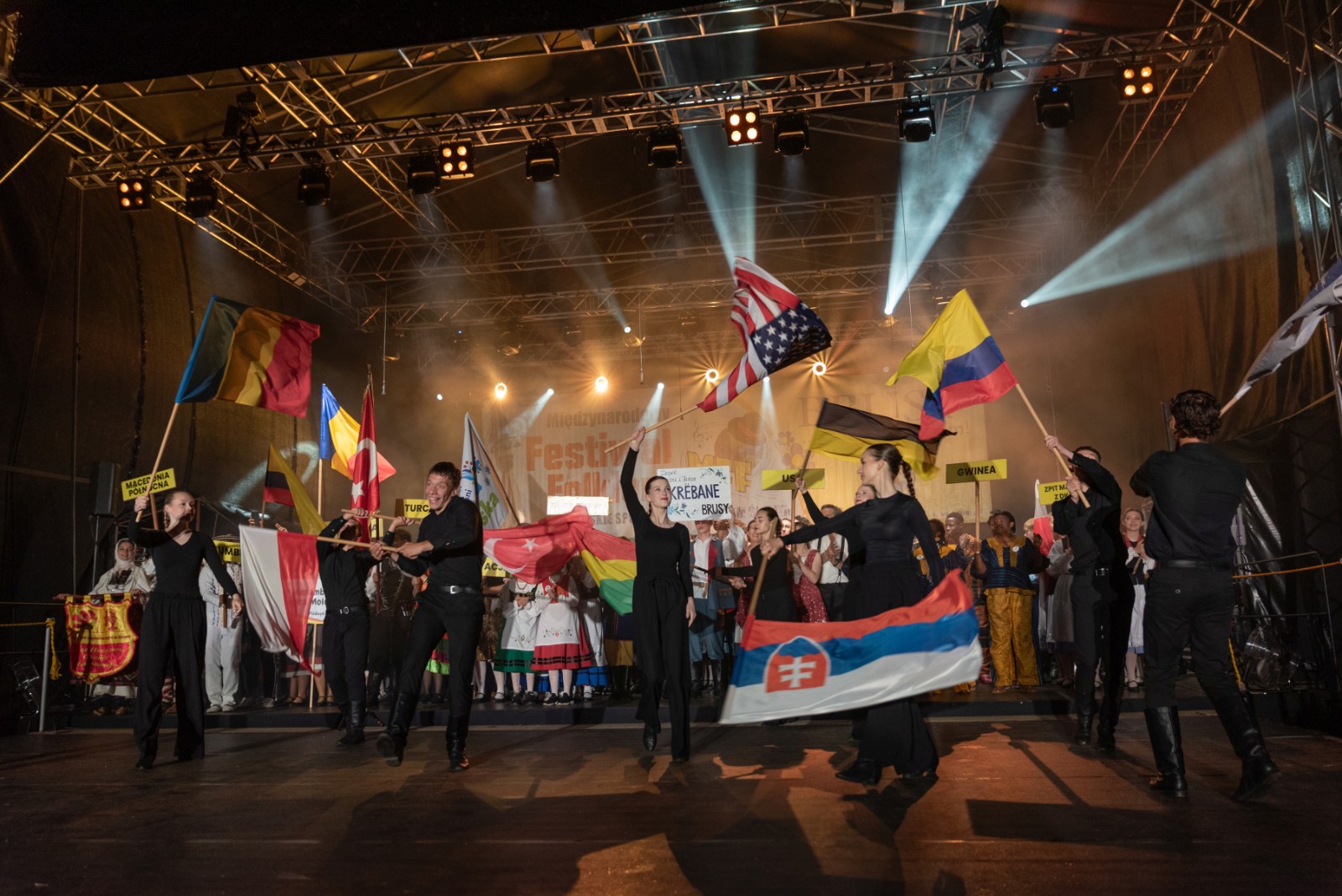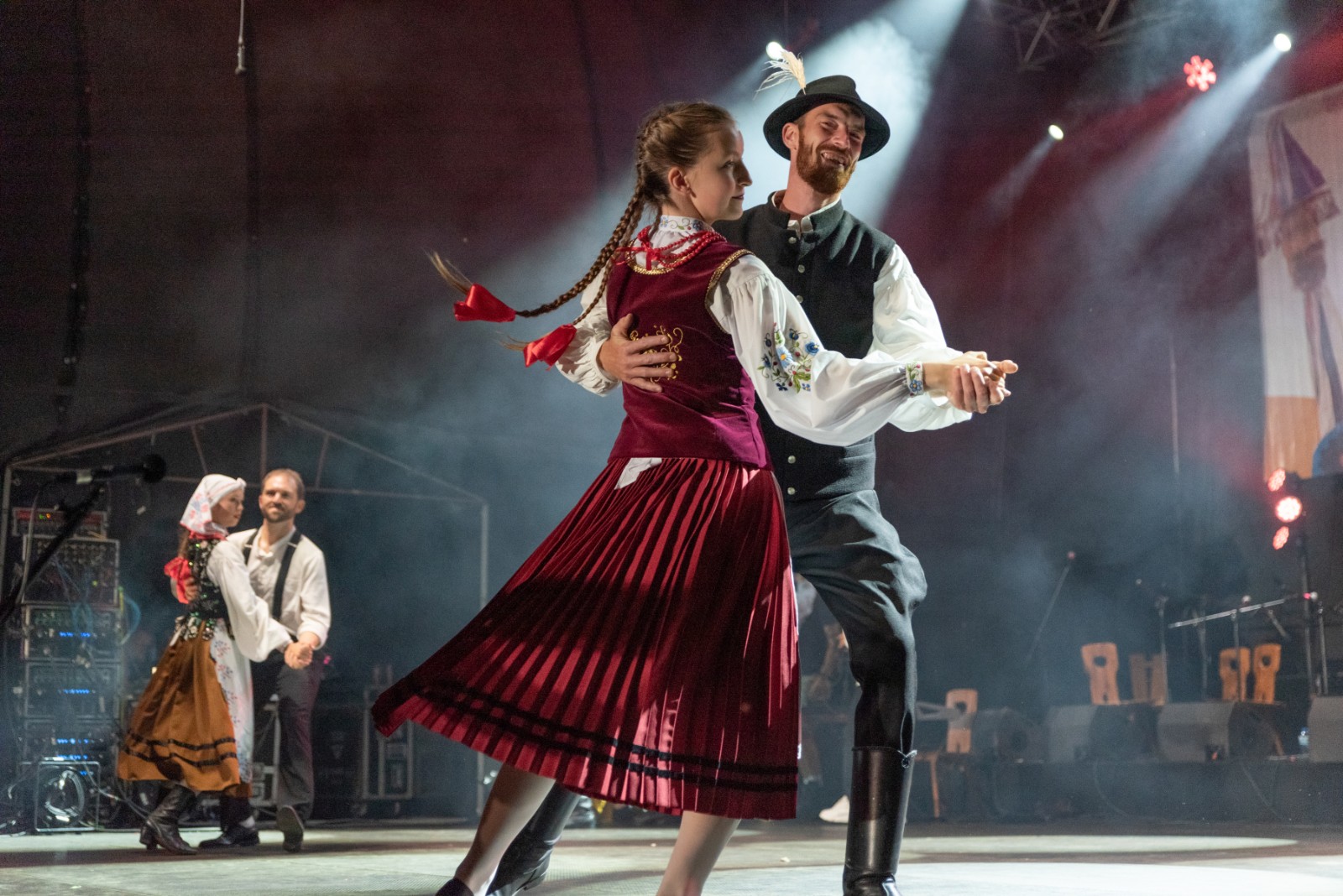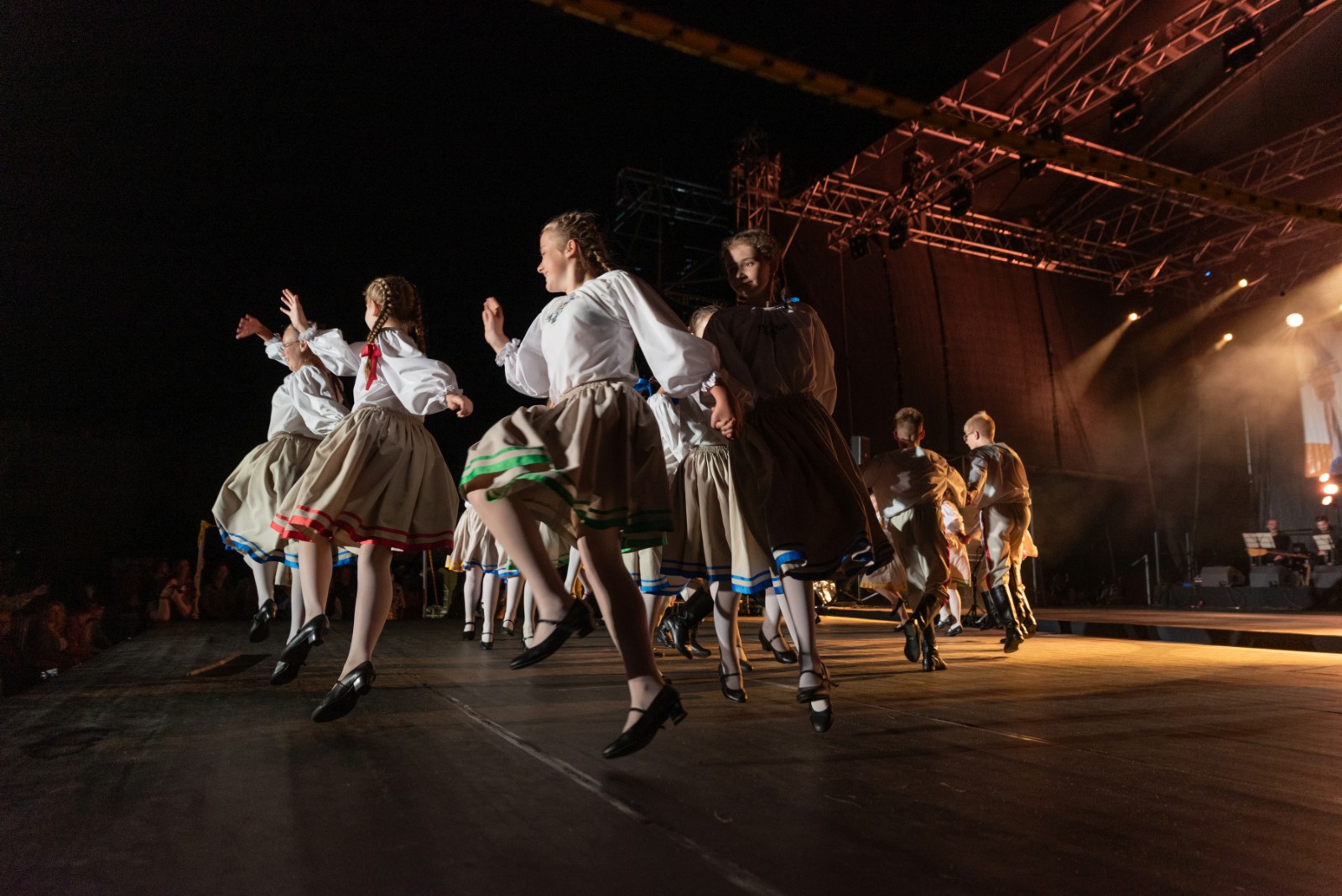 Nie zabrakło również tradycyjnego już tańca flagowego, przygotowanego przez Martę Dolną i Dawida Kiedrowicza, z udziałem tancerzy zespołu „Krëbane”. Barwne flagi, unoszące się nad sceną stały się pięknym symbolem przyjaźni i szacunku między narodami.