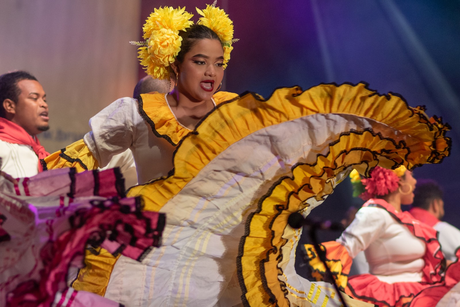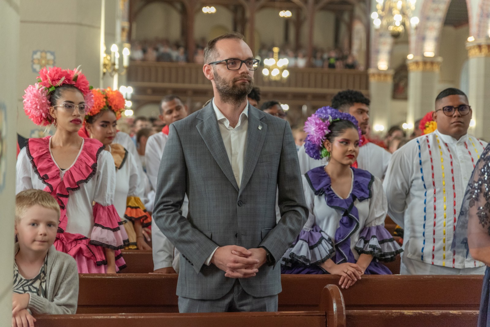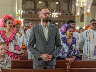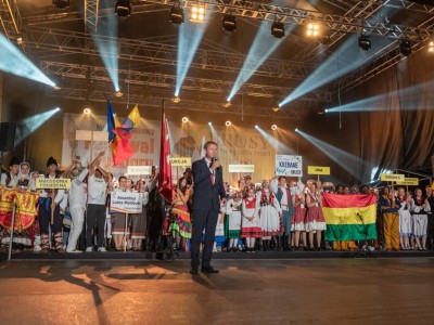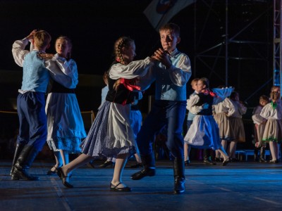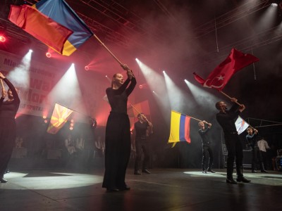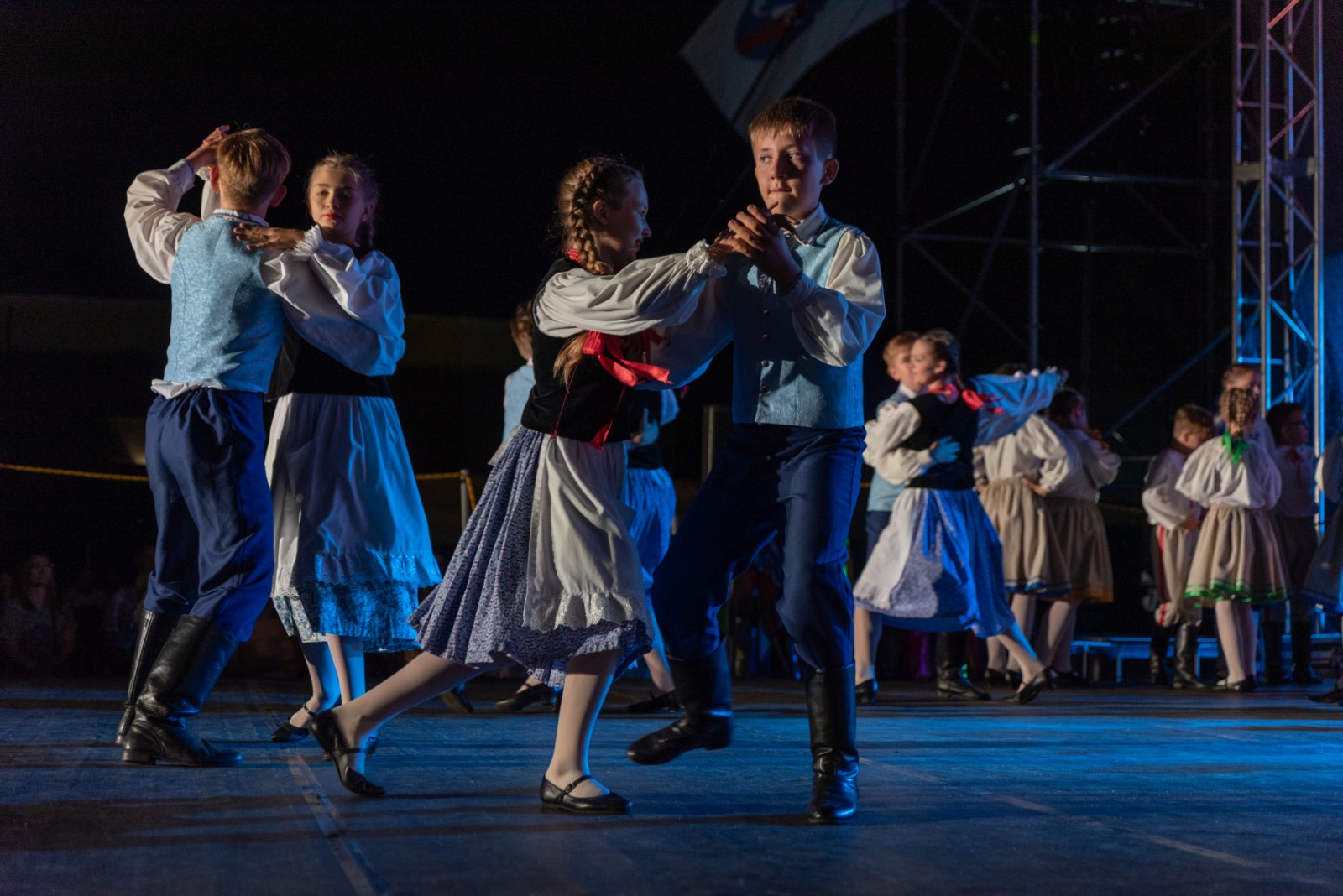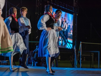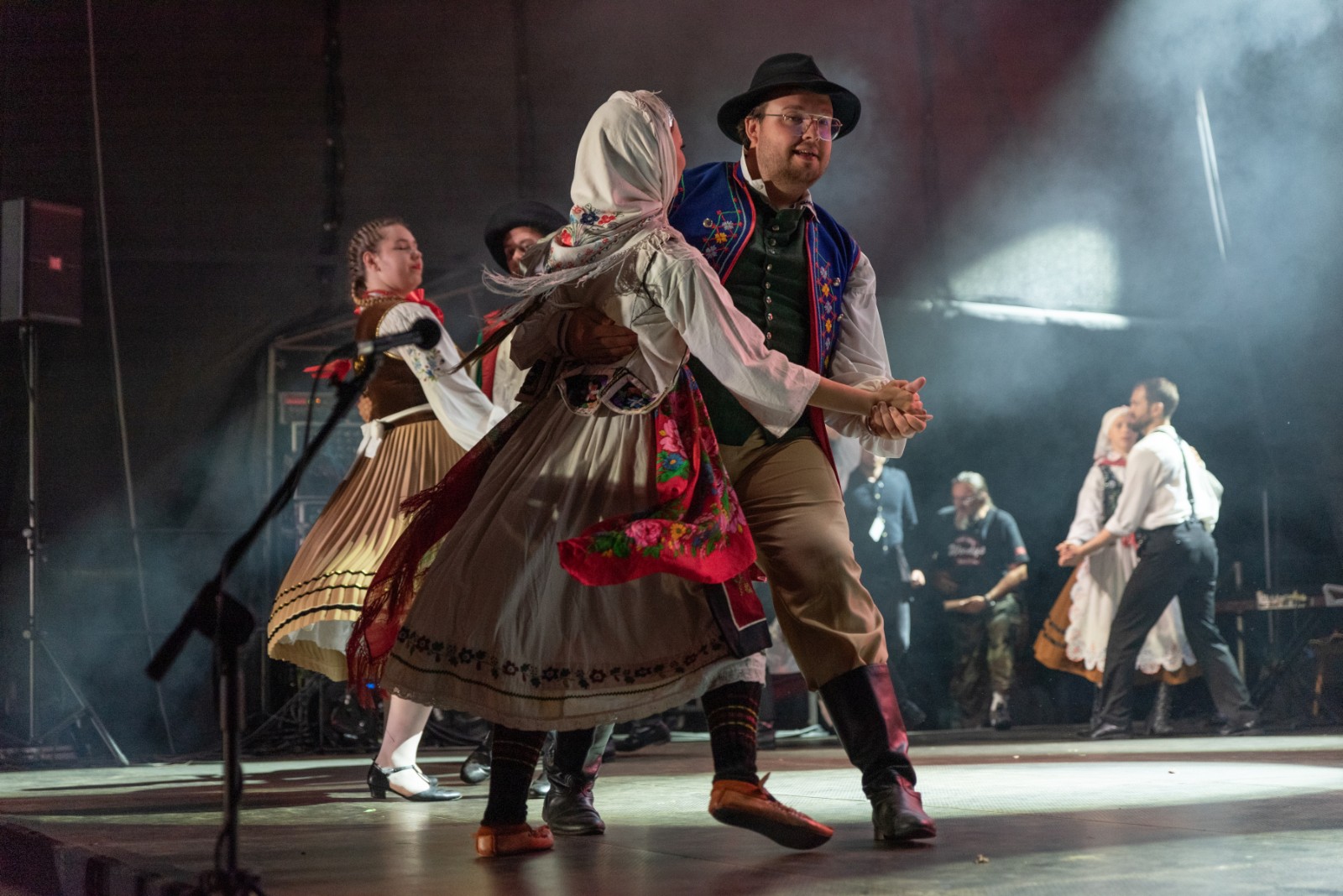 Nie zabrakło również tradycyjnego już tańca flagowego, przygotowanego przez Martę Dolną i Dawida Kiedrowicza, z udziałem tancerzy zespołu „Krëbane”. Barwne flagi, unoszące się nad sceną stały się pięknym symbolem przyjaźni i szacunku między narodami.