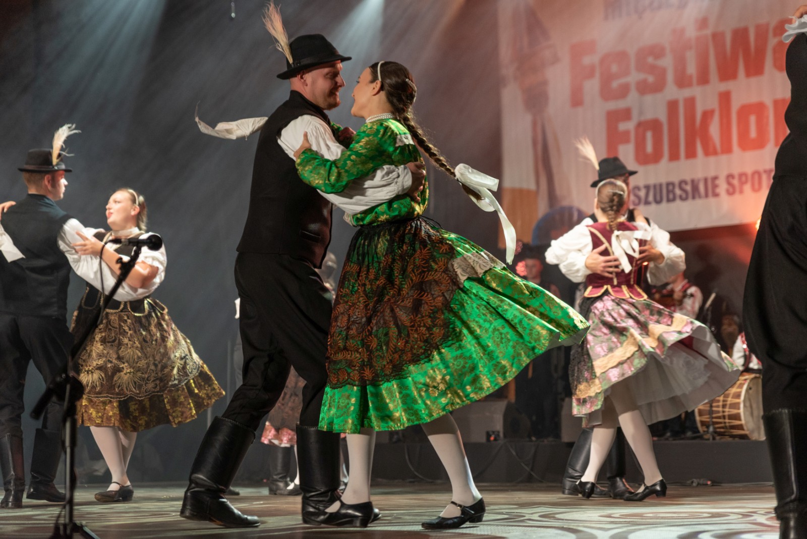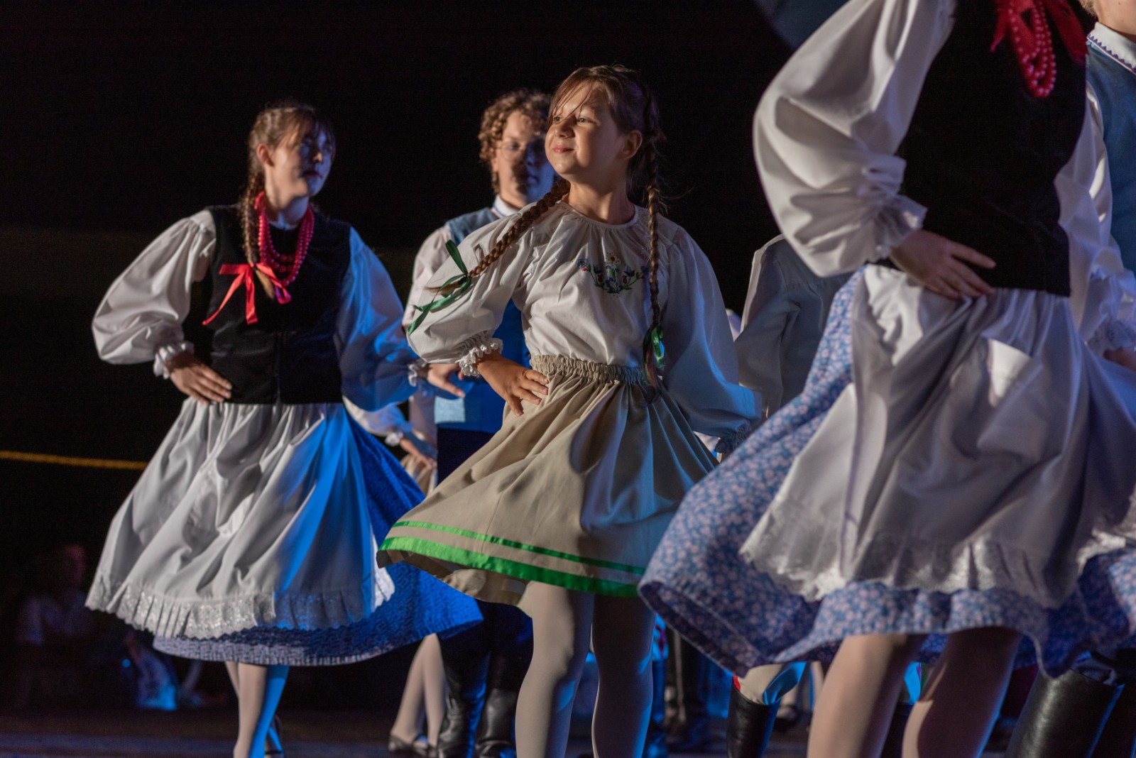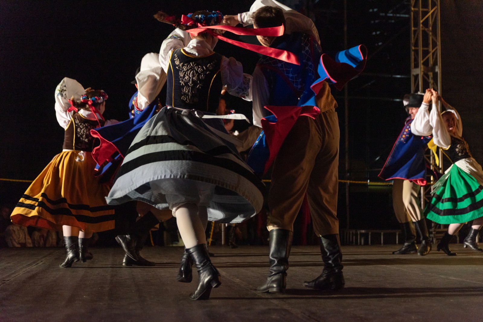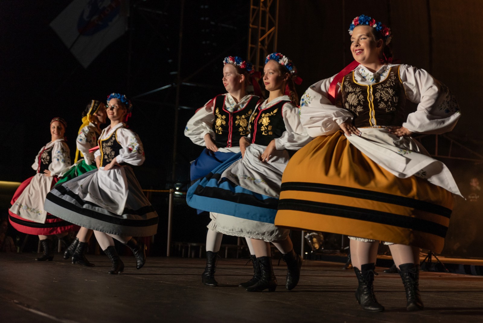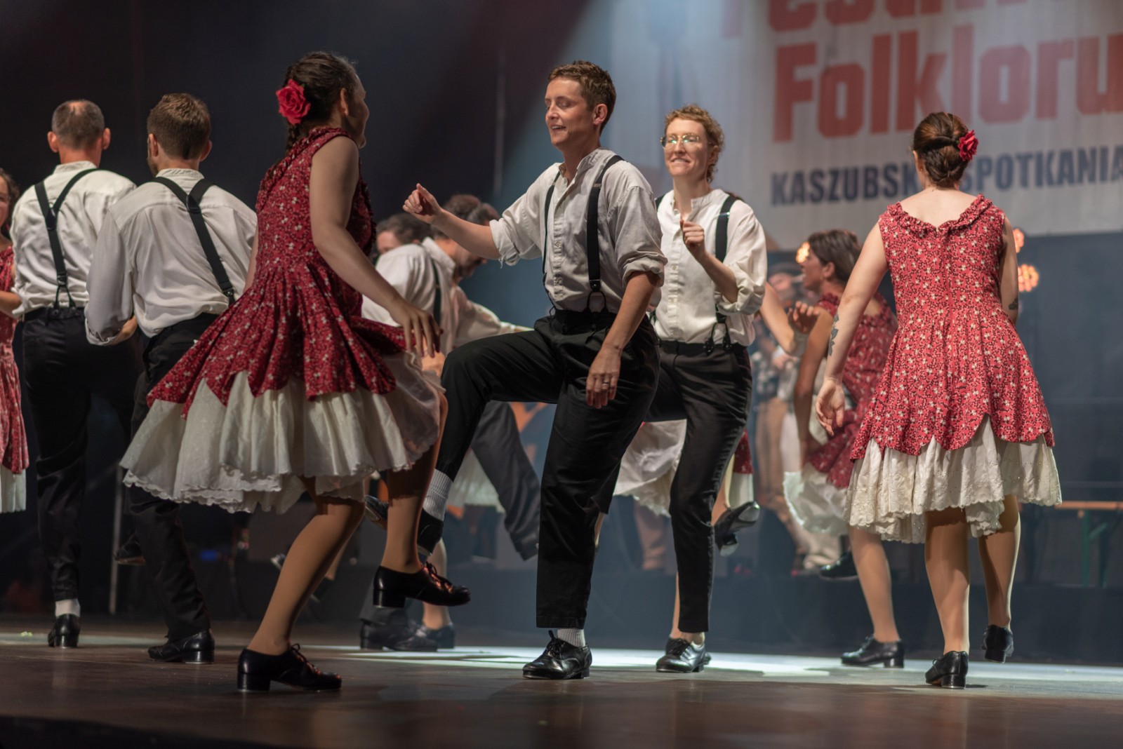 Jednym z wyjątkowych momentów wieczoru było wspólne wykonanie kaszubskiego tańca „Ceporz”, przygotowanego choreograficznie przez Katarzynę Kamrowską. Na scenie spotkali się tancerze z różnych stron świata, tworząc symboliczny obraz jedności i otwartości, jaka towarzyszyła całemu festiwalowi.