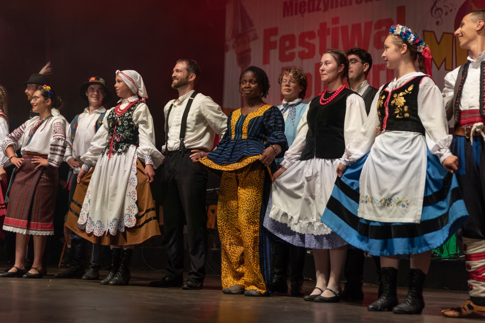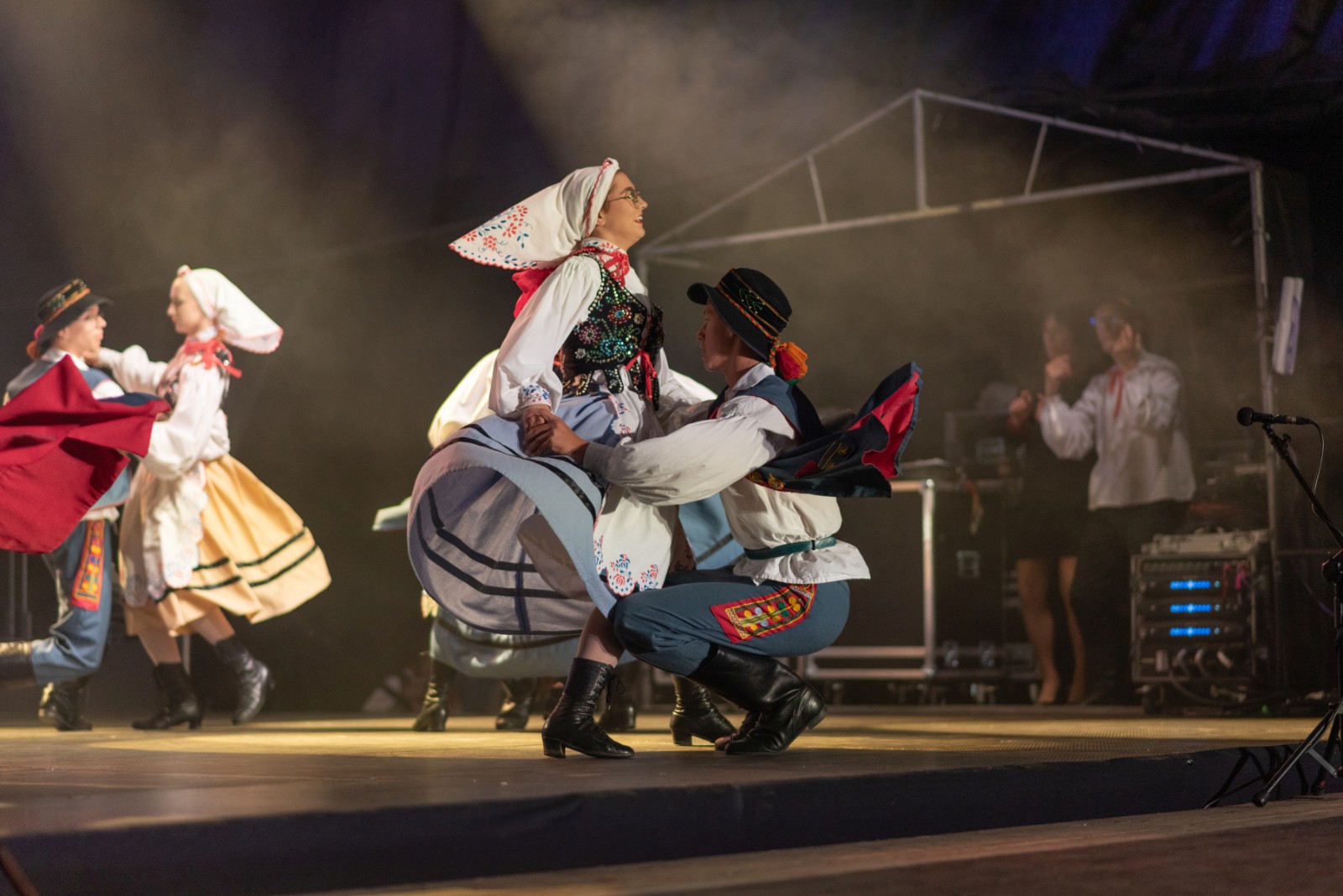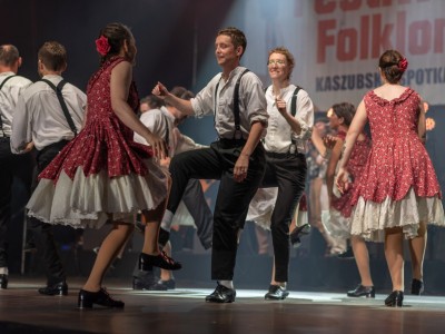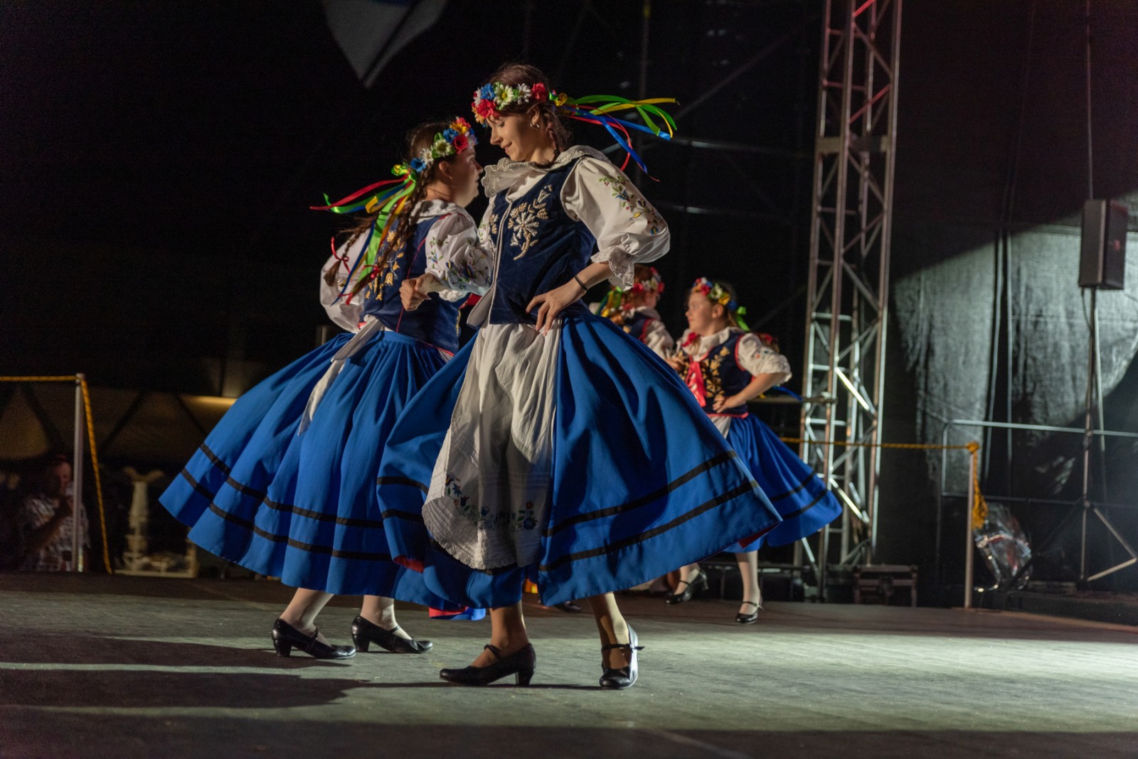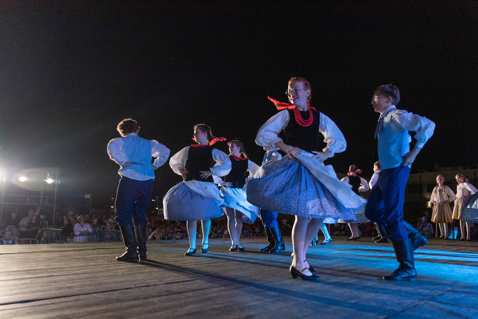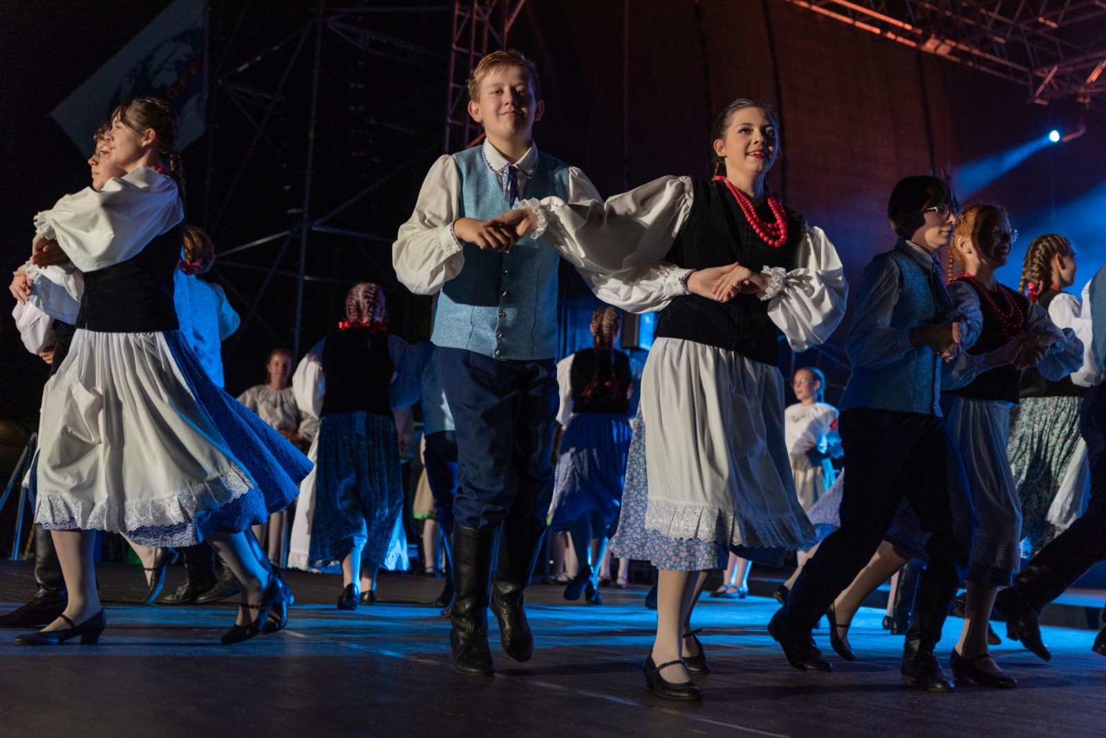 Jednym z wyjątkowych momentów wieczoru było wspólne wykonanie kaszubskiego tańca „Ceporz”, przygotowanego choreograficznie przez Katarzynę Kamrowską. Na scenie spotkali się tancerze z różnych stron świata, tworząc symboliczny obraz jedności i otwartości, jaka towarzyszyła całemu festiwalowi.