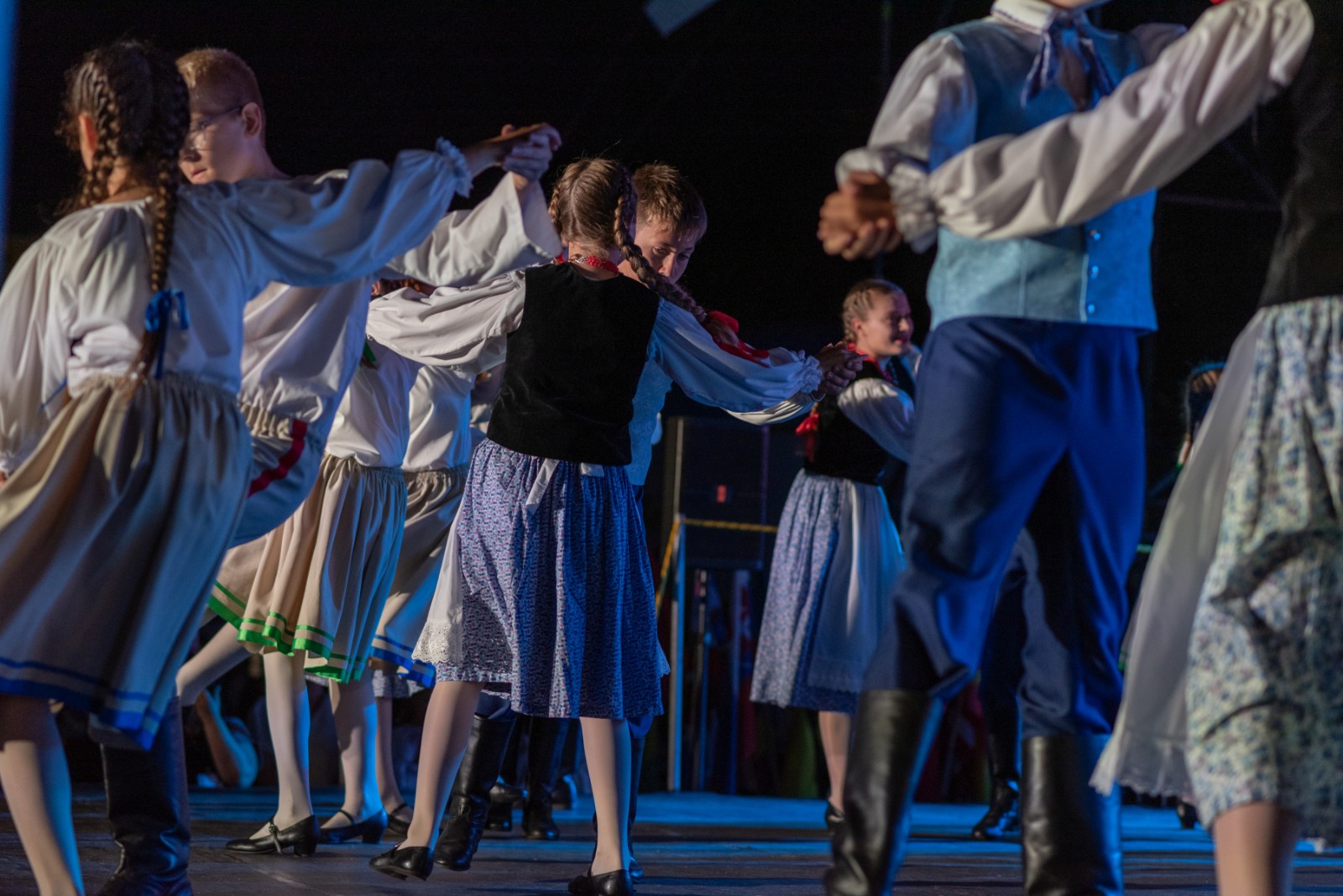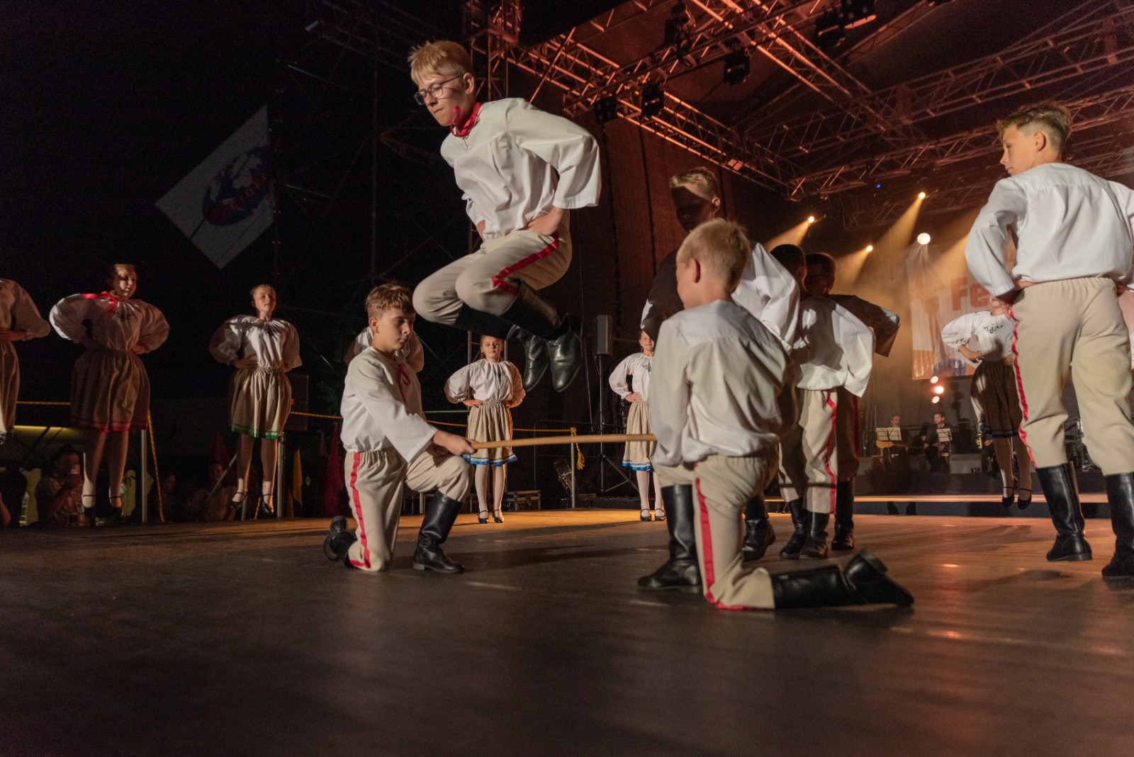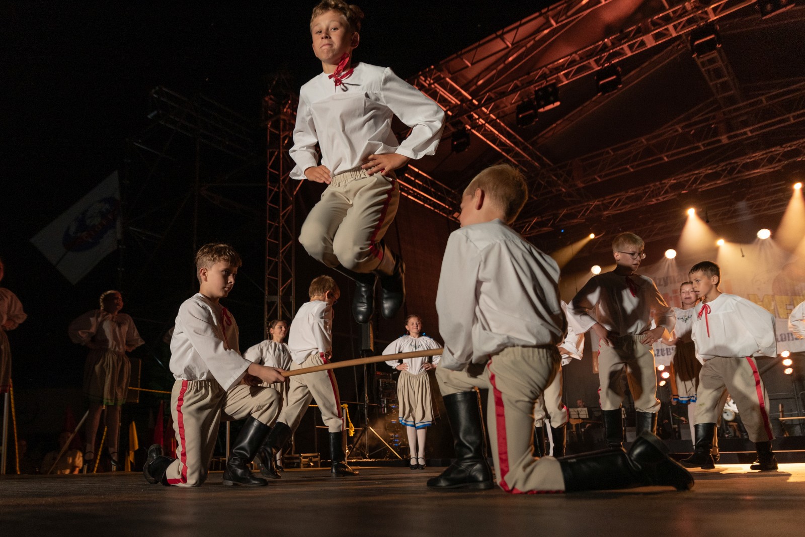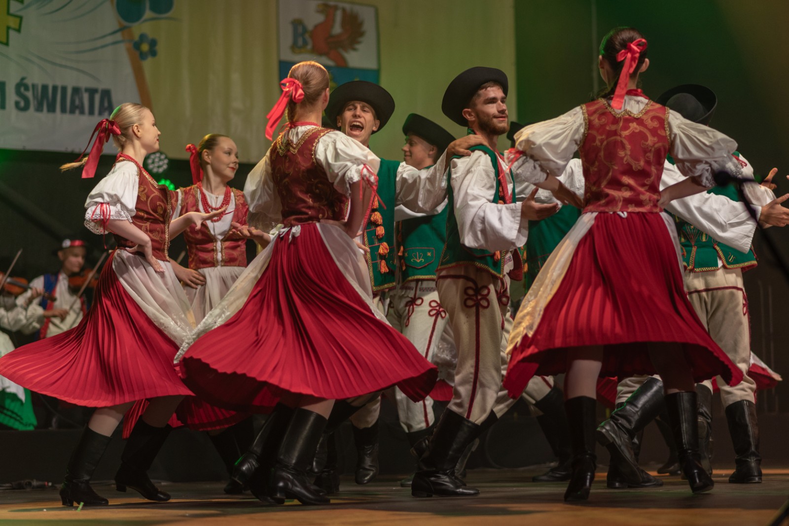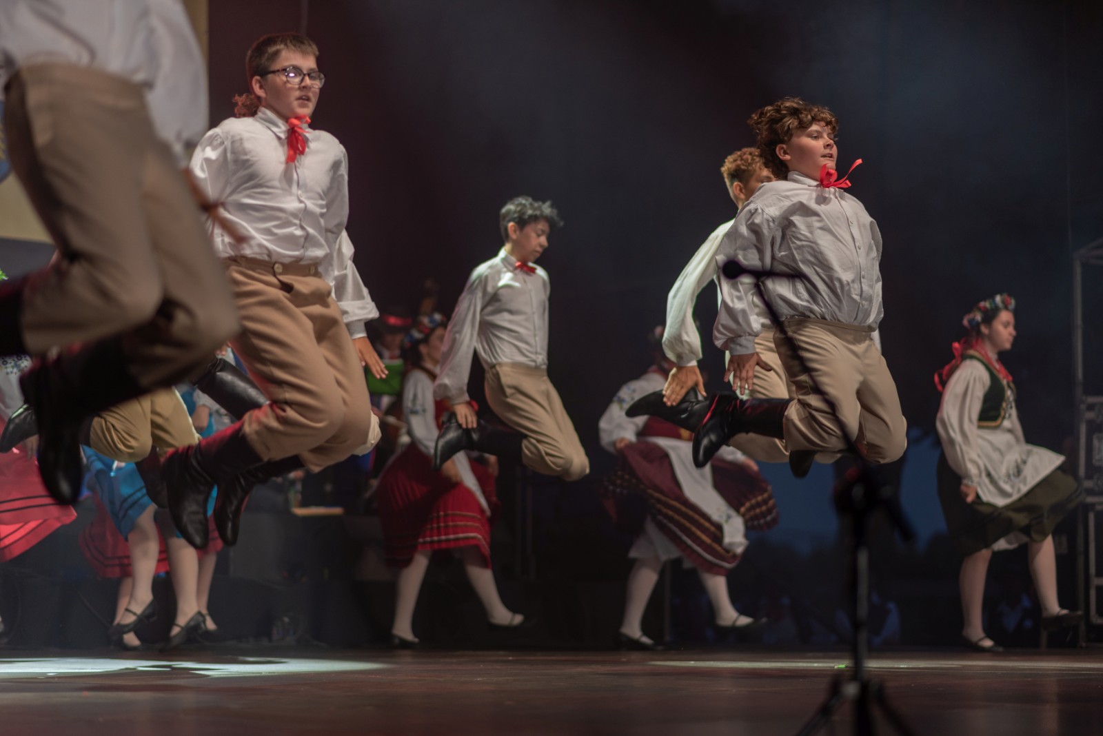 Jednym z wyjątkowych momentów wieczoru było wspólne wykonanie kaszubskiego tańca „Ceporz”, przygotowanego choreograficznie przez Katarzynę Kamrowską. Na scenie spotkali się tancerze z różnych stron świata, tworząc symboliczny obraz jedności i otwartości, jaka towarzyszyła całemu festiwalowi.