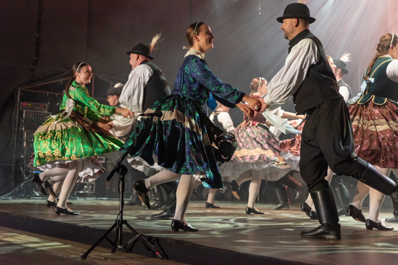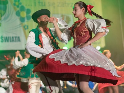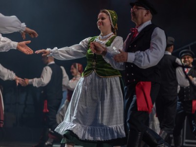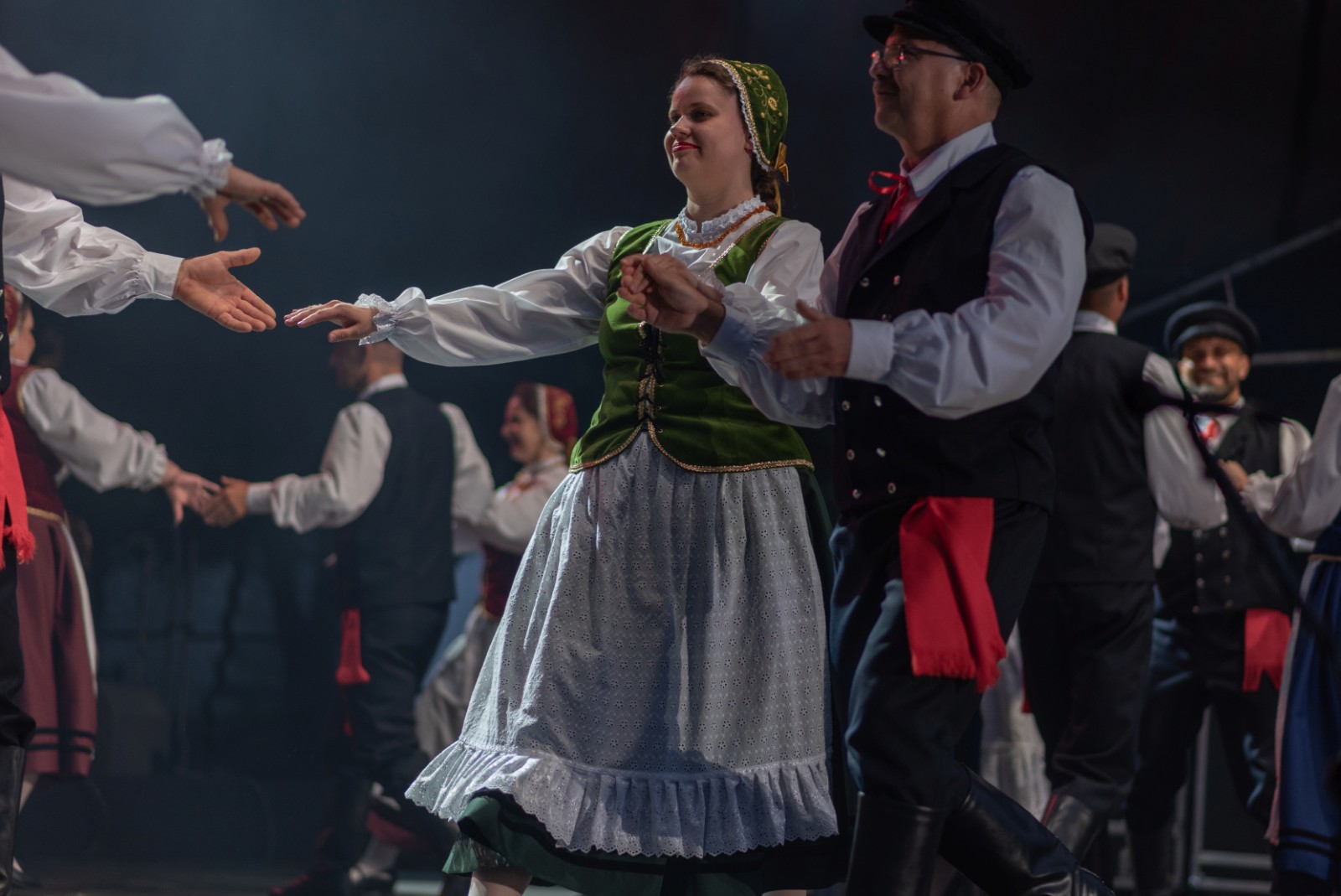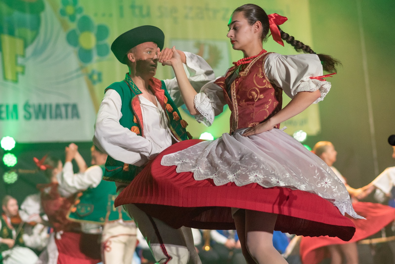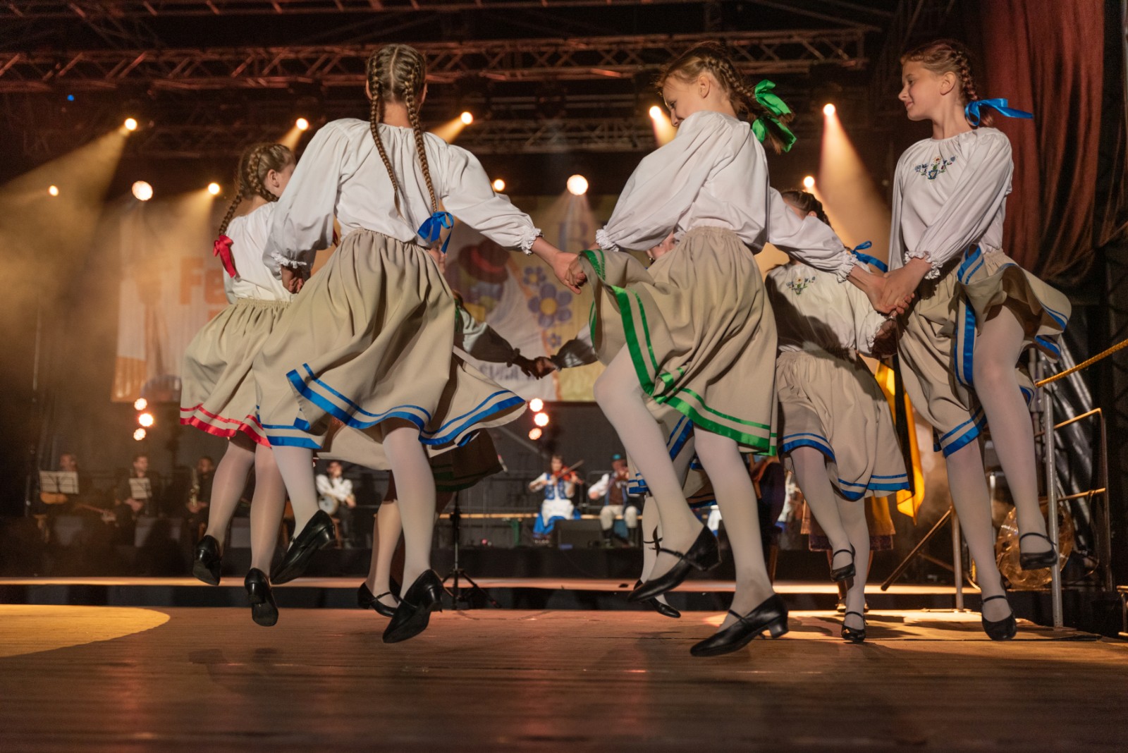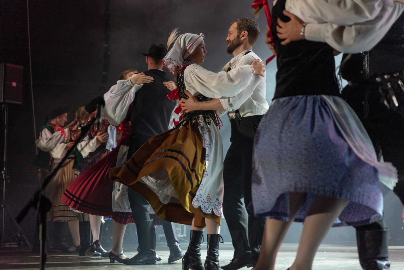 Jednym z wyjątkowych momentów wieczoru było wspólne wykonanie kaszubskiego tańca „Ceporz”, przygotowanego choreograficznie przez Katarzynę Kamrowską. Na scenie spotkali się tancerze z różnych stron świata, tworząc symboliczny obraz jedności i otwartości, jaka towarzyszyła całemu festiwalowi.