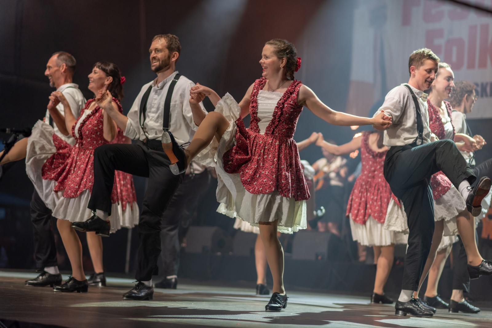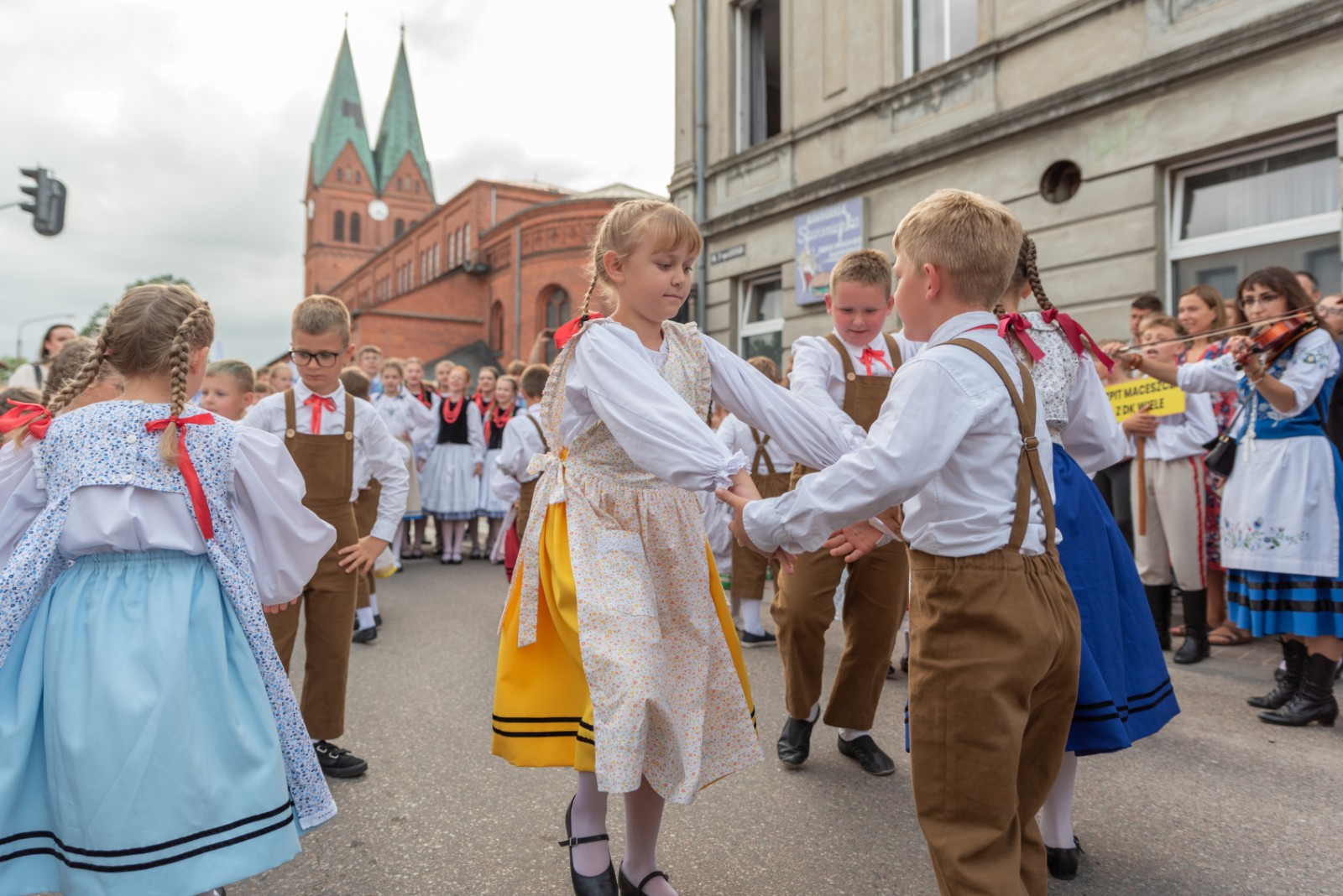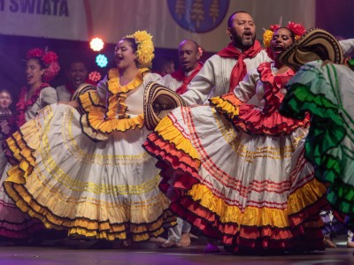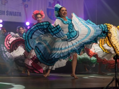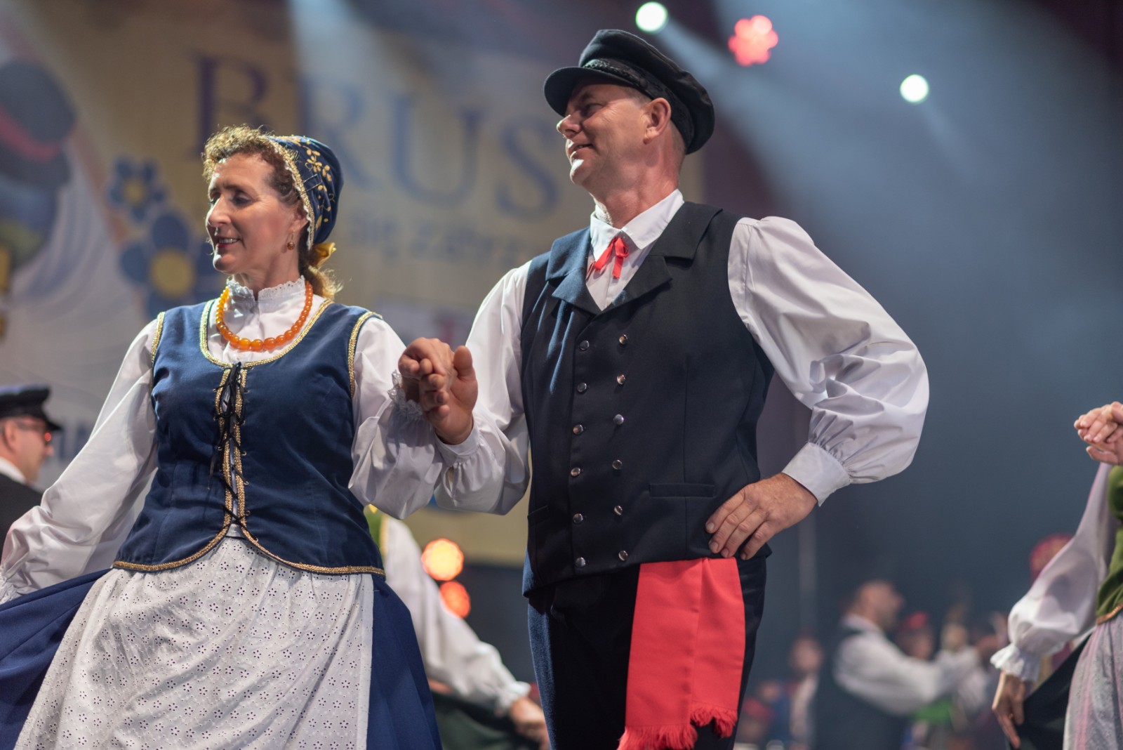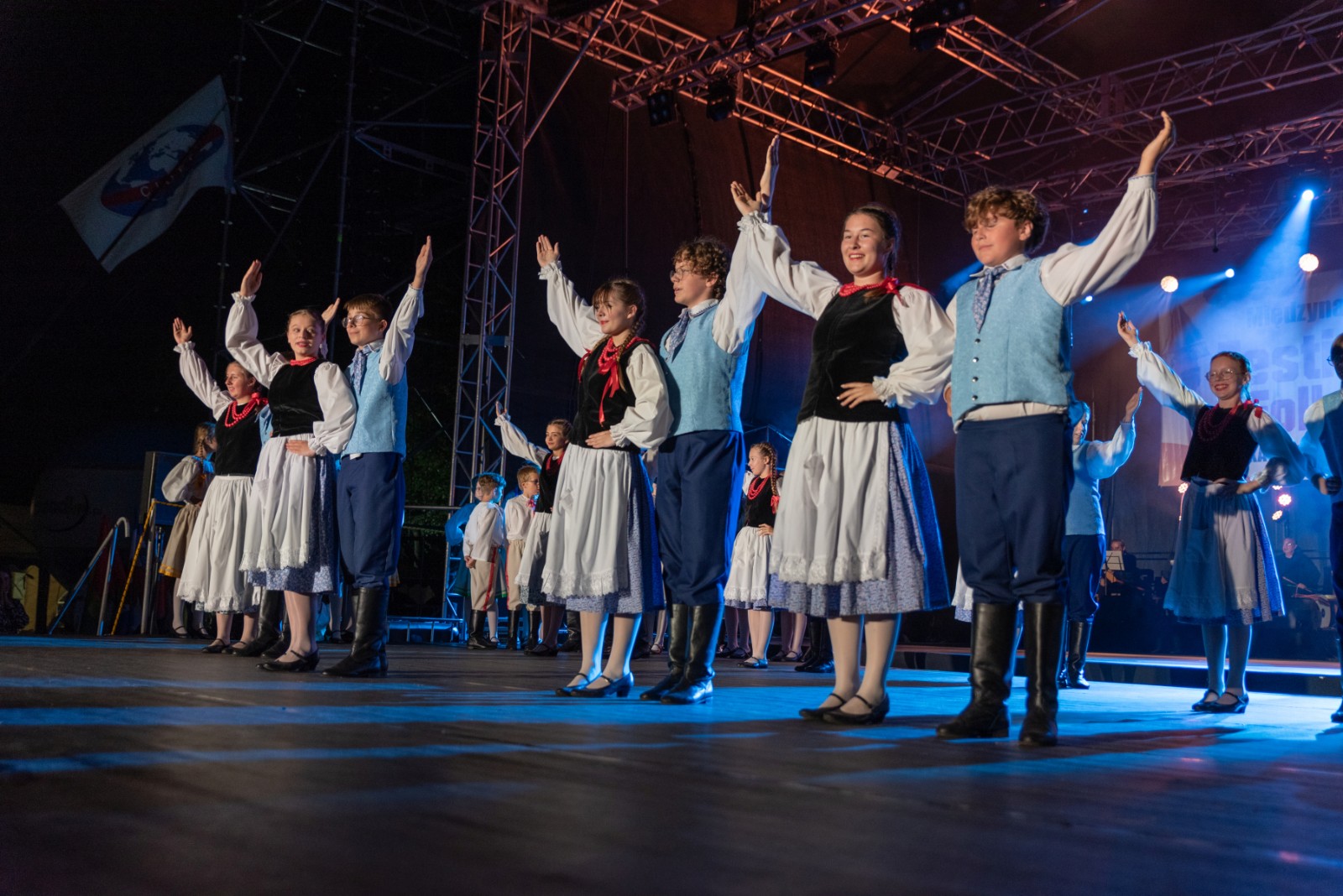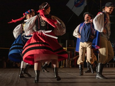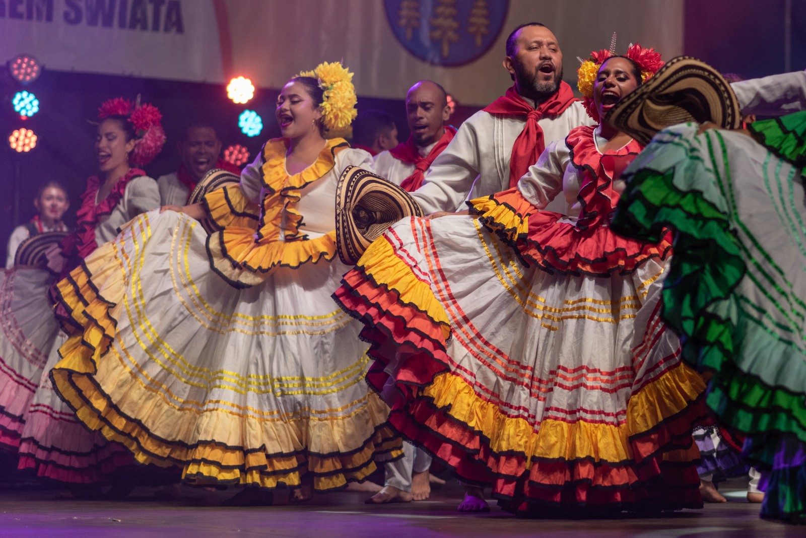 Jednym z wyjątkowych momentów wieczoru było wspólne wykonanie kaszubskiego tańca „Ceporz”, przygotowanego choreograficznie przez Katarzynę Kamrowską. Na scenie spotkali się tancerze z różnych stron świata, tworząc symboliczny obraz jedności i otwartości, jaka towarzyszyła całemu festiwalowi.