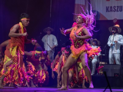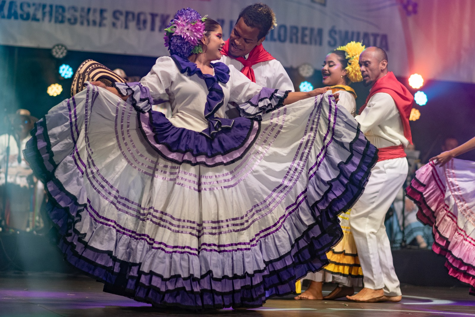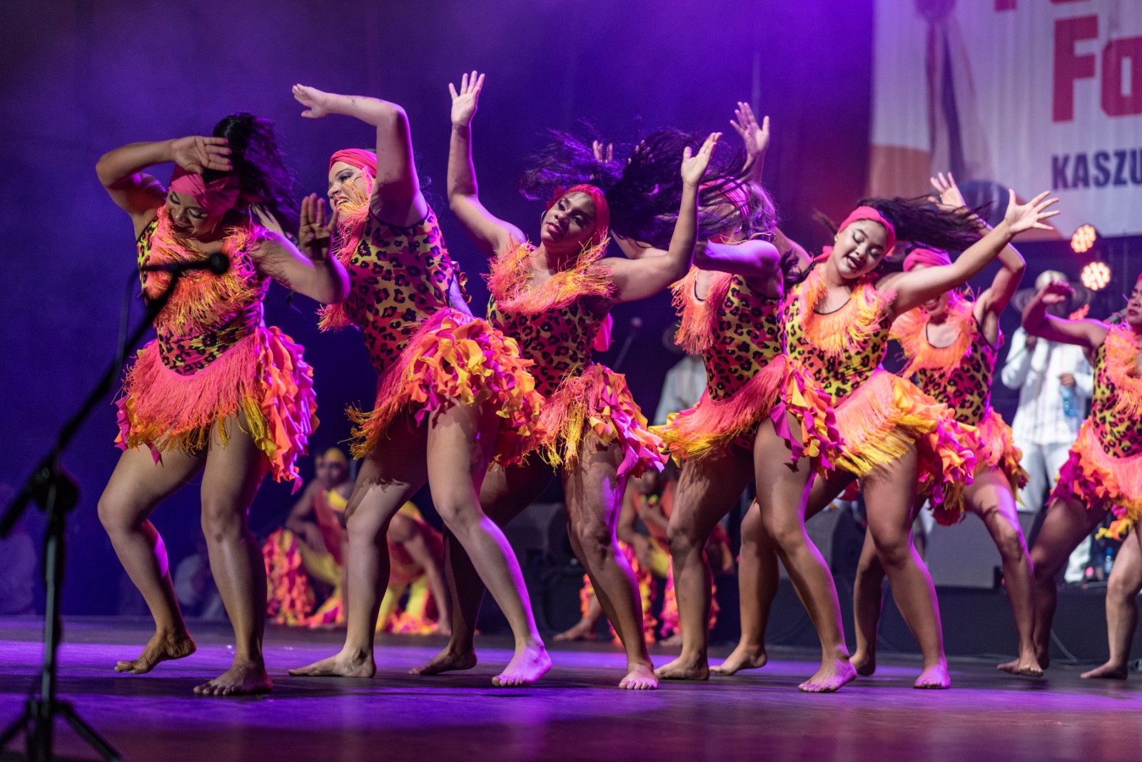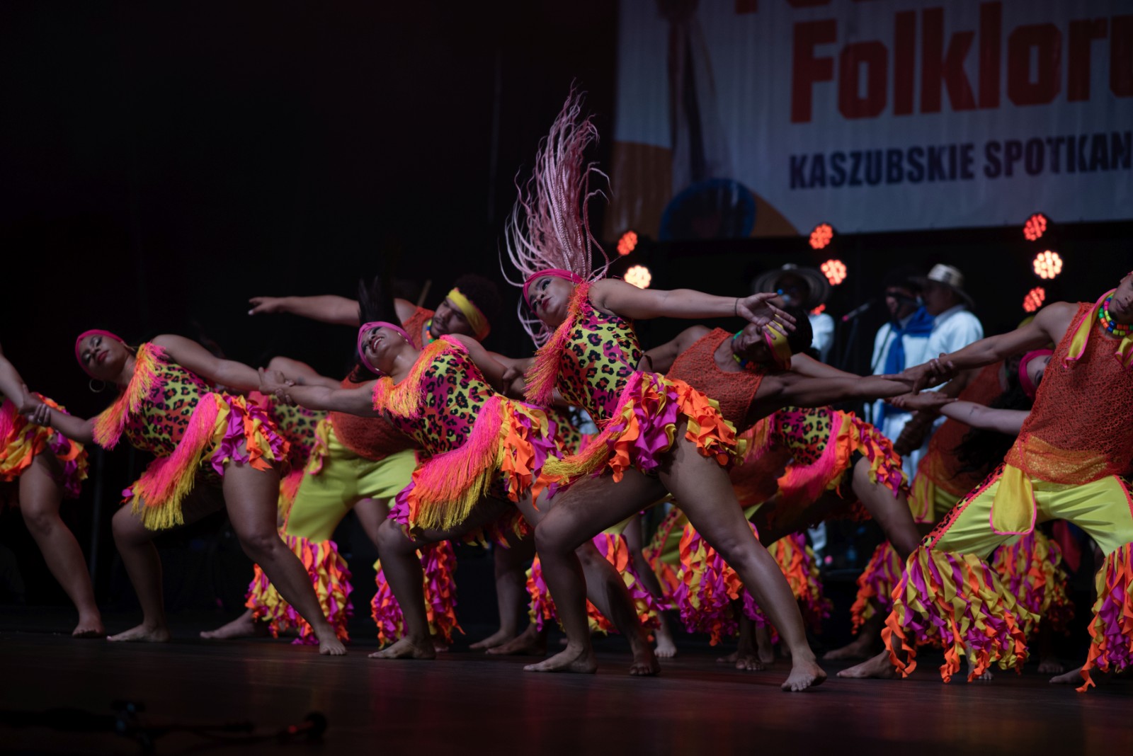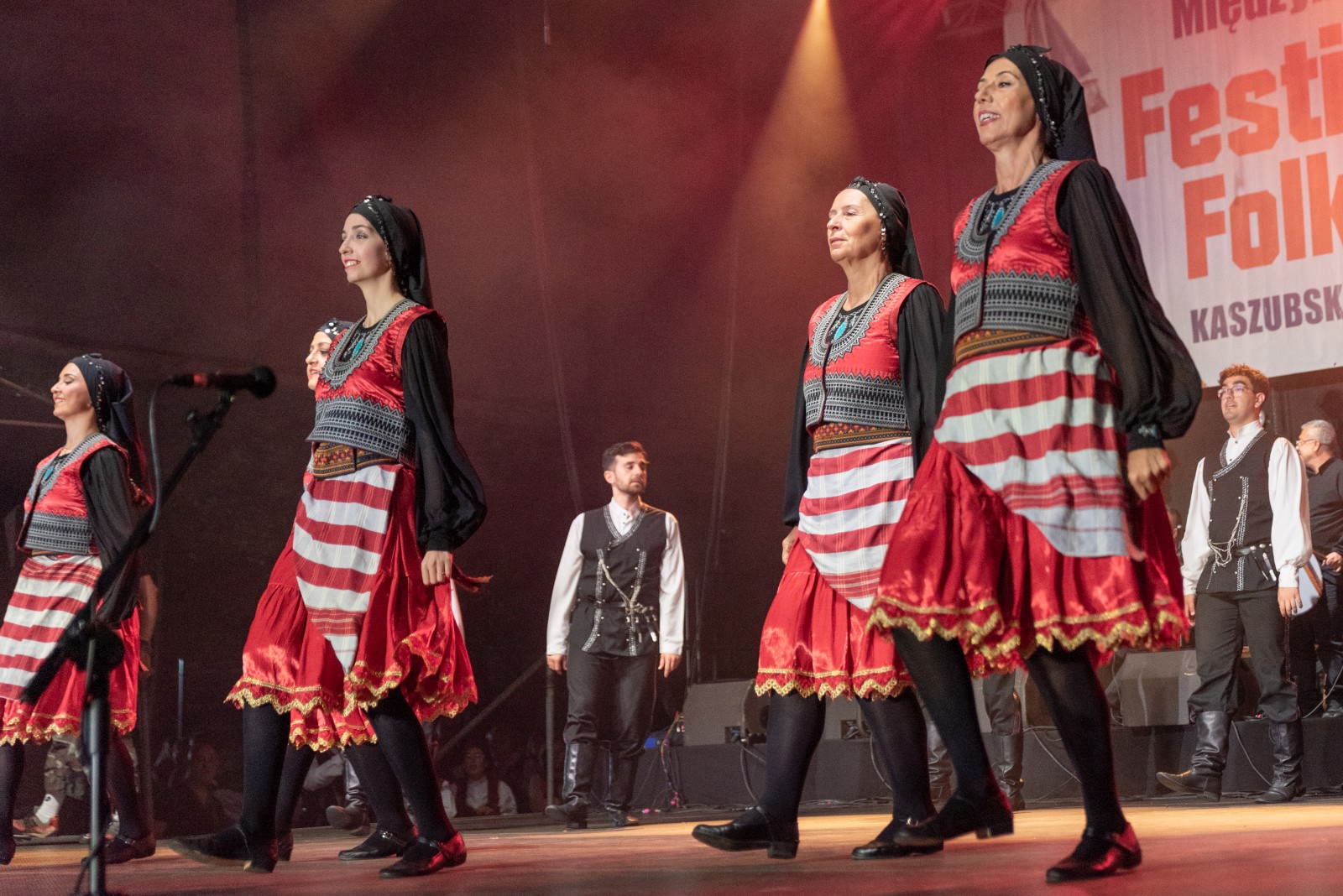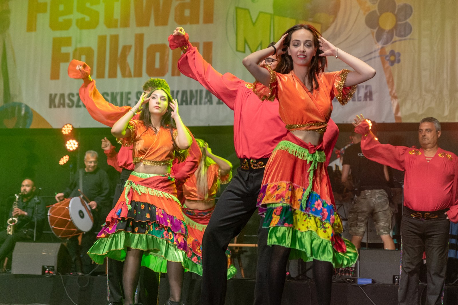Na scenie wystąpiły wszystkie zespoły festiwalowe – zarówno grupy z Kaszub, jak i goście z Turcji, Rumunii, Słowacji, USA, Macedonii Północnej, Gwinei i Kolumbii. Każdy występ był odrębną opowieścią, pełną pasji, barw i muzyki, ukazującą piękno lokalnych tradycji.