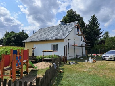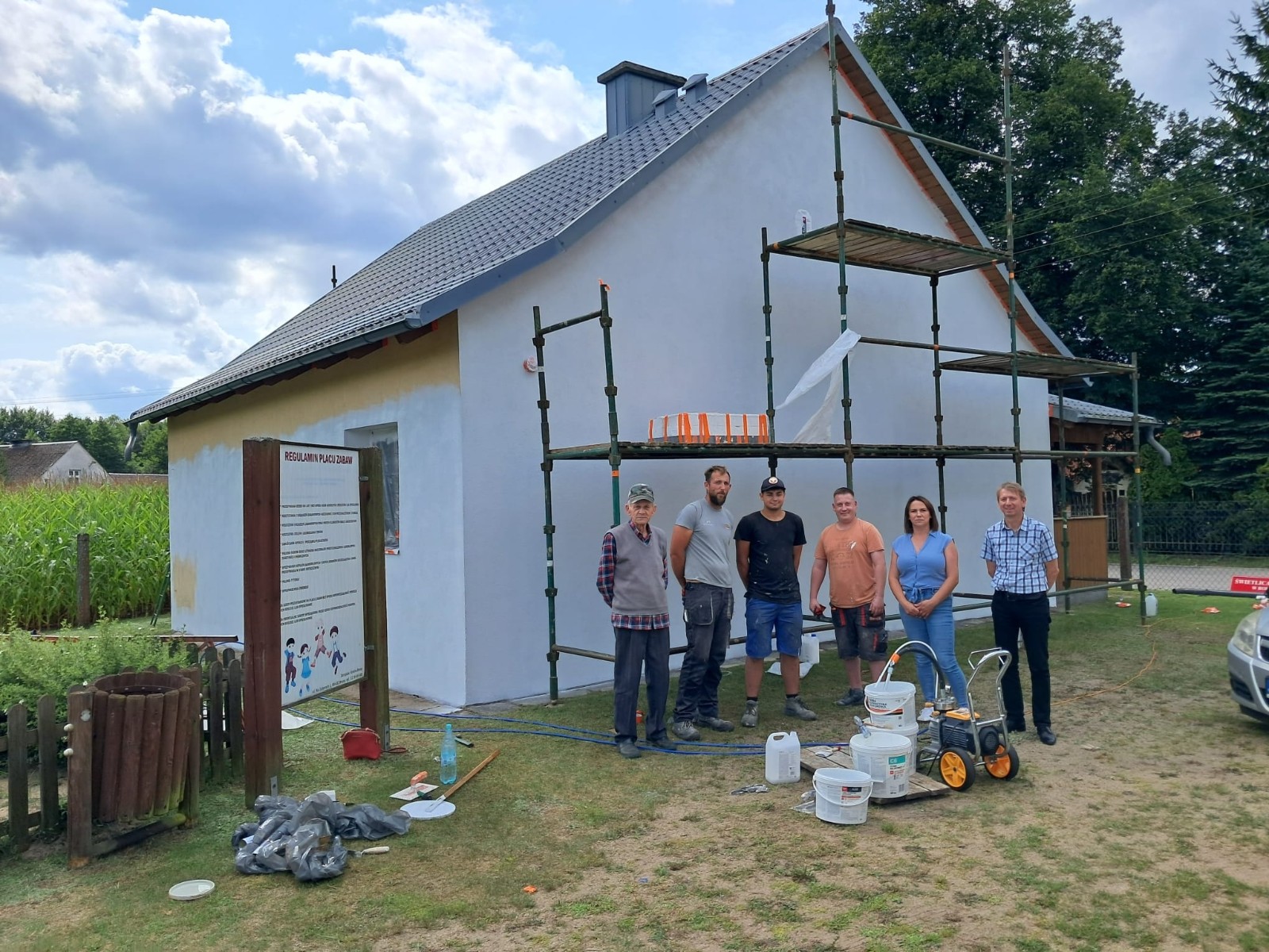 Trwa malowanie elewacji świetlicy wiejskiej w Rolbiku. Poddane odświeżeniu ściany zewnętrzne budynku poprawią estetykę obiektu i wsi. Co więcej, na ścianach zostanie namalowany wzór kaszubski, nawiązujący do kultury naszego regionu. W realizację przedsięwzięcia aktywnie angażują się mieszkańcy. Koszt zadania wyniesie ok. 5,5 tys. zł i zostanie pokryty ze środków Gminy Brusy w ramach funduszu sołeckiego.