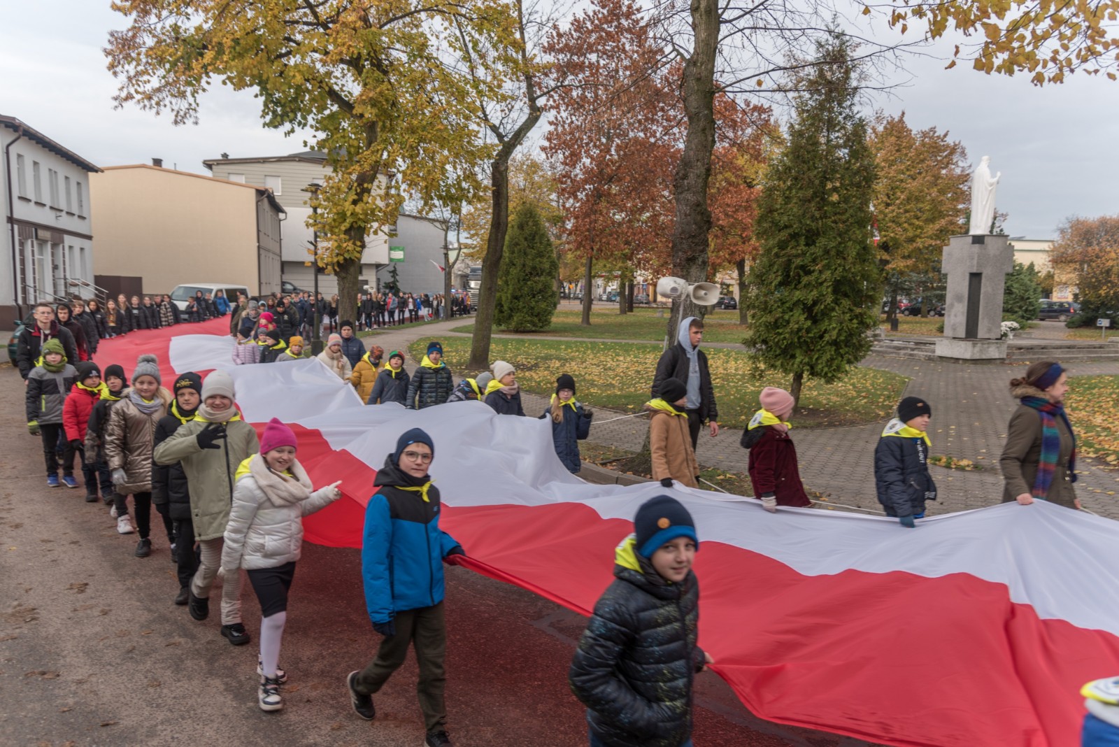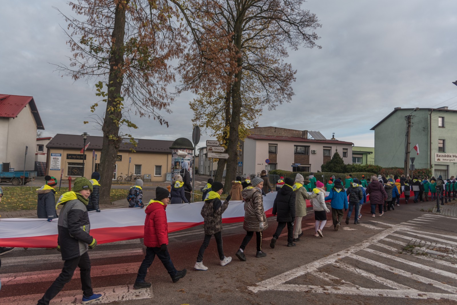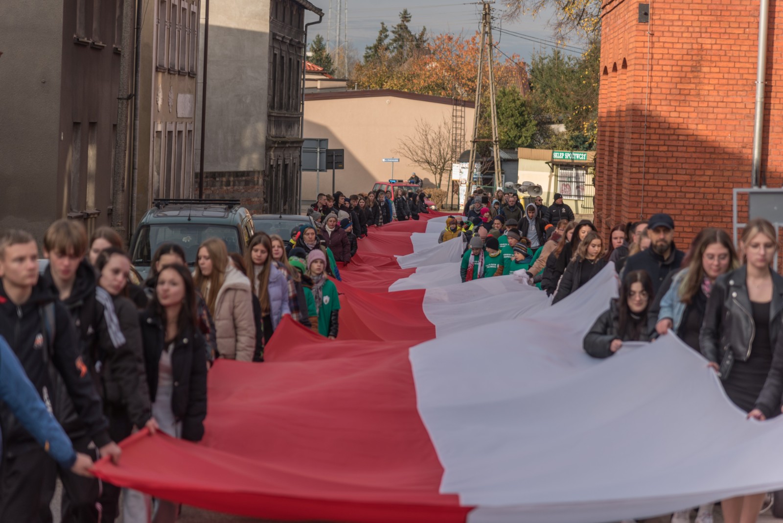 W przeddzień (10.11) obchodów Narodowego Święta Niepodległości w Brusach odbył się przemarsz ze stumetrową flagą Rzeczypospolitej Polskiej.