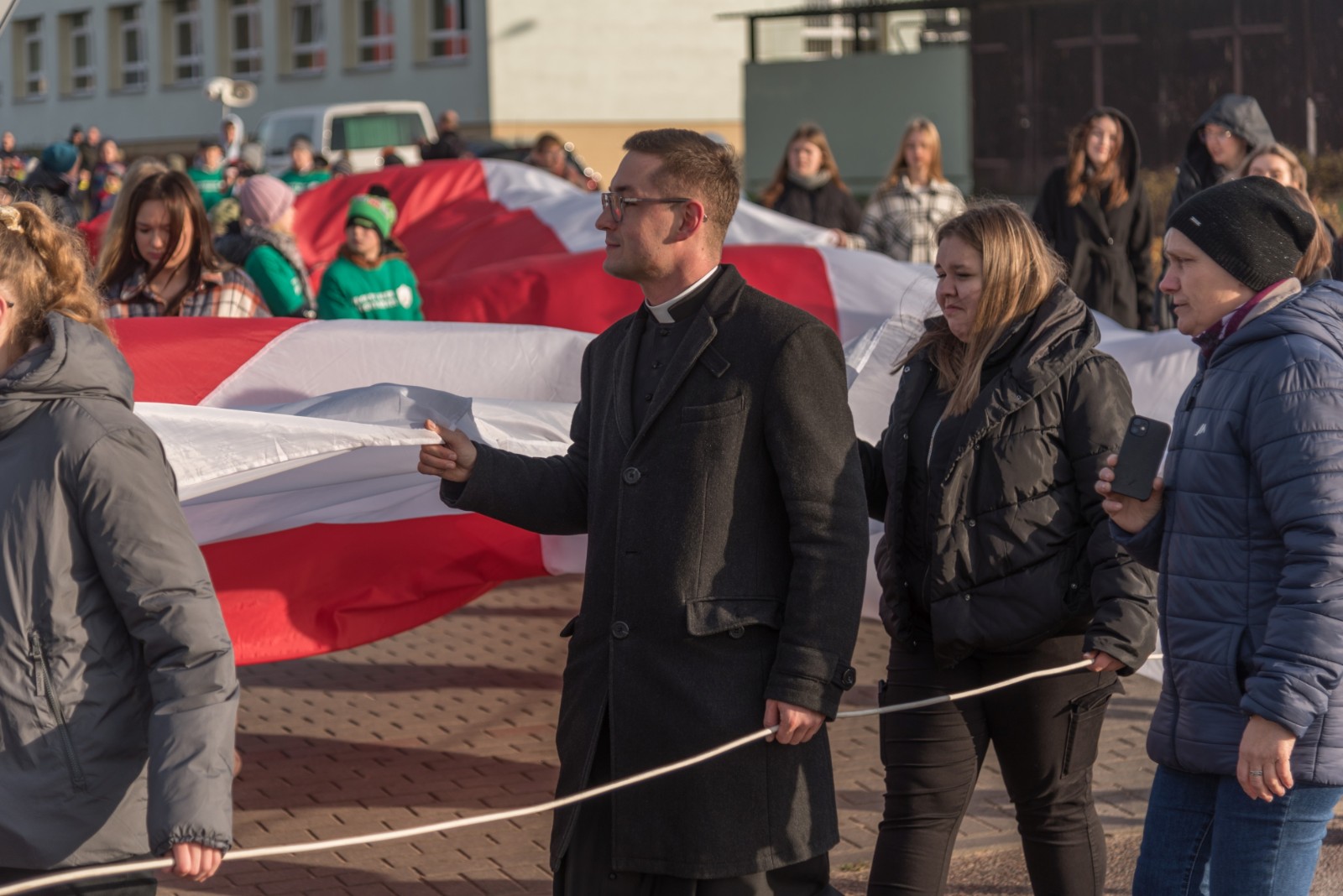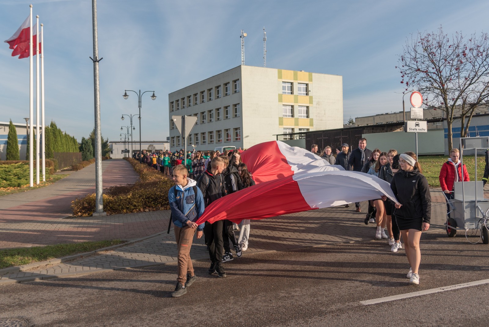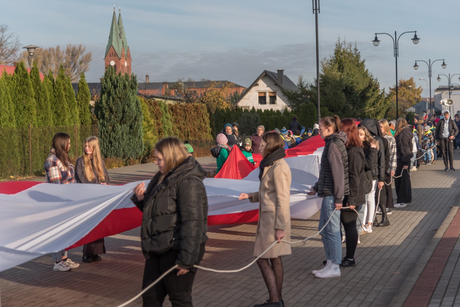 W przeddzień (10.11) obchodów Narodowego Święta Niepodległości w Brusach odbył się przemarsz ze stumetrową flagą Rzeczypospolitej Polskiej.