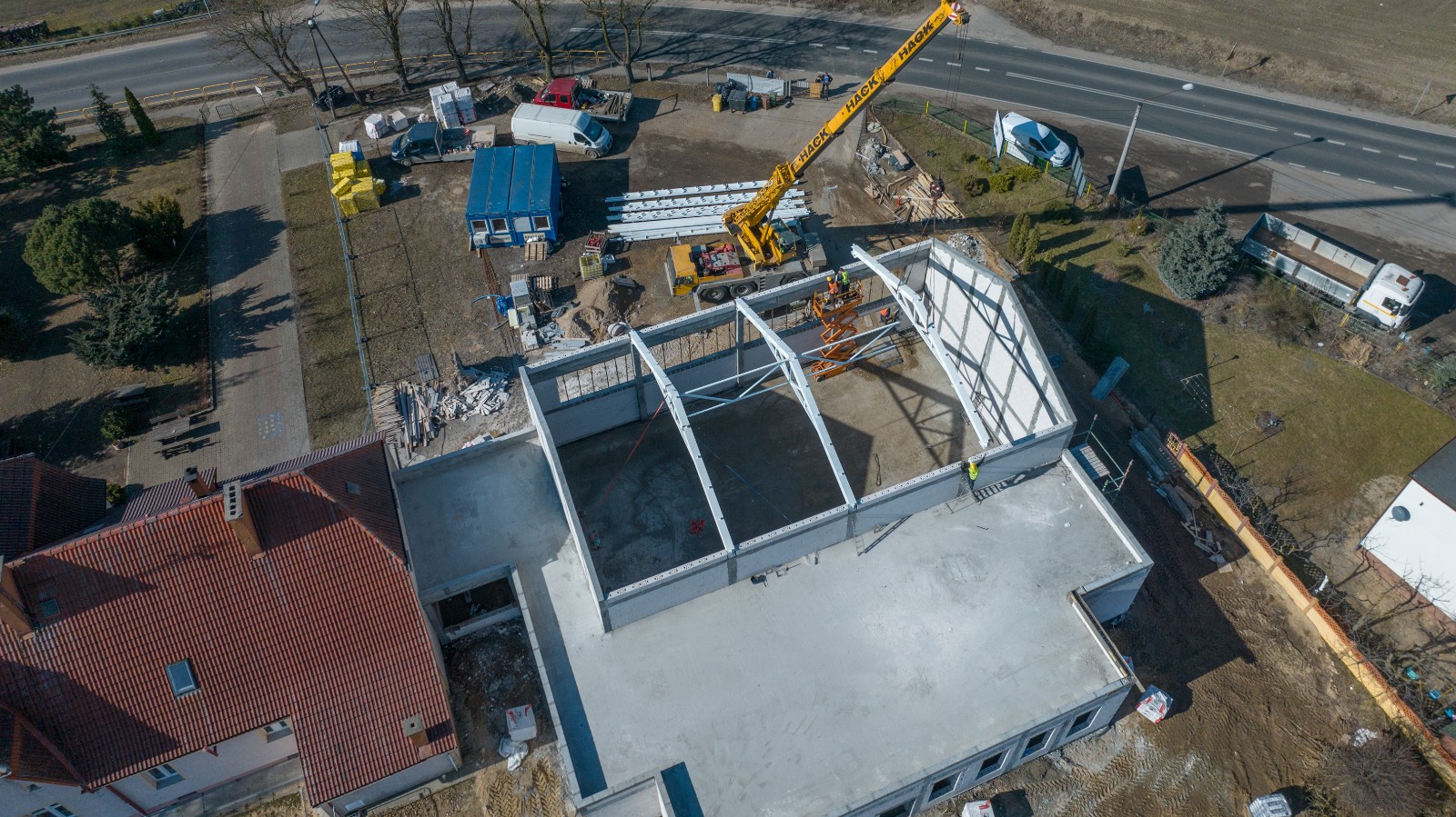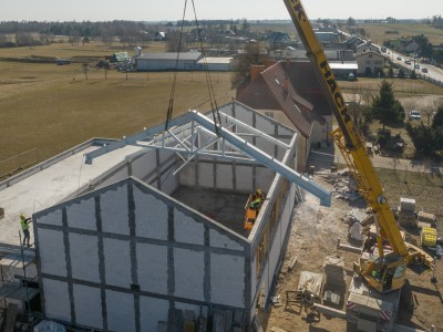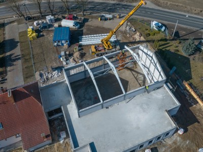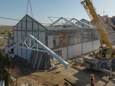 MONTAŻ KONSTRUKCJI DACHOWEJ SALI GIMNASTYCZNEJ W ZALESIU
