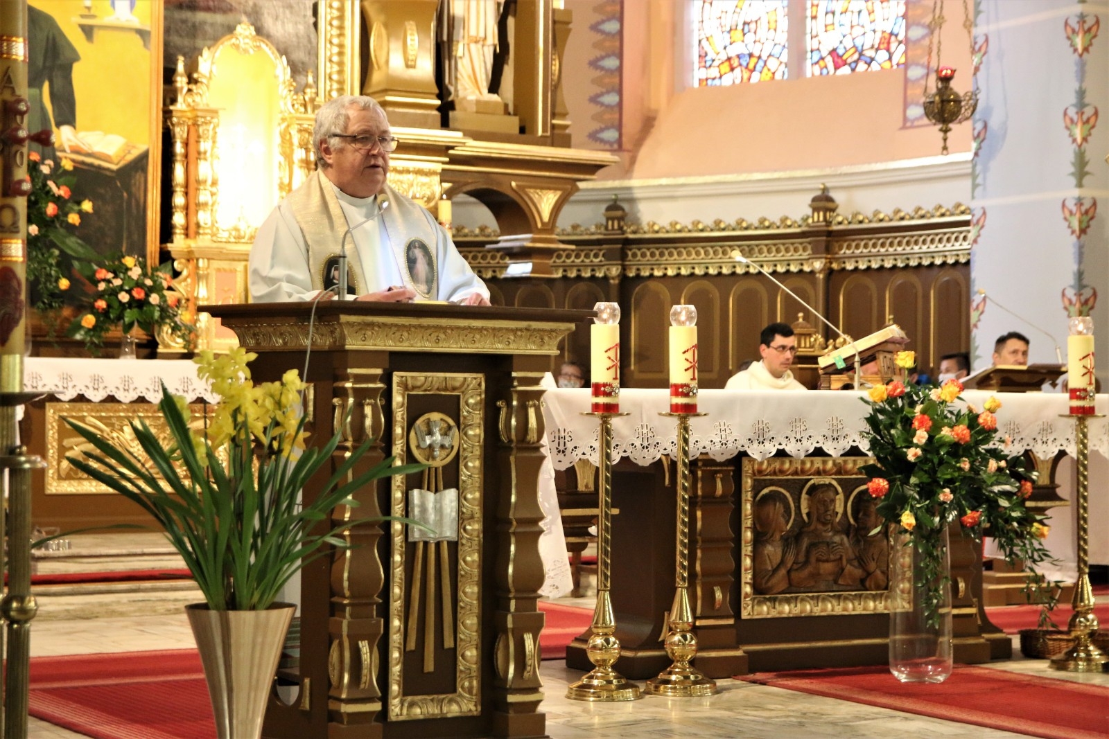 Mszy przewodniczył ks. dr Wiesław Szuca - dyrektor Collegium Marianum w Pelplinie, który wygłosił okolicznościowe kazanie, traktujące o zasługach i życiu Błogosławionego. Współcelebransami byli: ks. proboszcz Jan Flaczyński, ks. Tadeusz Rybiński, ks. Rafał Grot i ks. Andrzej Węsierski. We mszy świętej uczestniczyli przedstawiciele lokalnych władz samorządowych, na czele z burmistrzem Brus Witoldem Ossowskim oraz przewodniczącym Rady Miejskiej Zbigniewem Łąckim, poczty sztandarowe oraz mieszkańcy. O uroczystą oprawę mszy św. zadbał również parafialny Chór Lutnia.