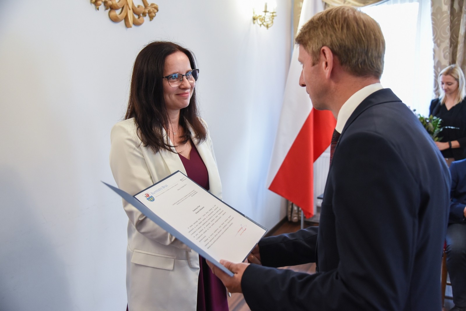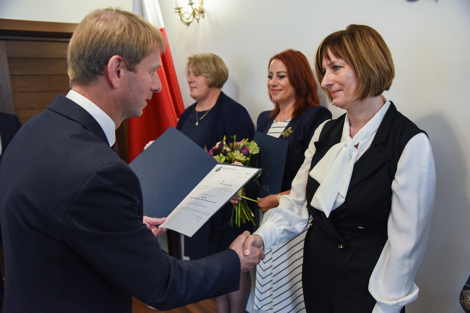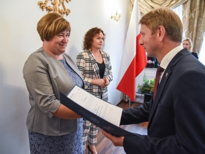 Burmistrz Brus również pogratulował nauczycielom obchodzonych jubileuszy pracy: 25 lat pracy pani Annie Majkowskiej – dyrektor Szkoły Podstawowej w Kosobudach, 30 lat pracy pani Krystynie Tecy – dyrektor Szkoły Podstawowej w Czyczkowach oraz 35 lat pracy pani Wioletcie Ryduchowskiej – dyrektor Szkoły Podstawowej w Lubni.