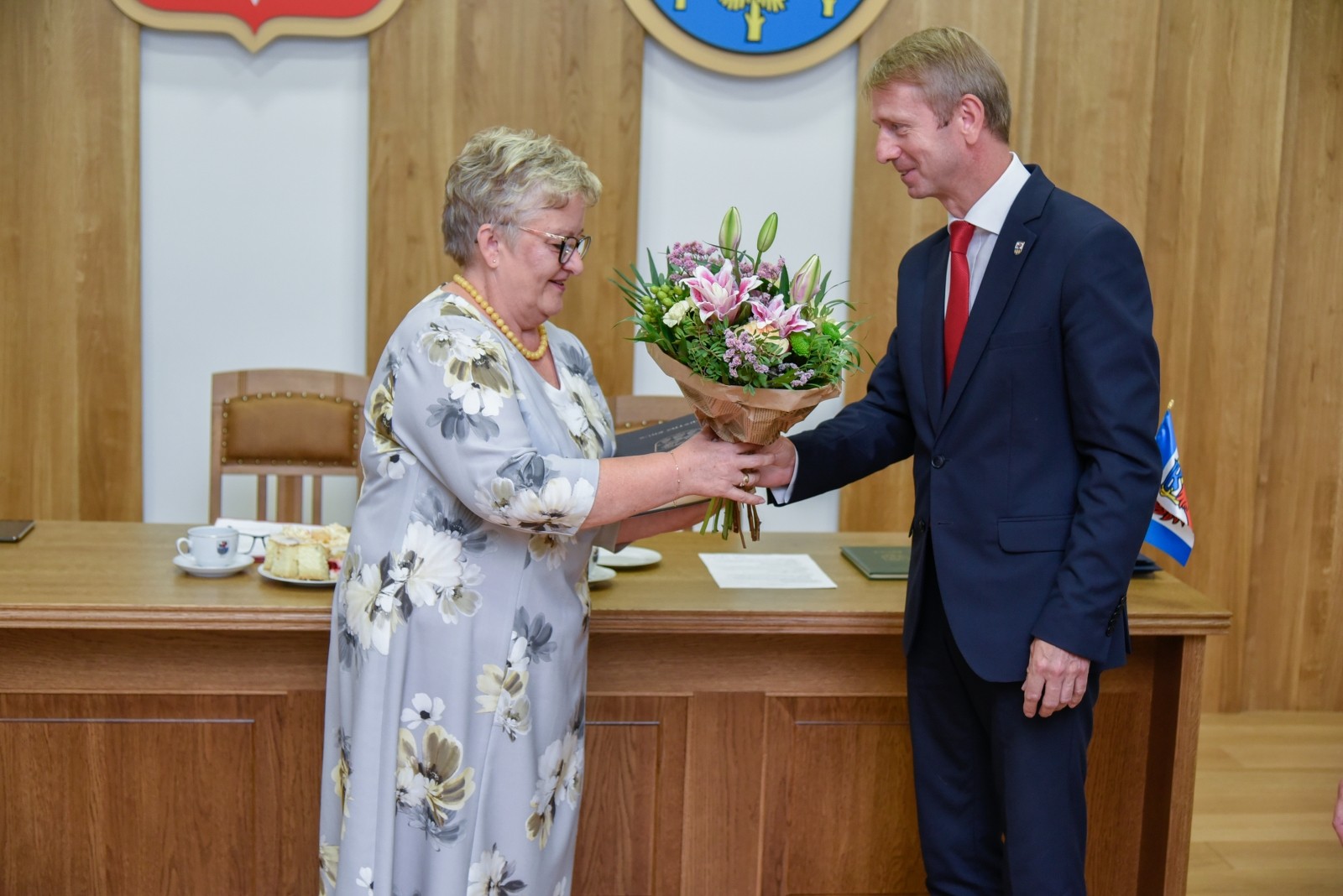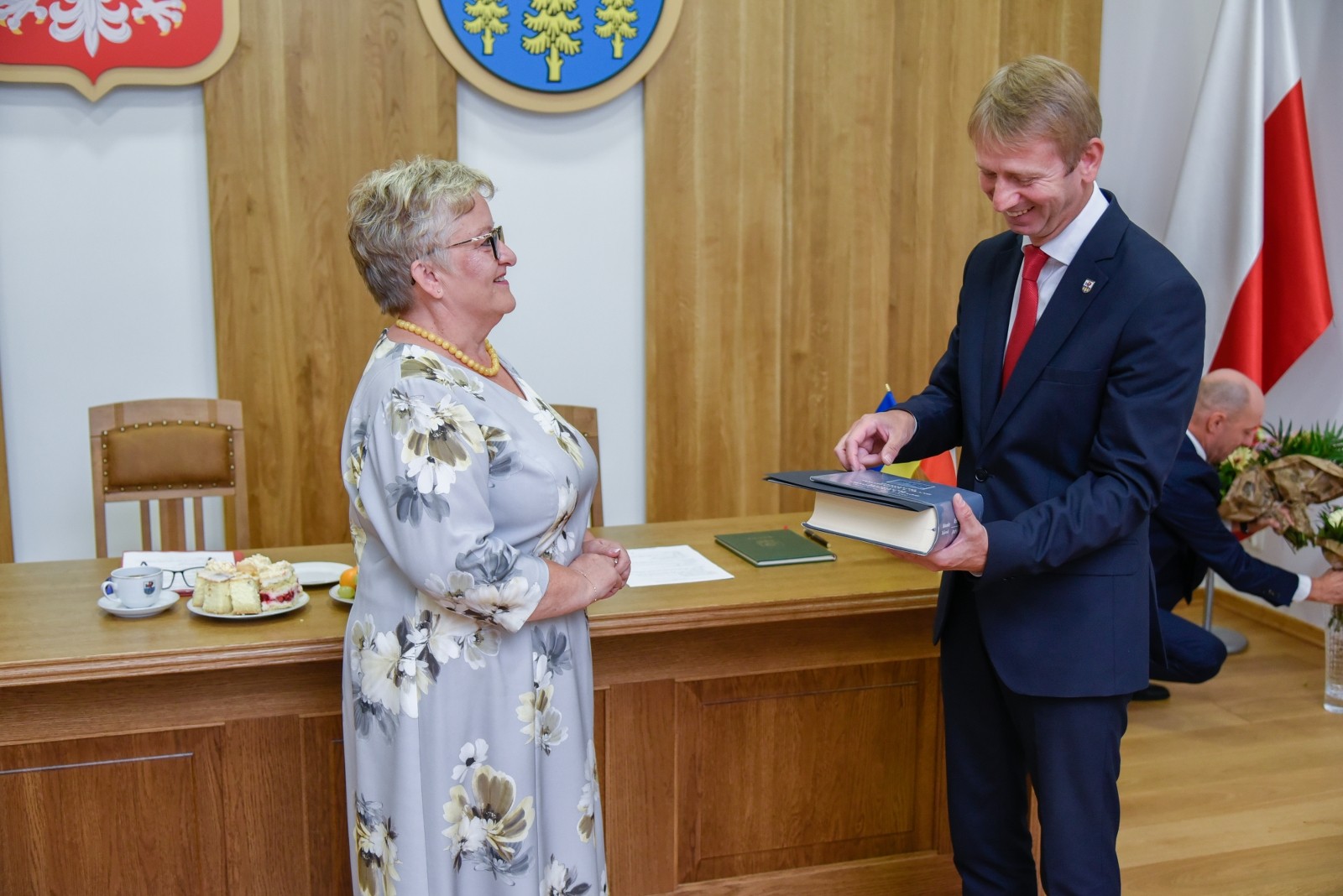 W związku z przejściem na emeryturę podziękowania z rąk burmistrza i dyrektora GZO odebrała pani Mirosława Łącka, która przez 40 lat była nauczycielem Szkoły Podstawowej im. kard. Stefana Wyszyńskiego w Leśnie oraz wieloletnim kierownikiem Szkoły Filialnej w Przymuszewie (ponad 23 lata).
