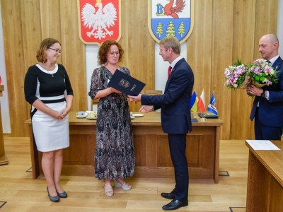 Z kolei nagrodę jubileuszową za 35 lat pracy na stanowisku nauczyciela otrzymała pani Beata Rekowska, dyrektor Szkoły Podstawowej nr 1 im. Jana Pawła II w Brusach.